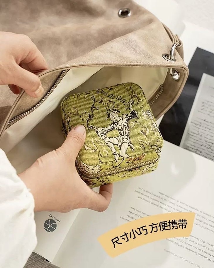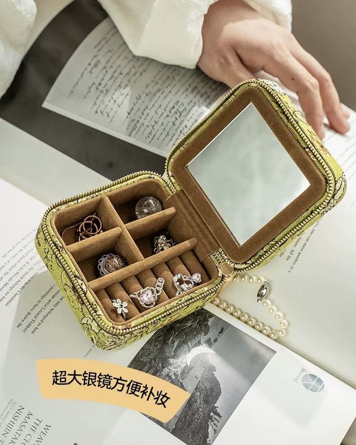新增复古提花便携首饰盒~富婆标配💎章小蕙、胡彦斌私藏❗【出口欧美定制珠宝首饰收纳包】差旅神器!大容量+防刮分层!✅采用高级雪尼尔包面,精致小巧容量大!🔻项链·手串·耳机·戒指·耳钉都可!多色可选!