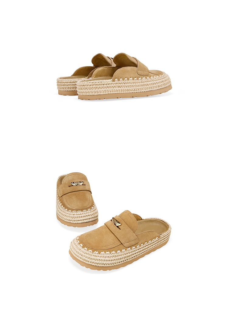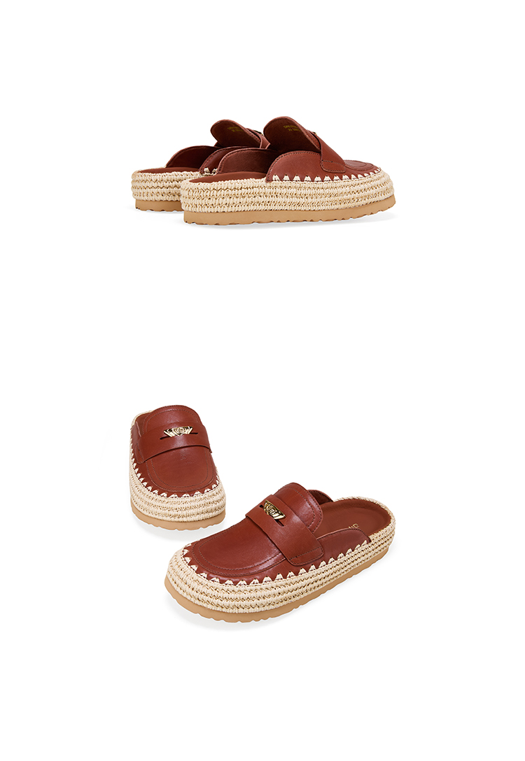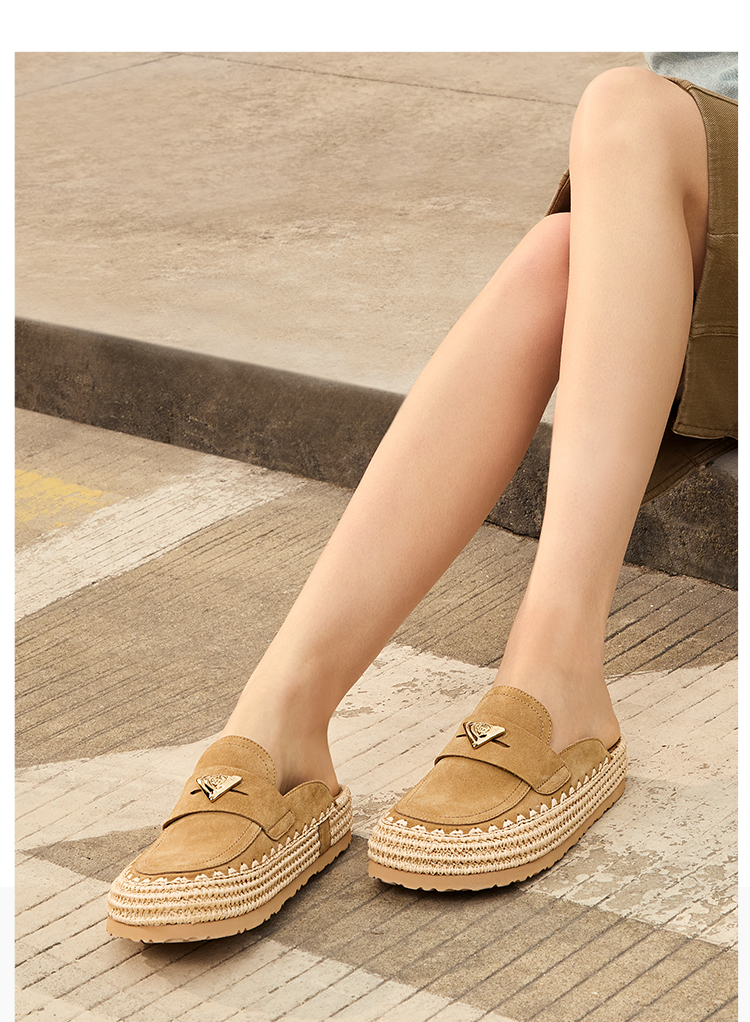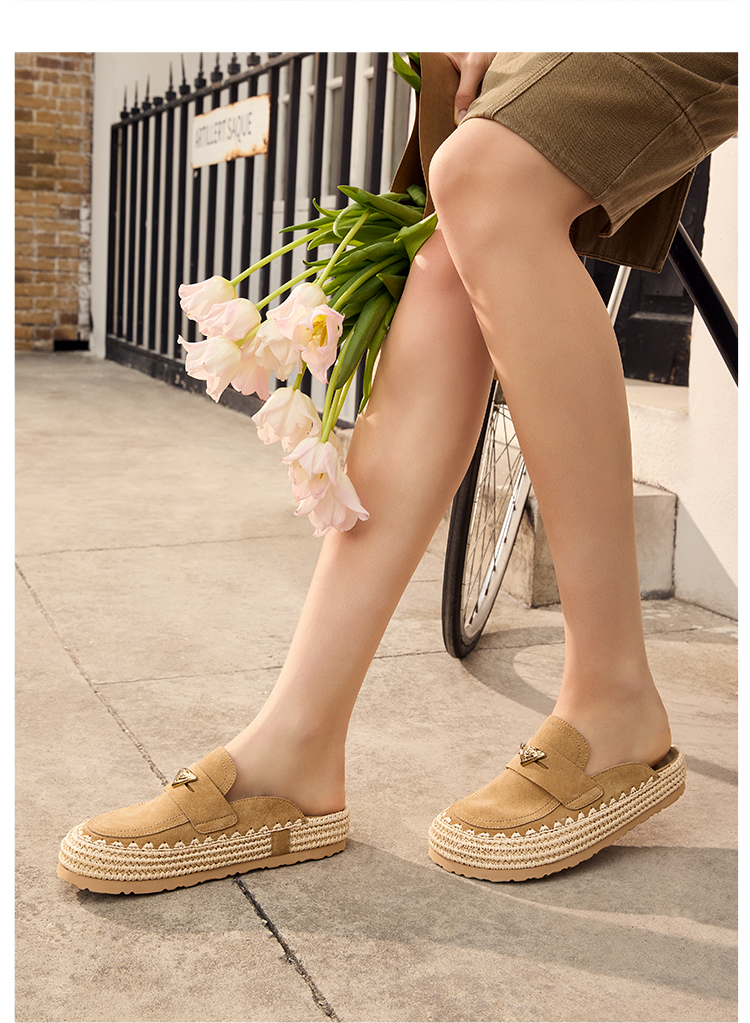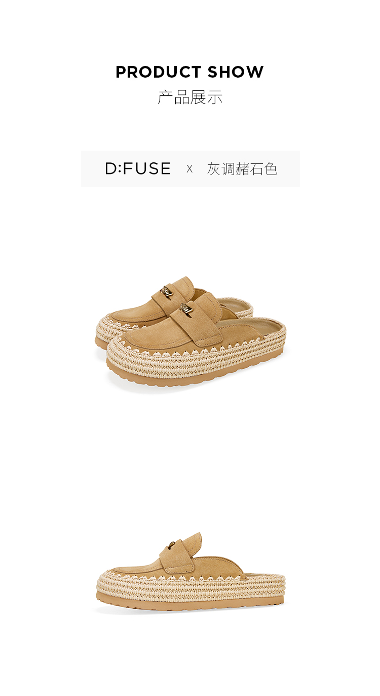 Dfuse迪芙斯2026春季新款包头编制手工感麻线鞋底穆勒拖鞋半包头拖鞋女鞋DFE1110074
