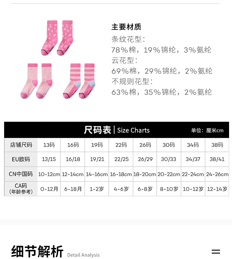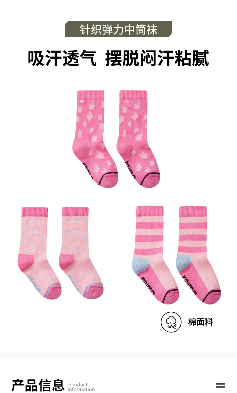 reima儿童男女童中筒袜子弹力透气条纹拼色针织新款长袜子