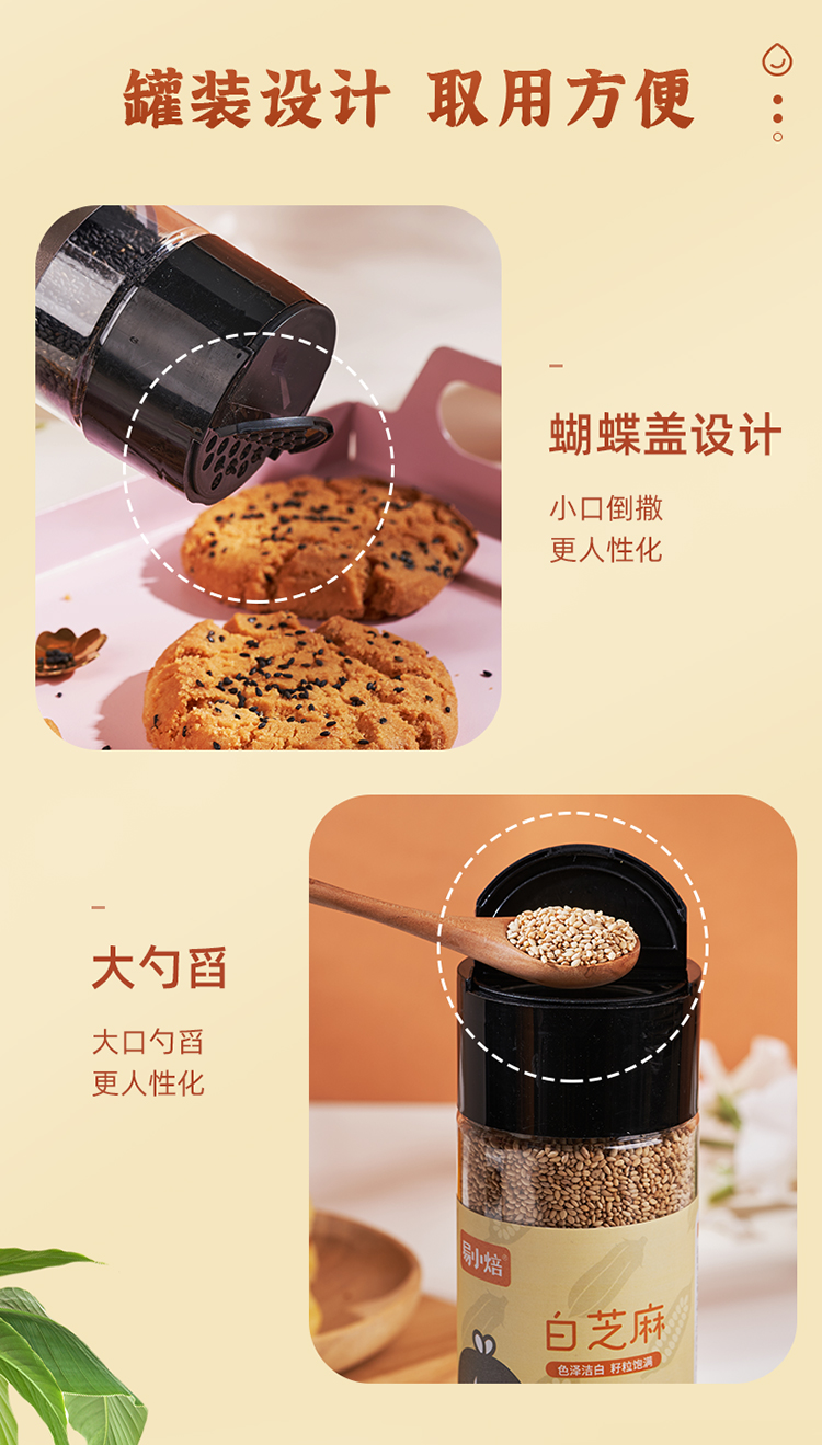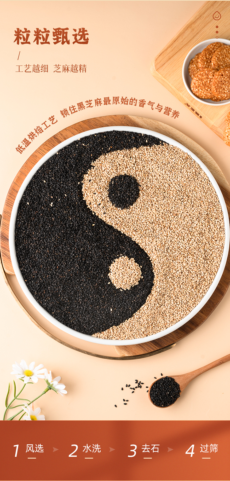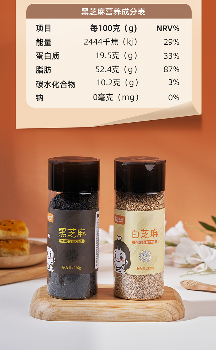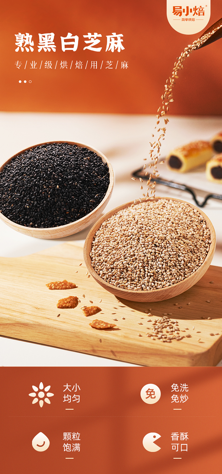易小焙黑芝麻 熟芝麻烘焙即食炒熟芝麻牛轧糖蛋糕西点装饰220g