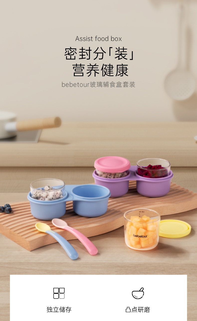 【积分兑换】BEBETOUR 宝宝玻璃辅食盒