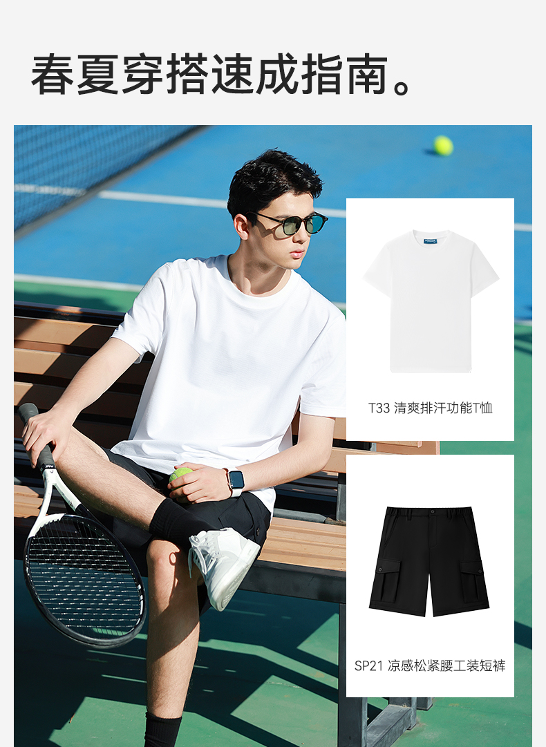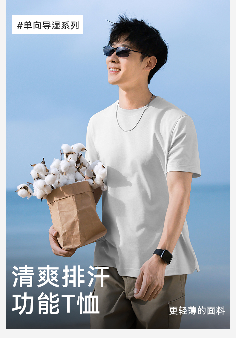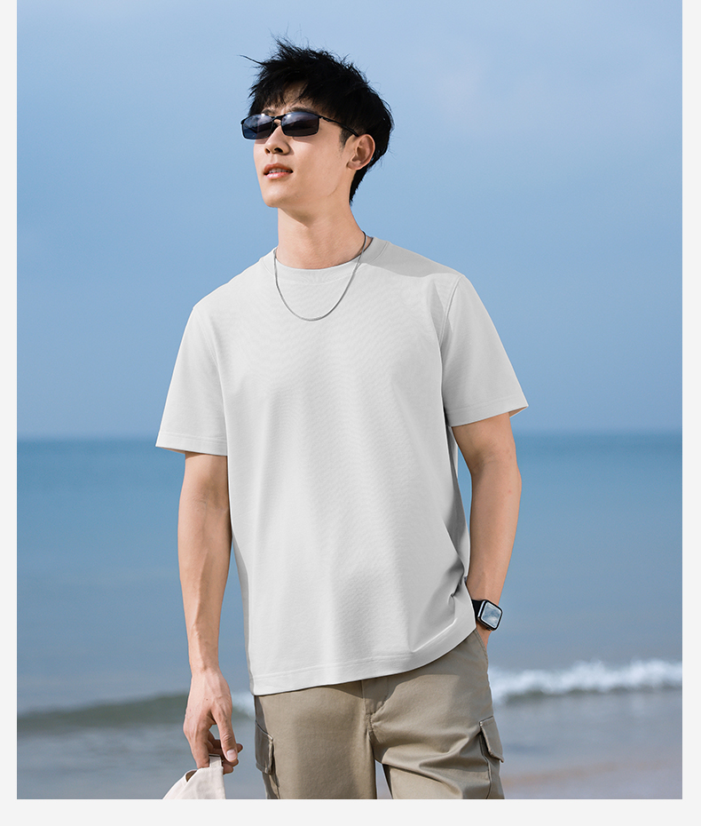 十如仕单向导湿夏季短袖t男士圆领透气舒适户外休闲简约男T恤-T33-01