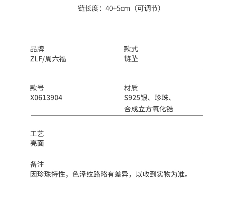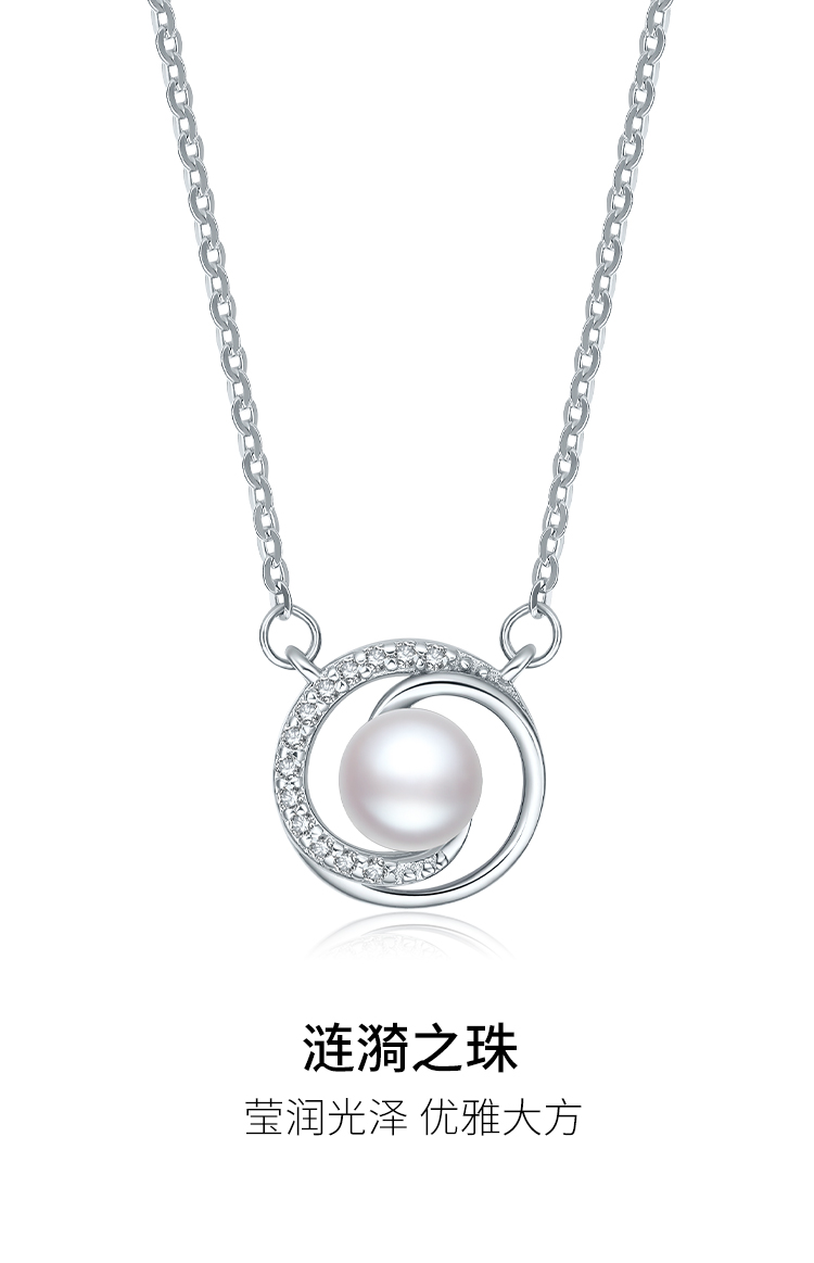 周六福S925银项链女淡水珍珠链坠优雅甜美送女友生日礼物