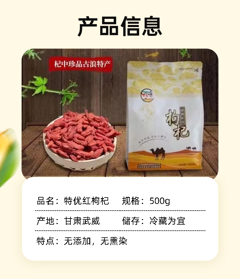 【甘肃特产】大靖农家大粒特优级自产自然晾晒枸杞500g【古浪大靖红】