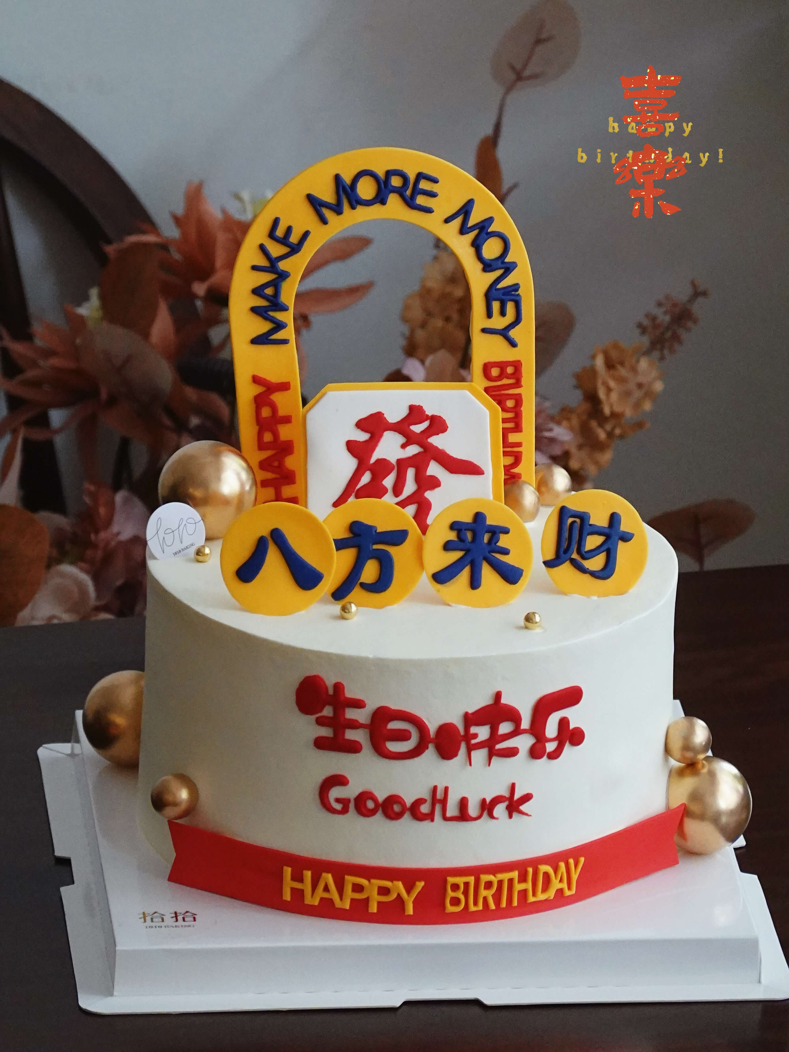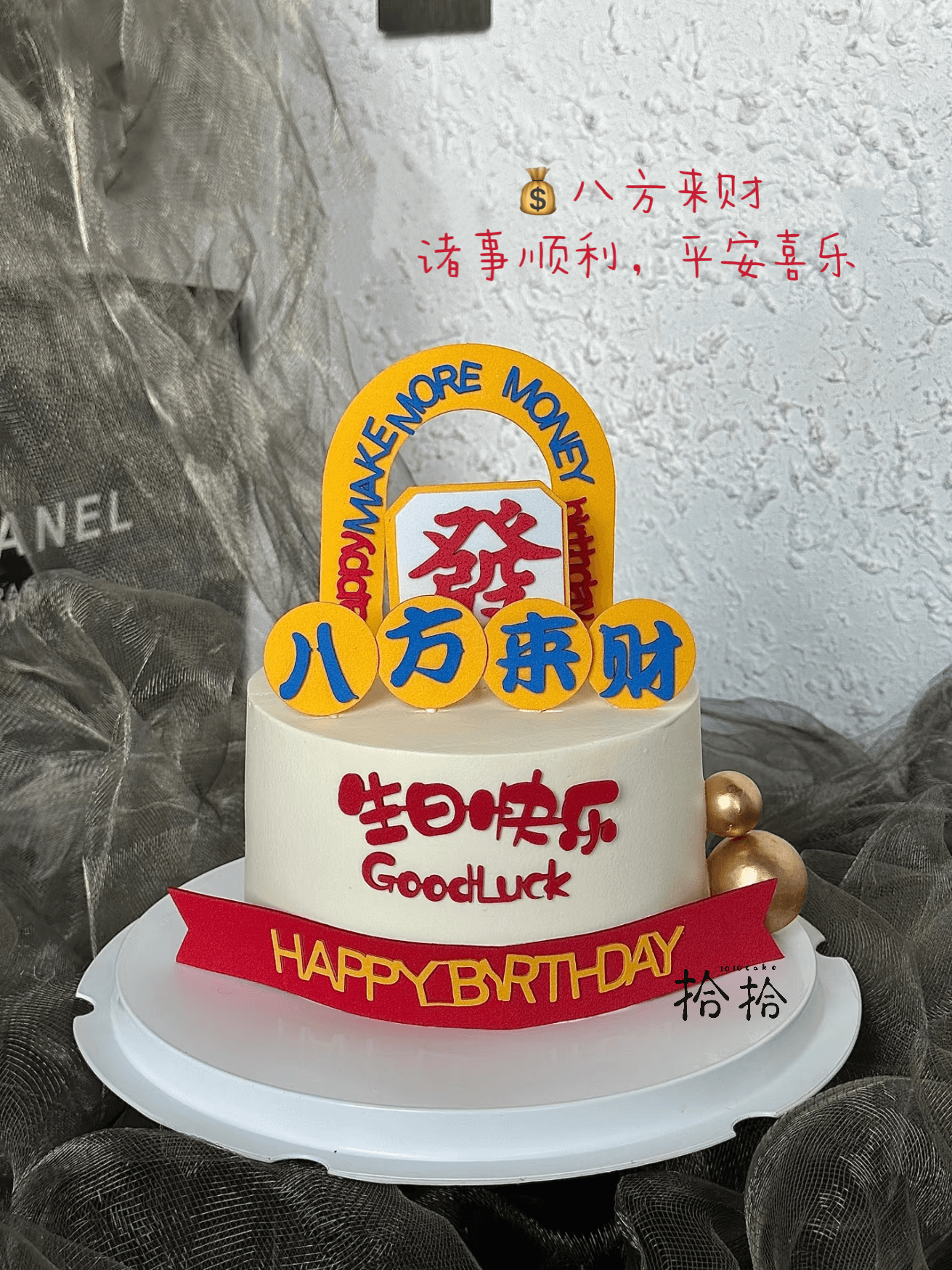 「八方来财·发财门」暴富祝寿·翻糖巧克力·100%动物奶油(主图8寸加高·提前24小时预订)