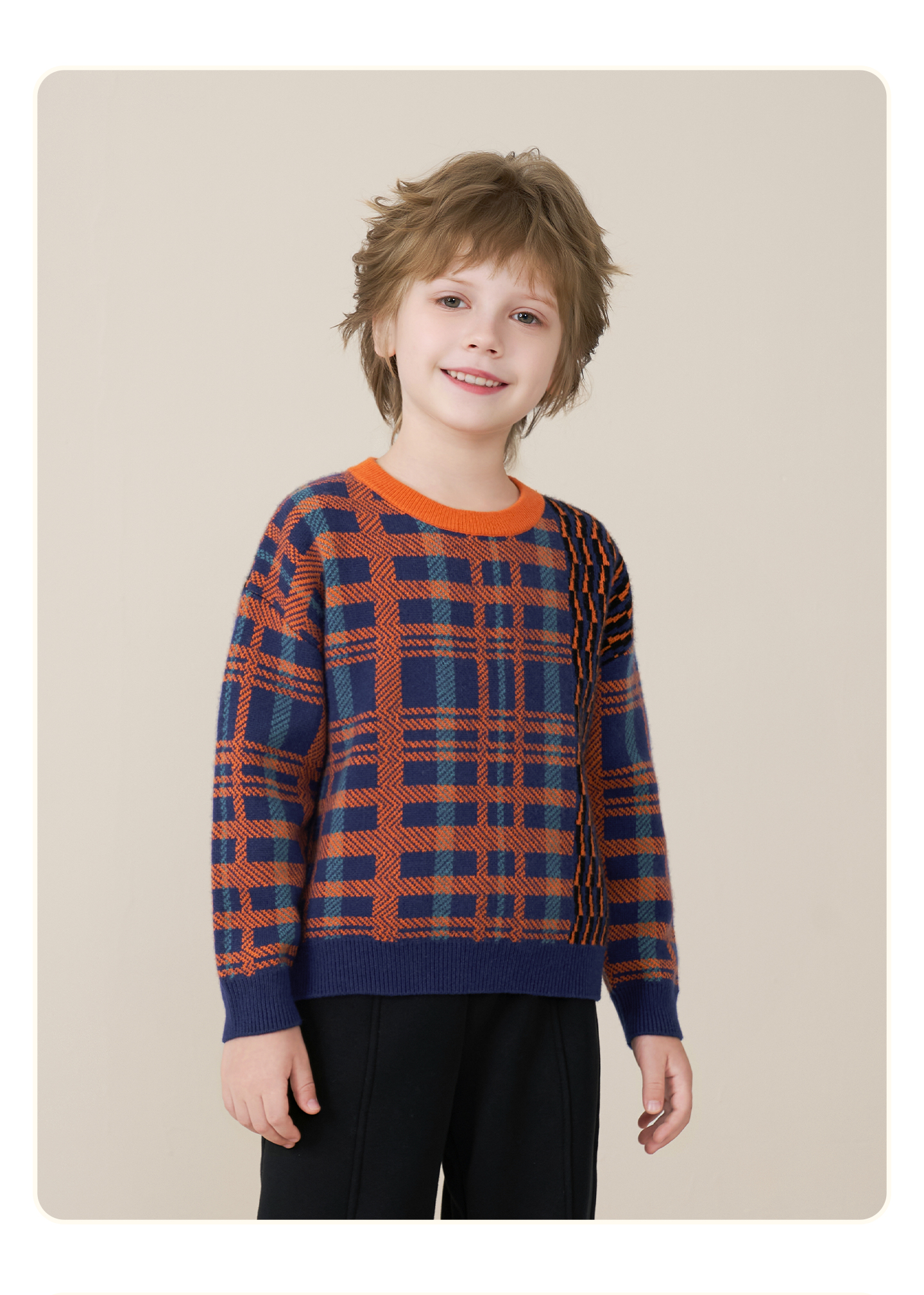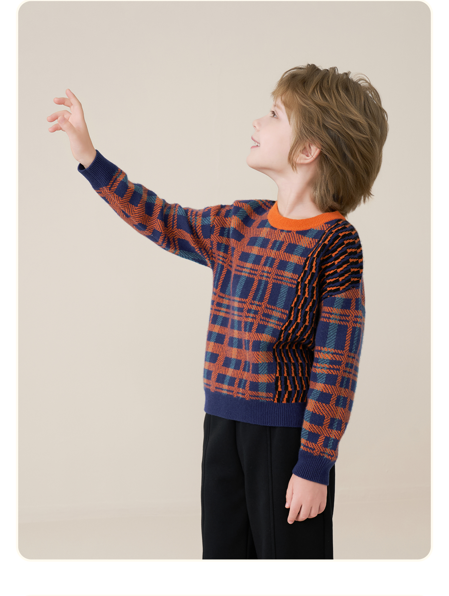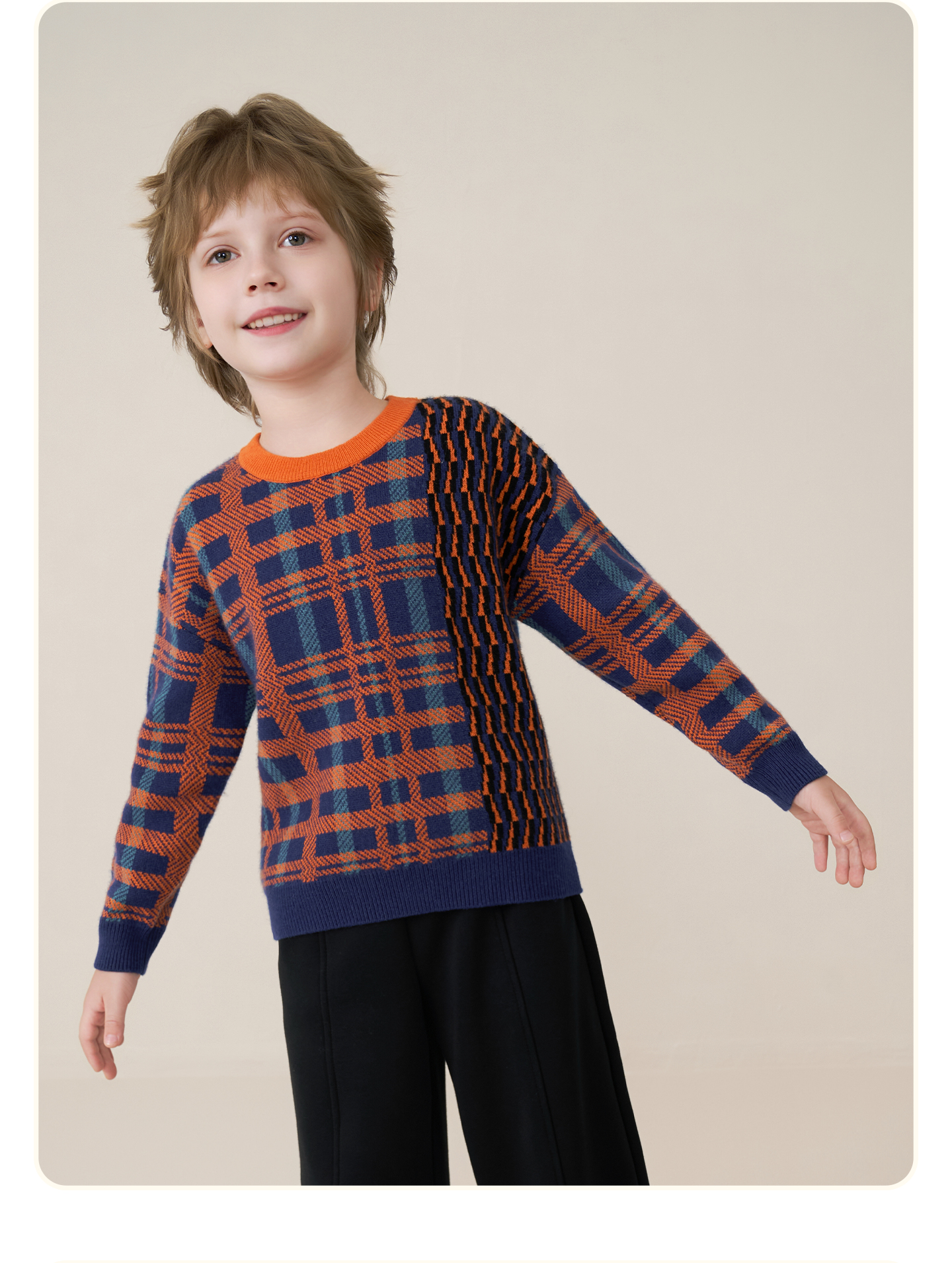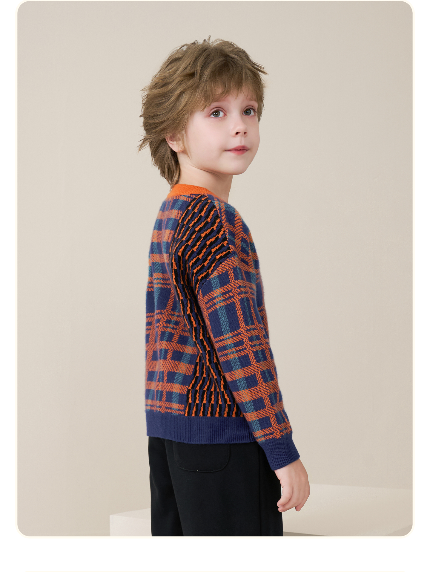 mettekids儿童100%羊绒衫2025秋冬男童撞色提花加厚针织套头毛衣