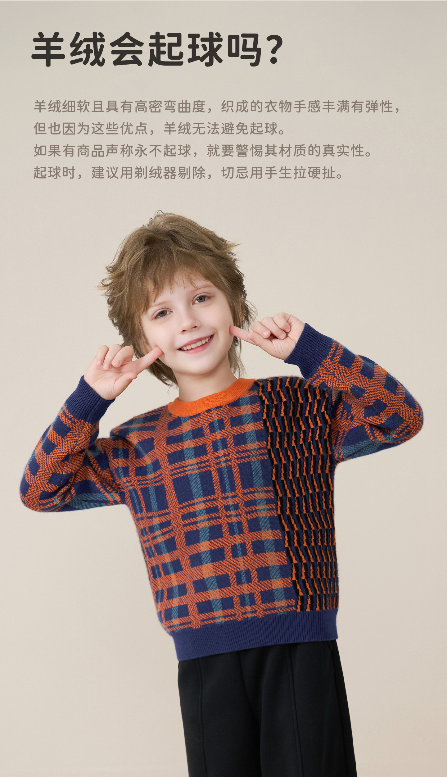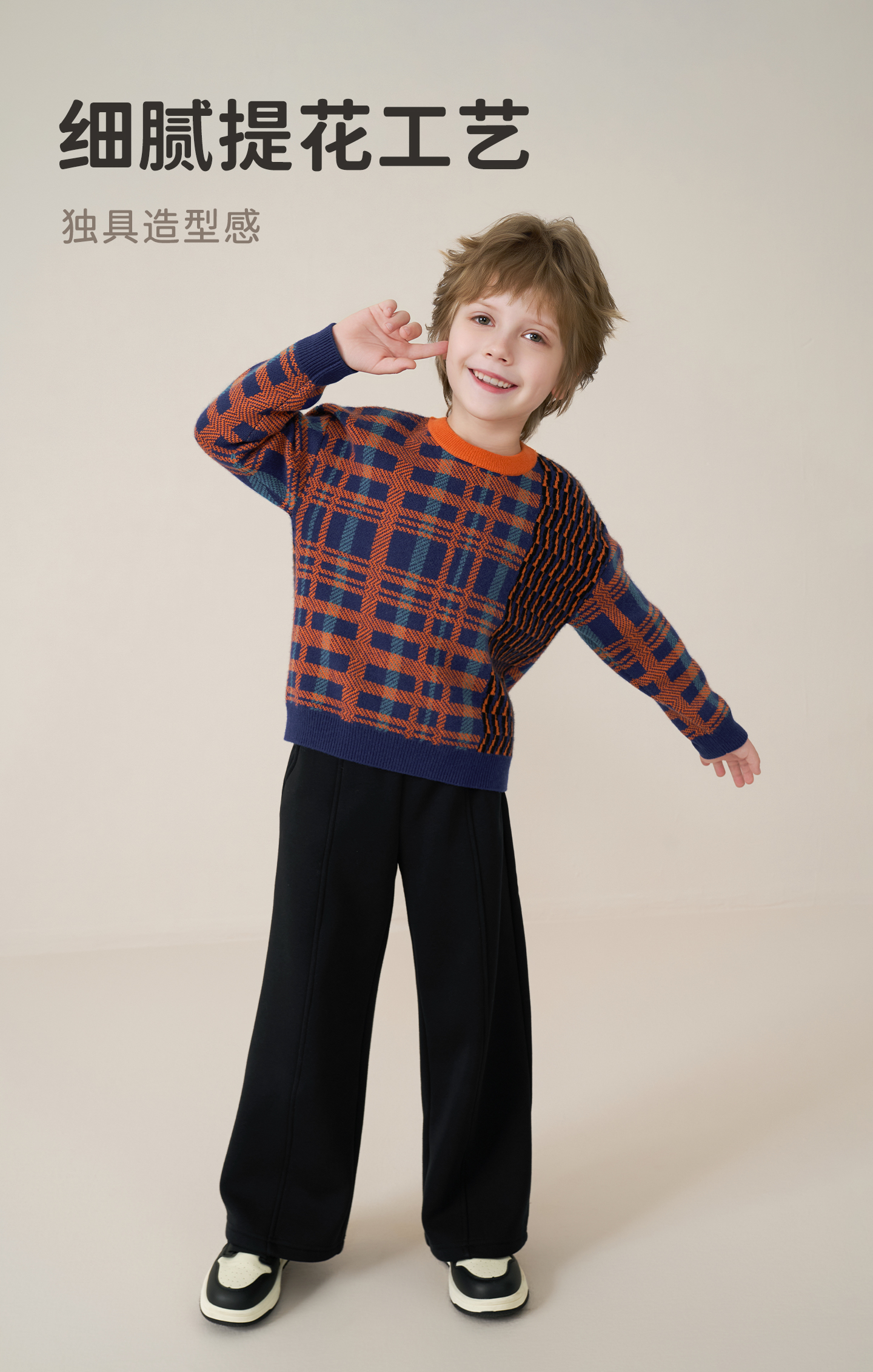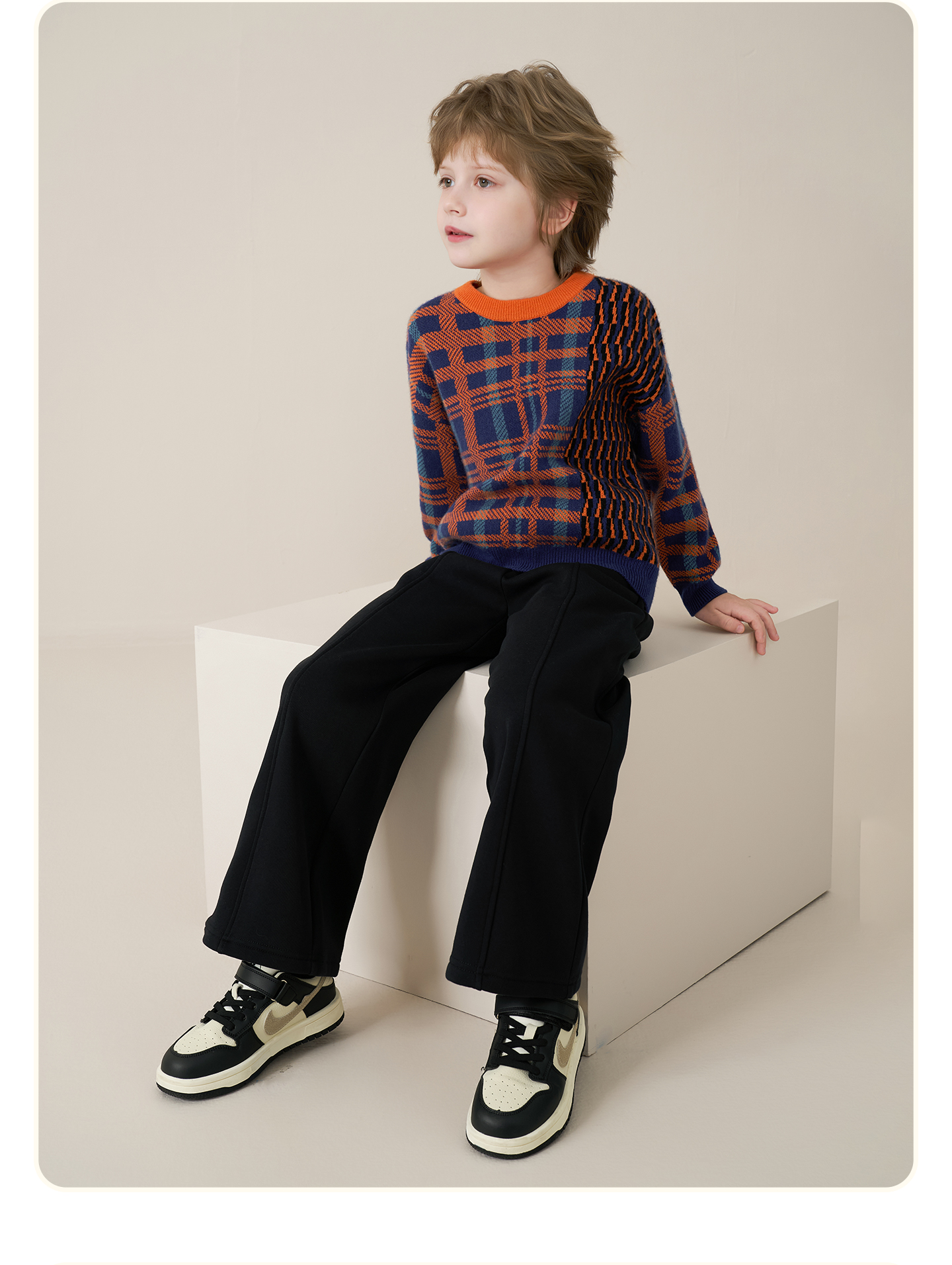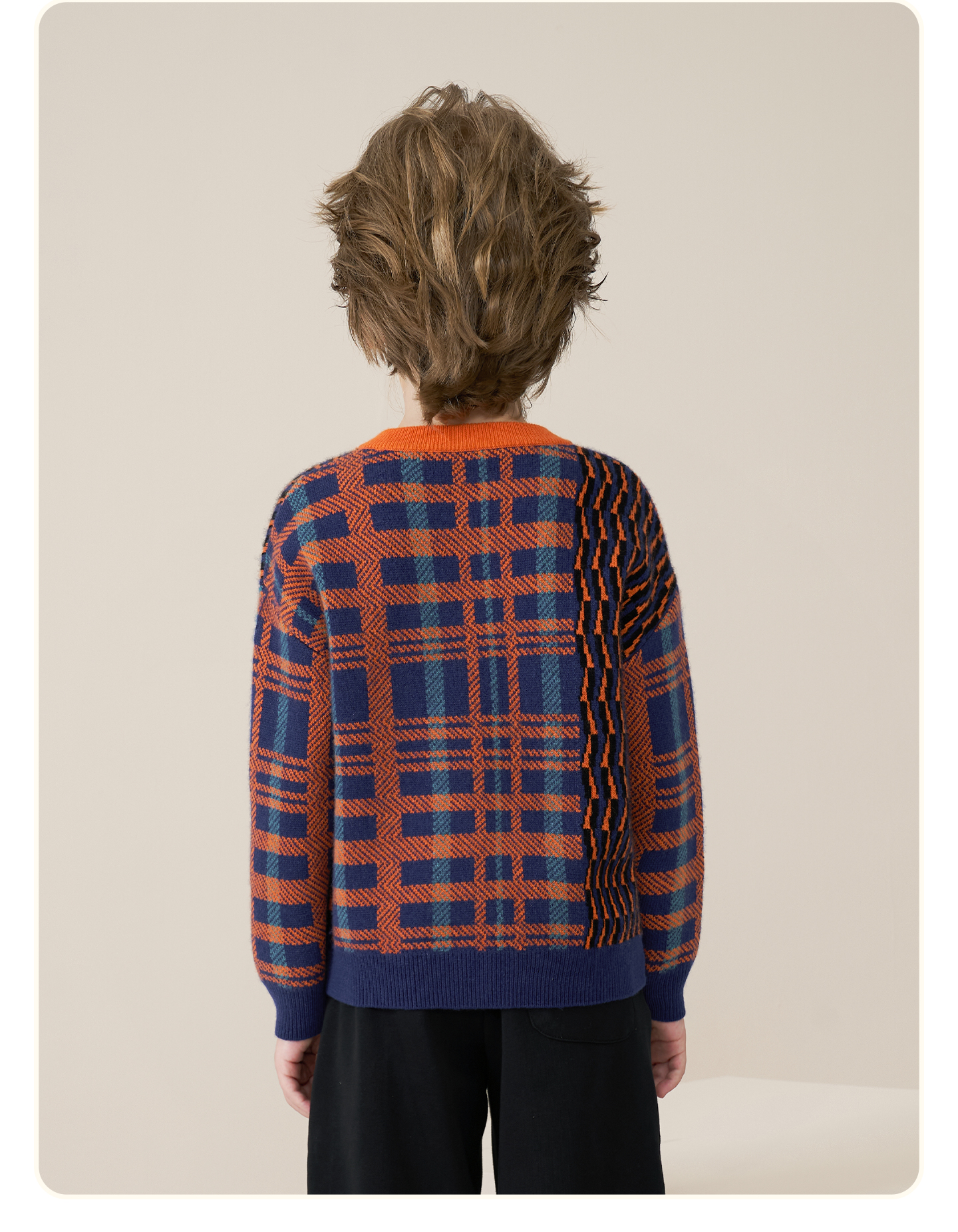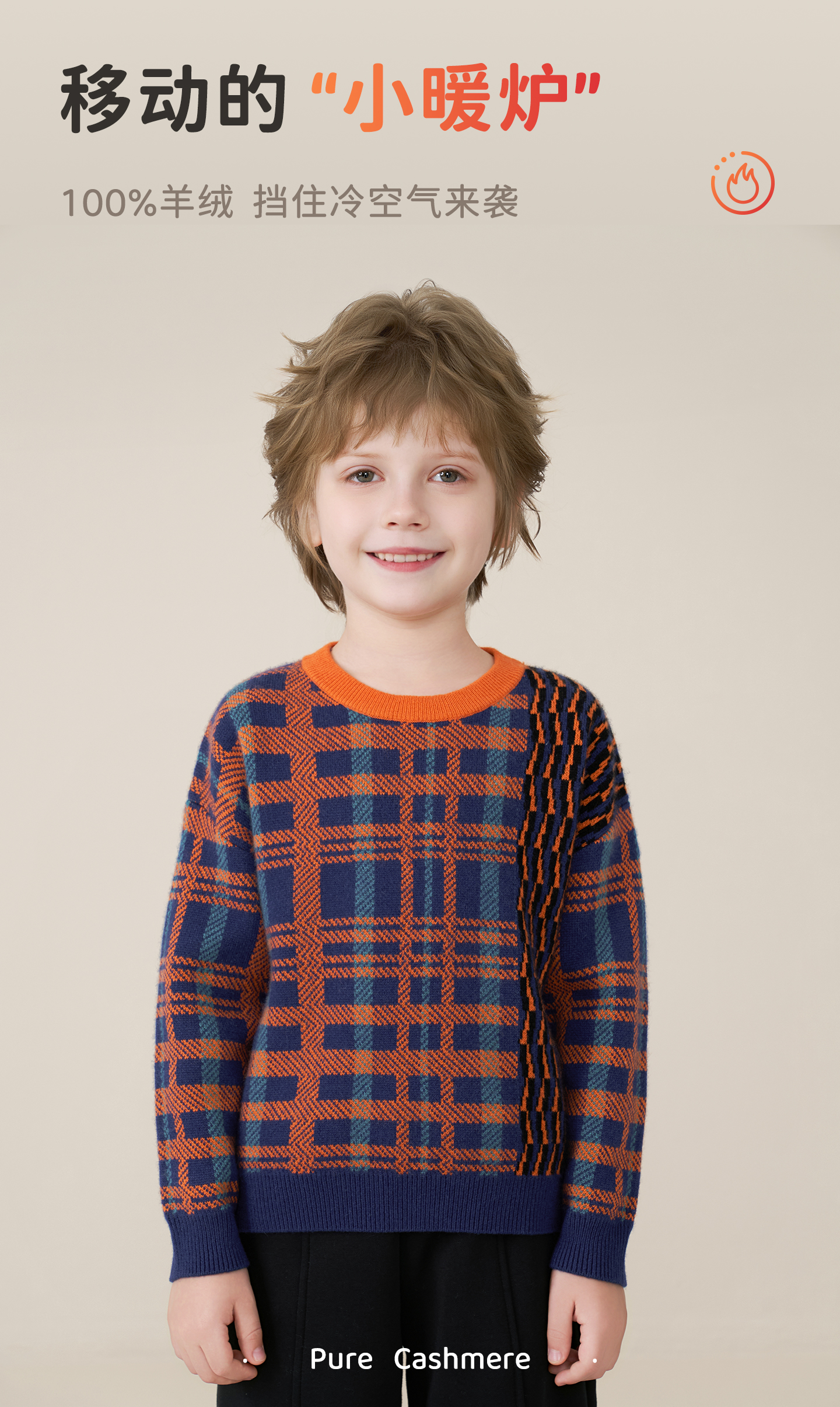 mettekids儿童100%羊绒衫2025秋冬男童撞色提花加厚针织套头毛衣