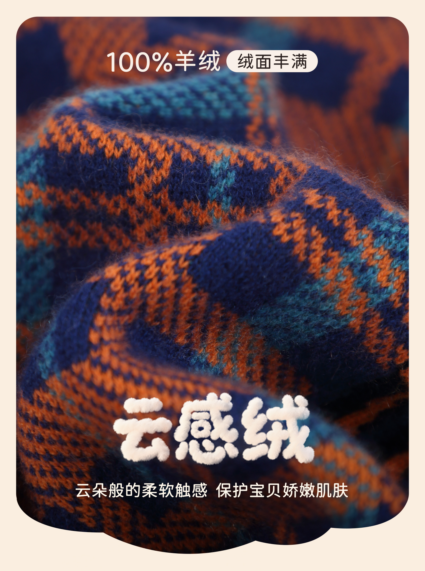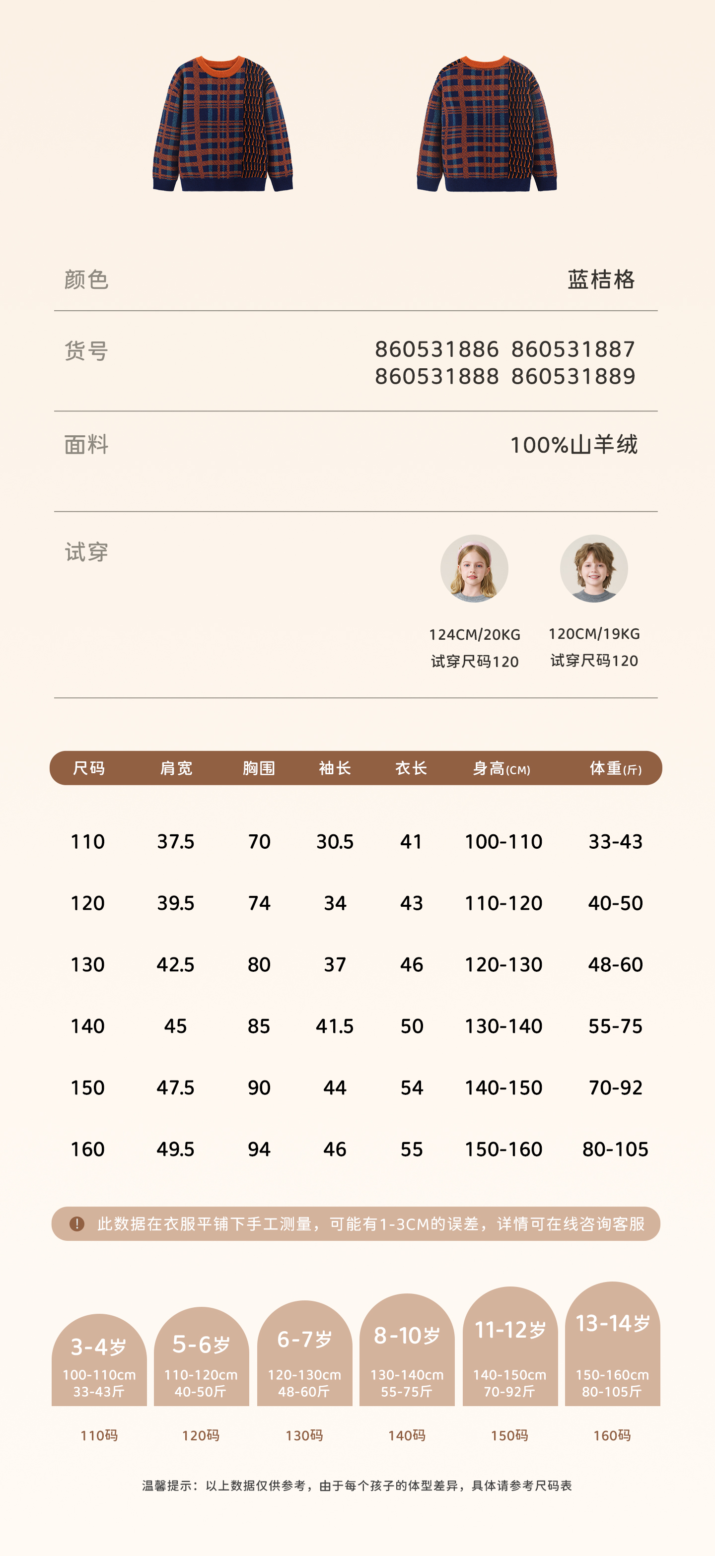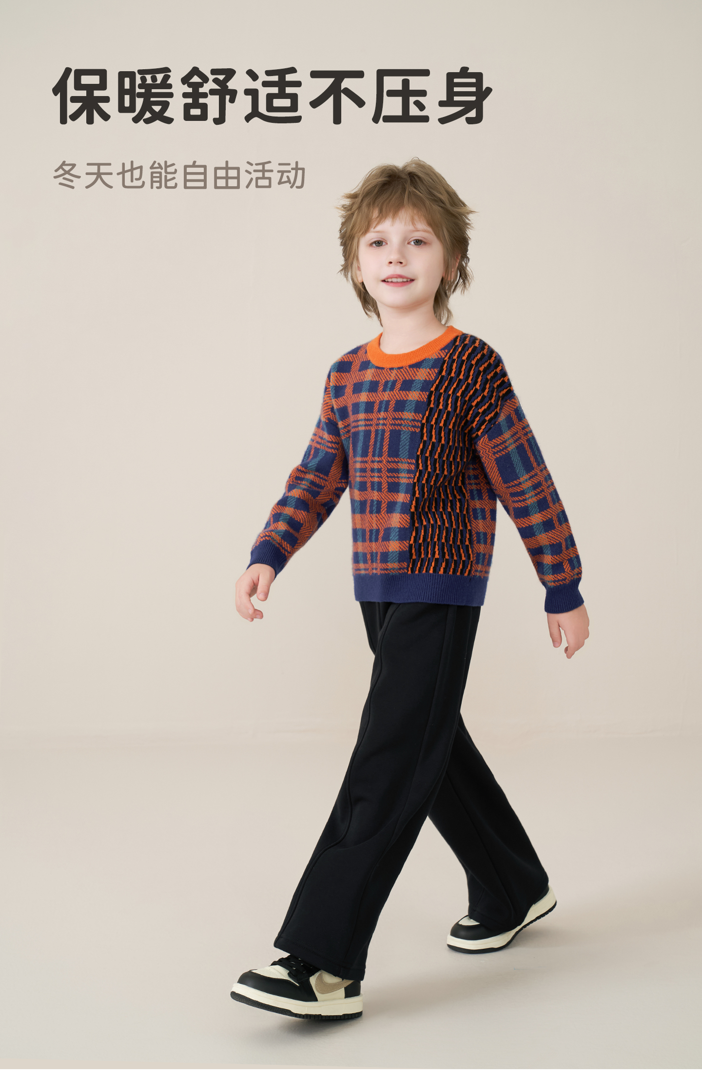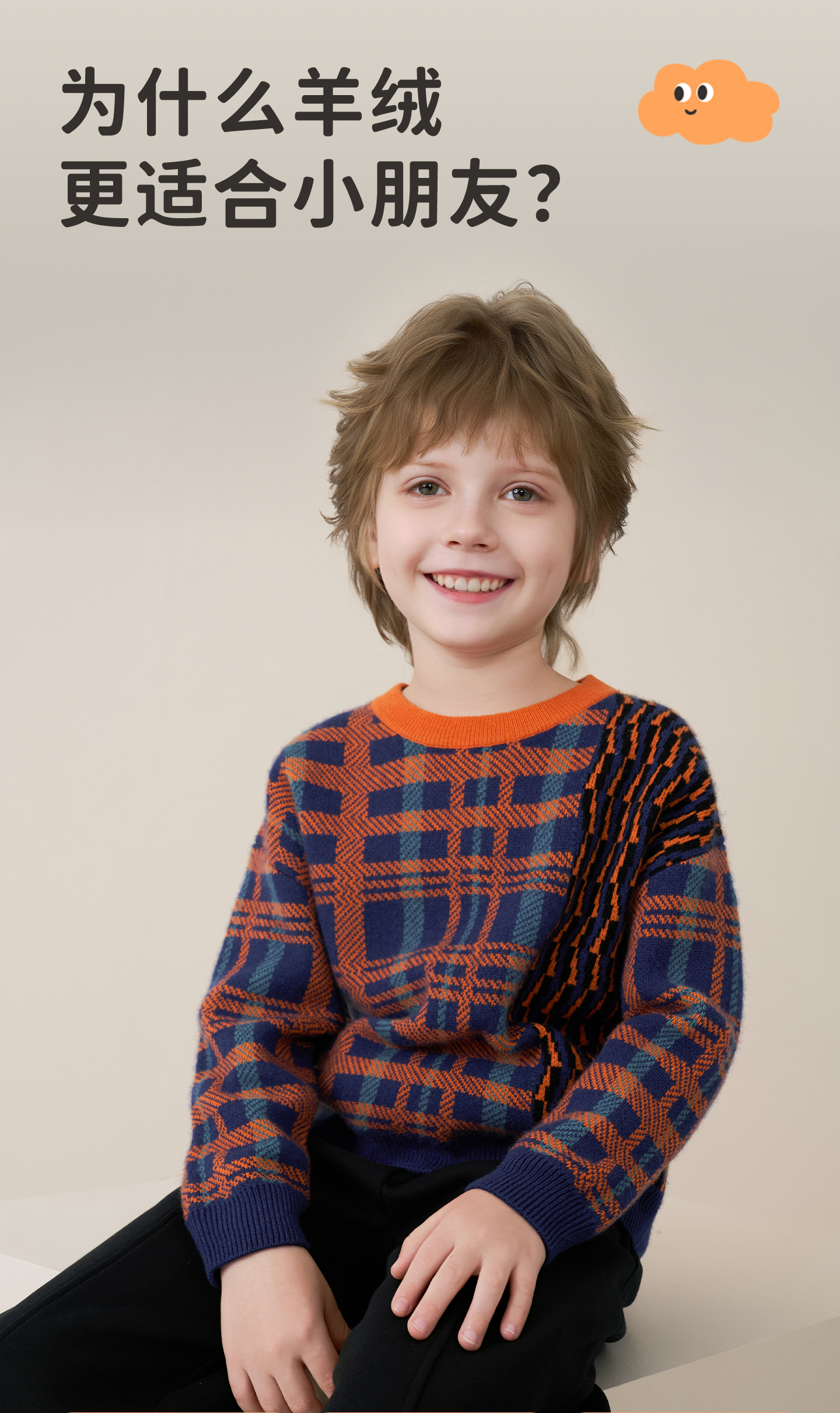 mettekids儿童100%羊绒衫2025秋冬男童撞色提花加厚针织套头毛衣