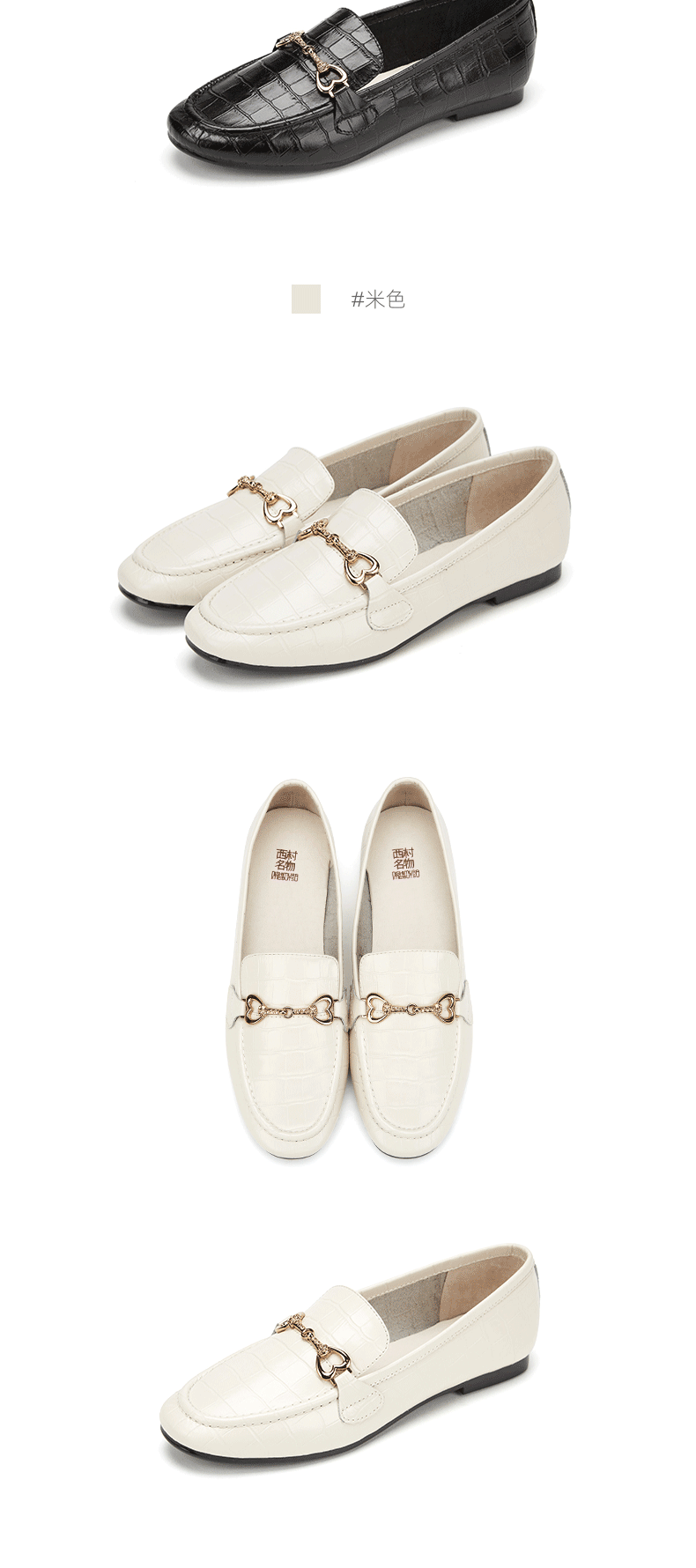 西村名物2020春款舒适英伦风马衔扣石头纹圆头乐福鞋女T20AM18021