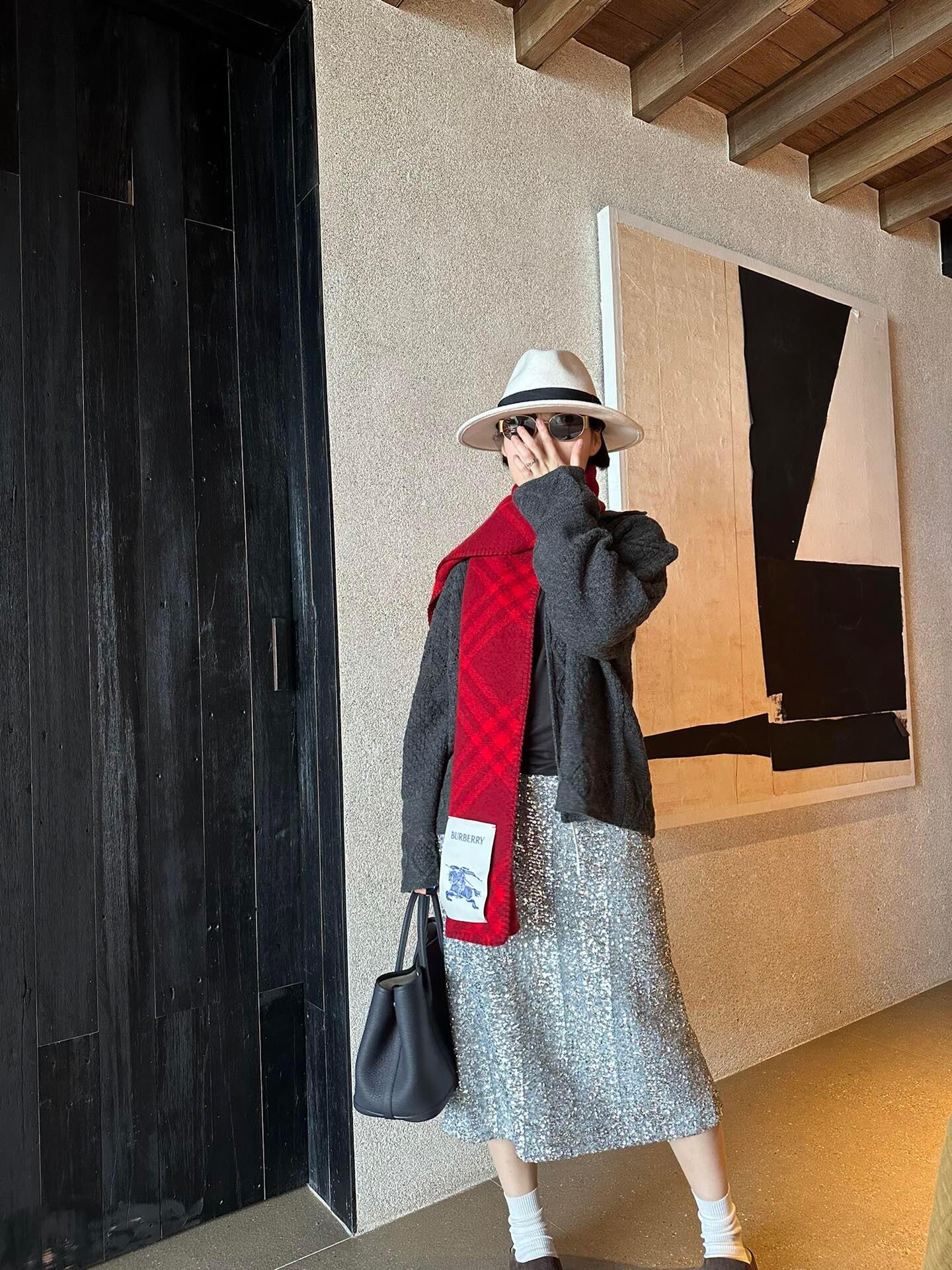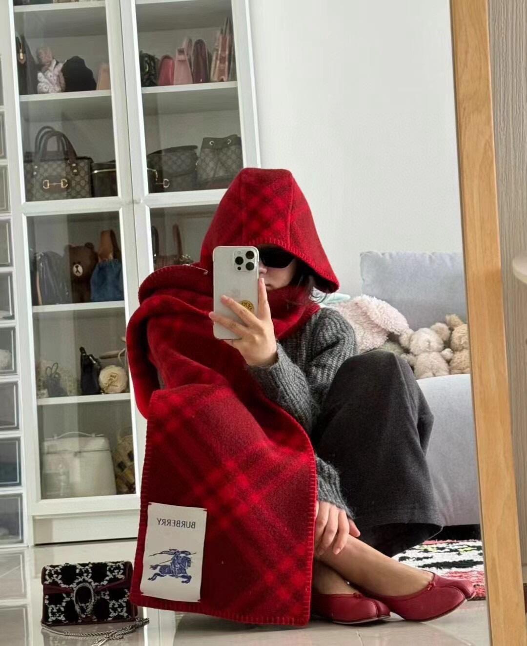 【代购级 出入专柜无压力】全智贤同款Burberry格纹围巾 巨显白的红色 喜气又好看 妥妥氛围感神器!