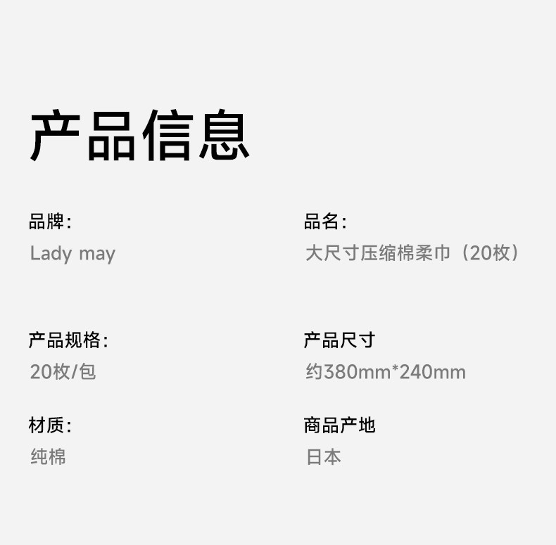 Ladymay 净颜大尺寸压缩棉柔巾(20枚)