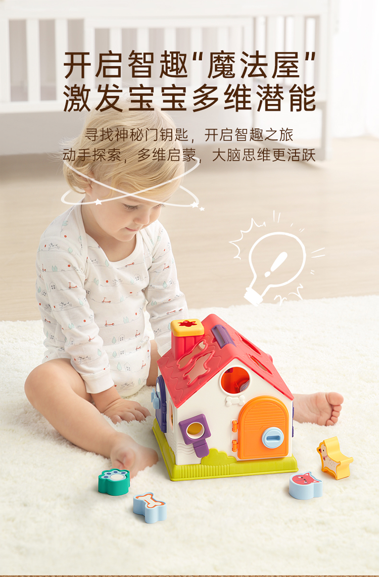 贝恩施积木屋儿童多面体早教益智玩具形状配对宝宝1-2岁男孩女孩