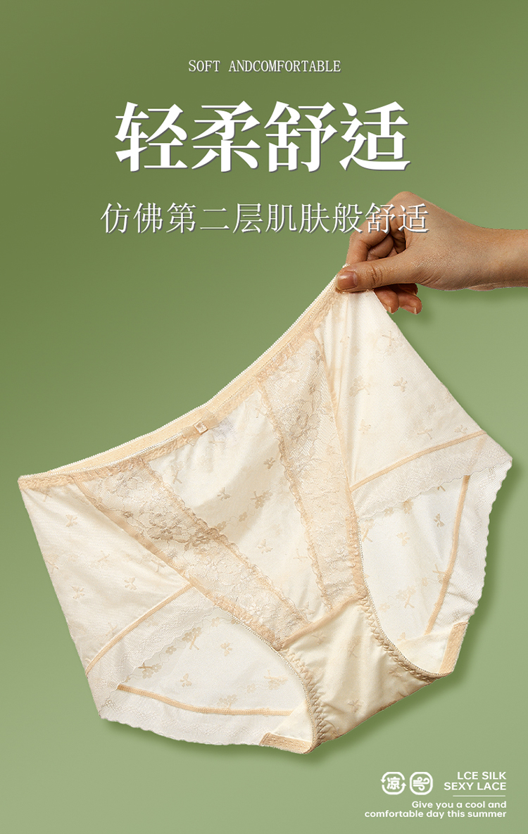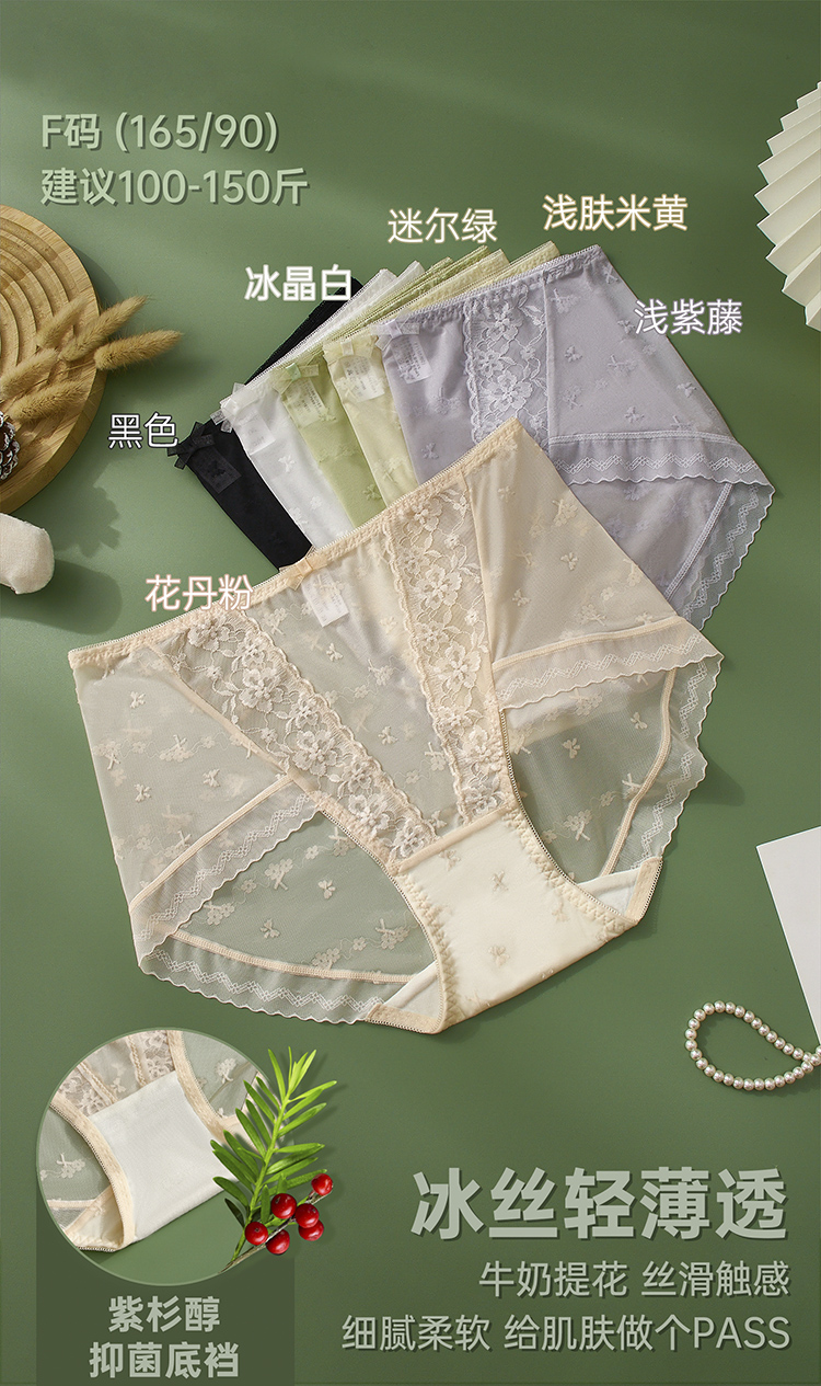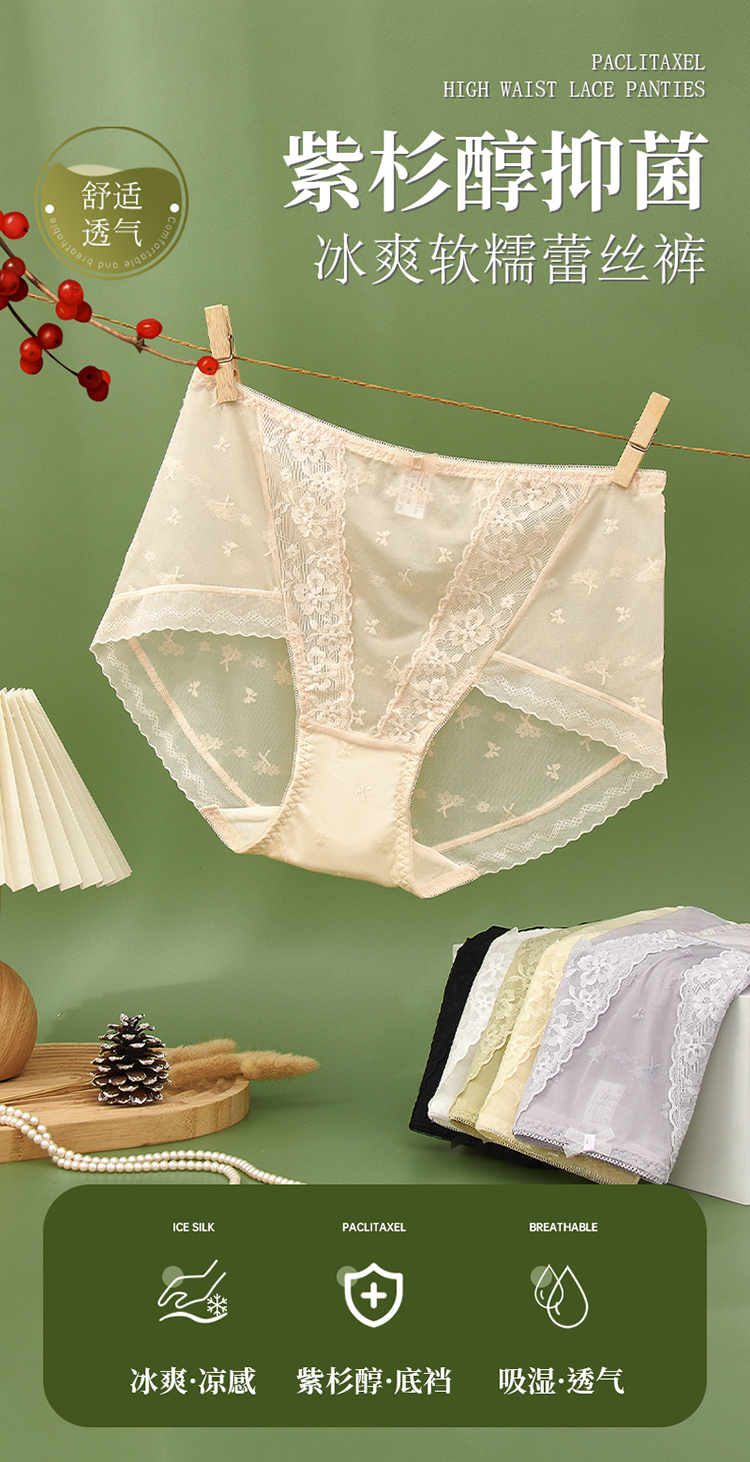 【99元3条,下单数量拍3!】皇家丽美7A级紫衫醇抑菌内裤冰爽软糯蕾丝裤高弹裤腿底裤DKM1389