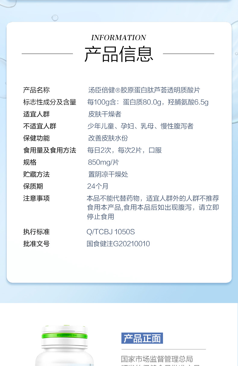 汤臣倍健胶原蛋白芦荟透明质酸片60片