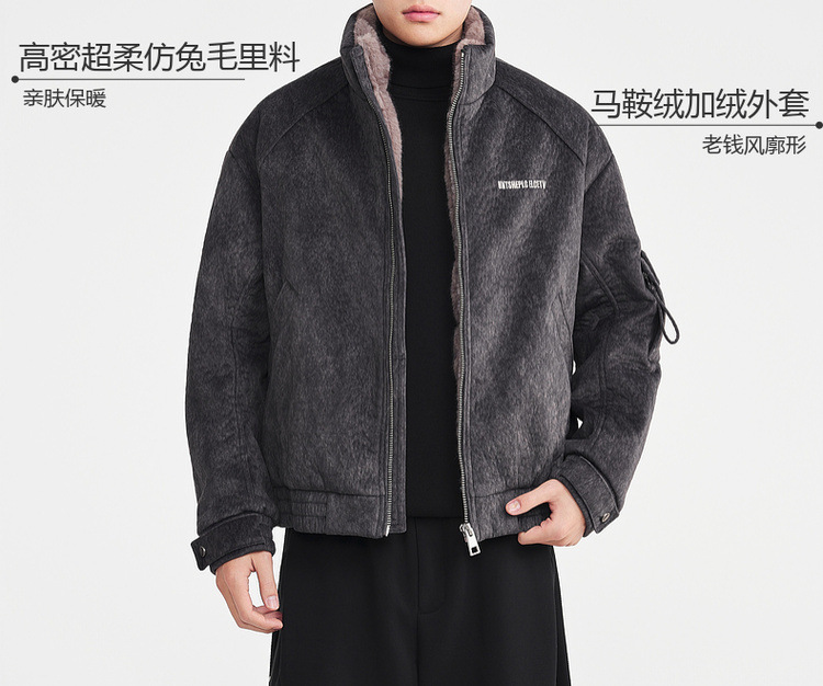 墨麦客男装仿兔毛加绒夹克男2025冬新款老钱风厚款男士外套81556