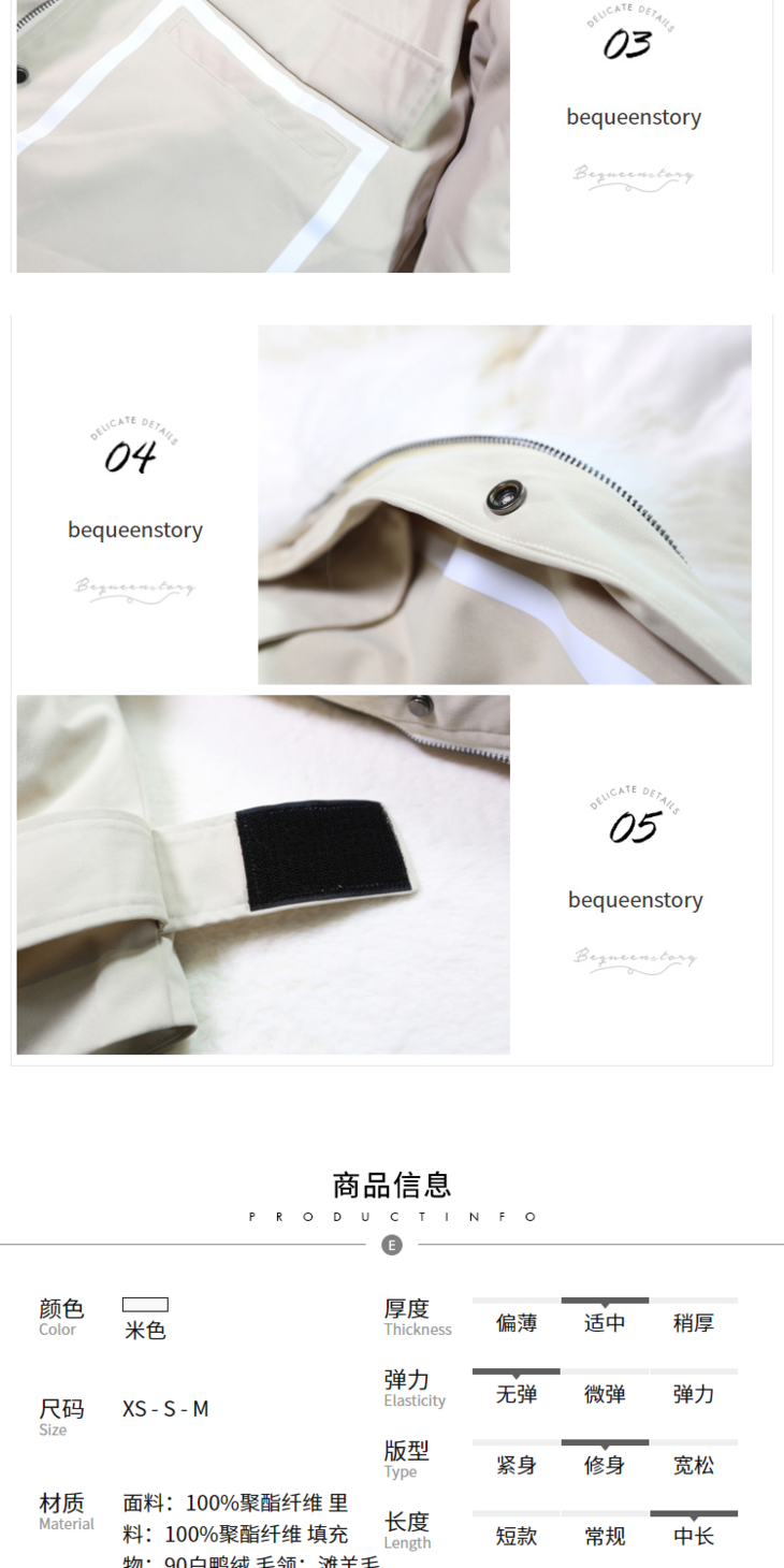 2、细节展示:材质、工艺、做工等;
