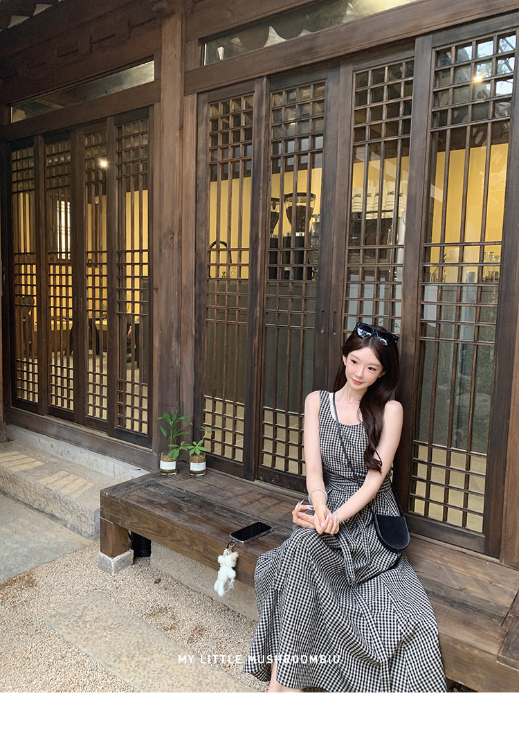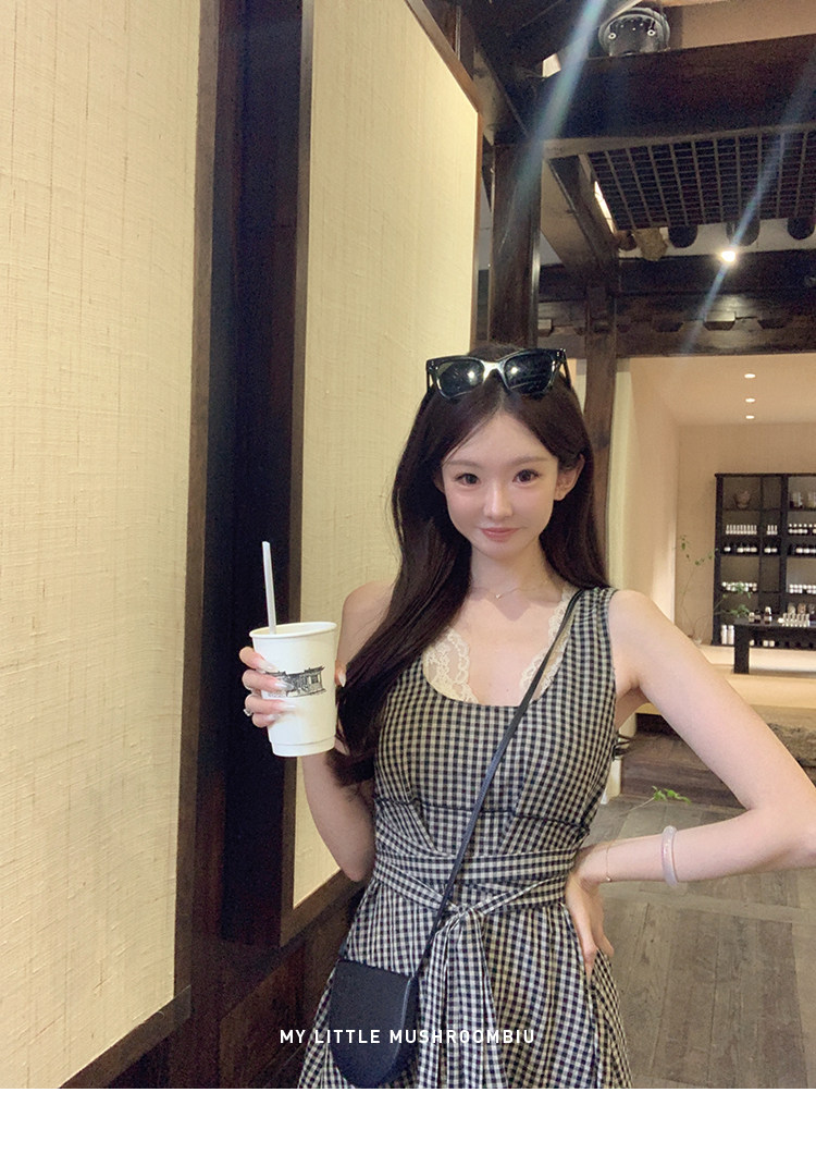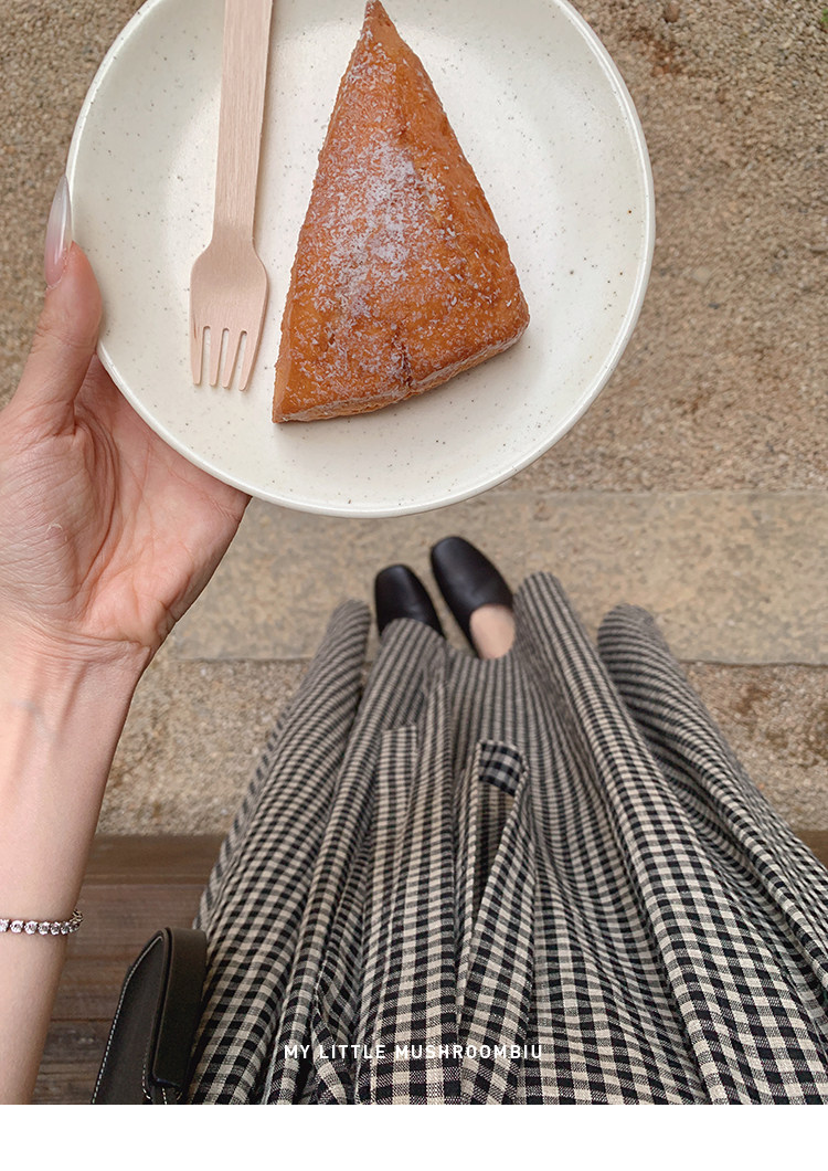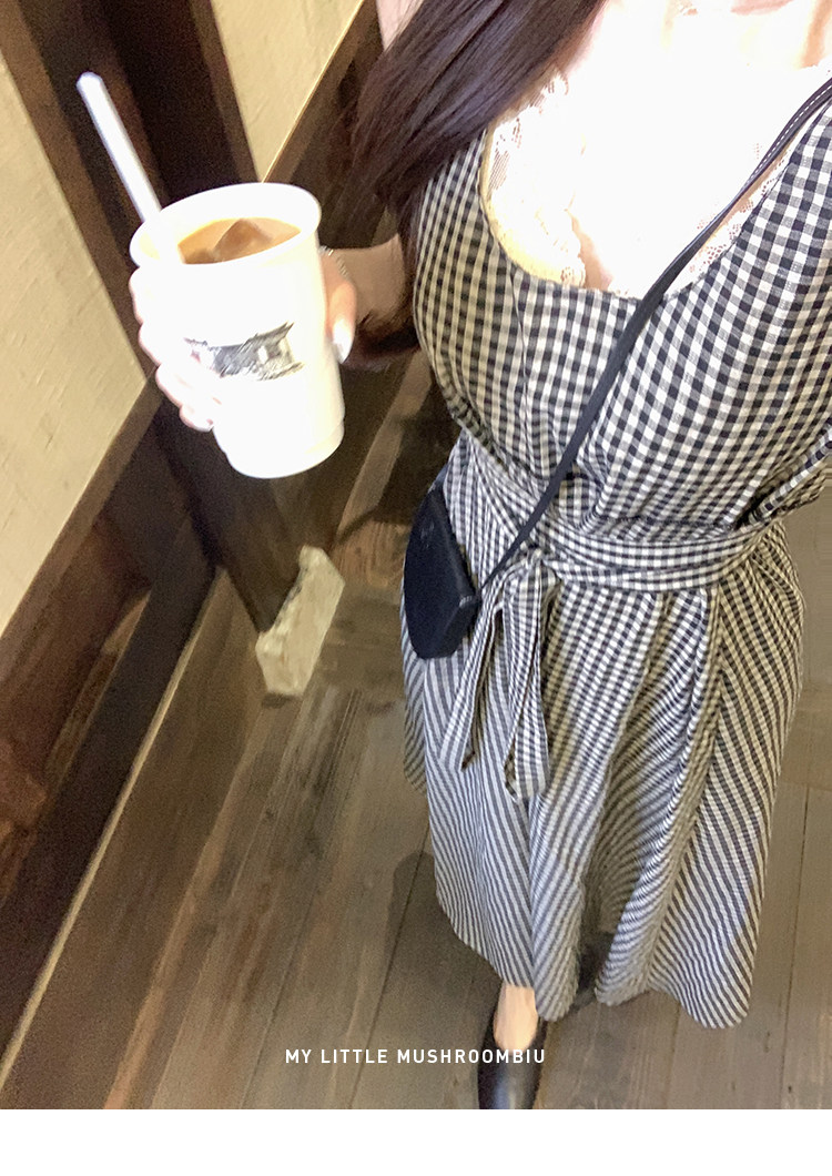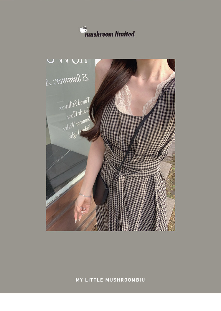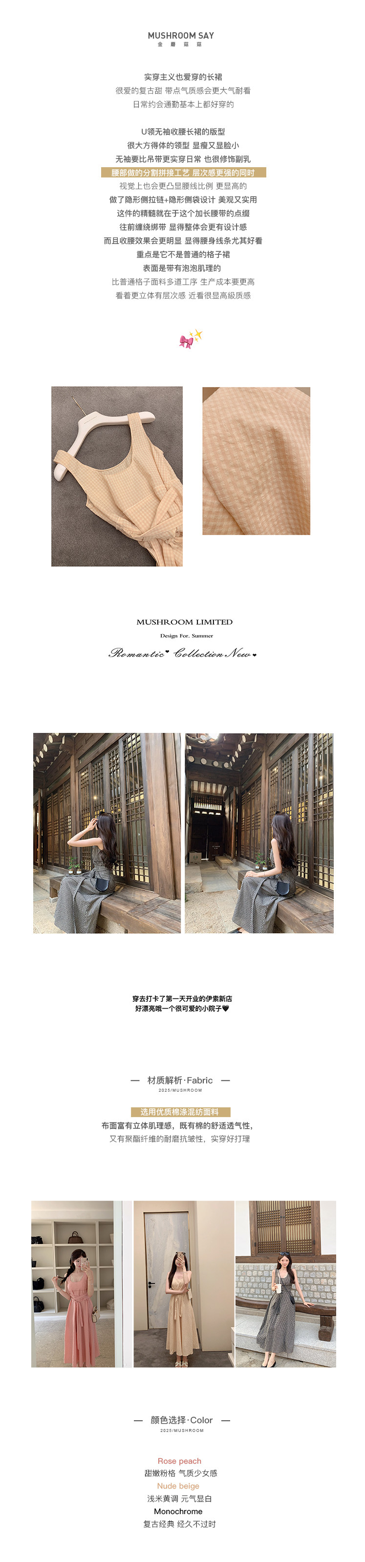 金蘑菇菇 vienne德鲁纳美术馆 / 复古气质甜 轻通勤格子连衣裙