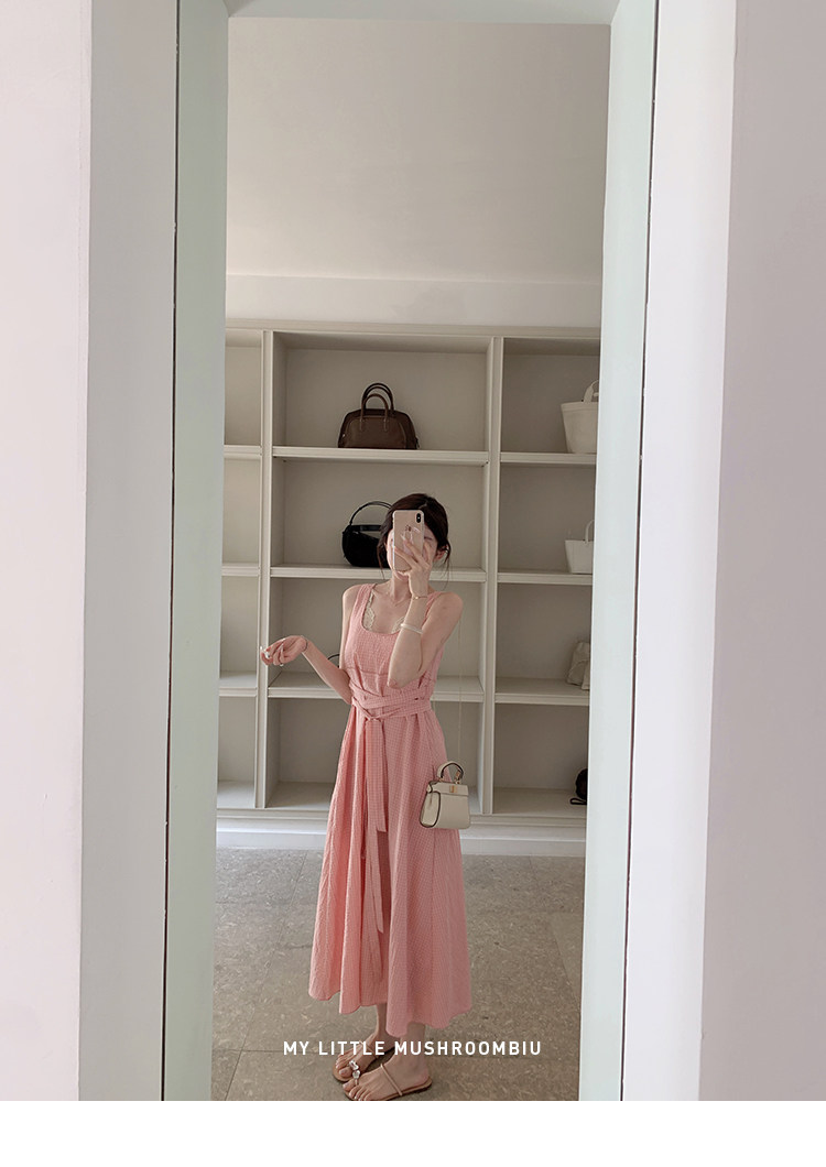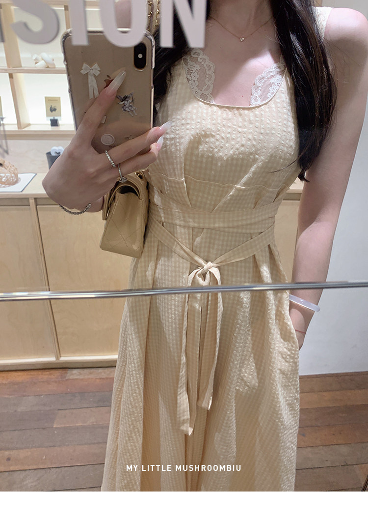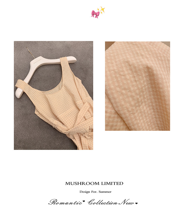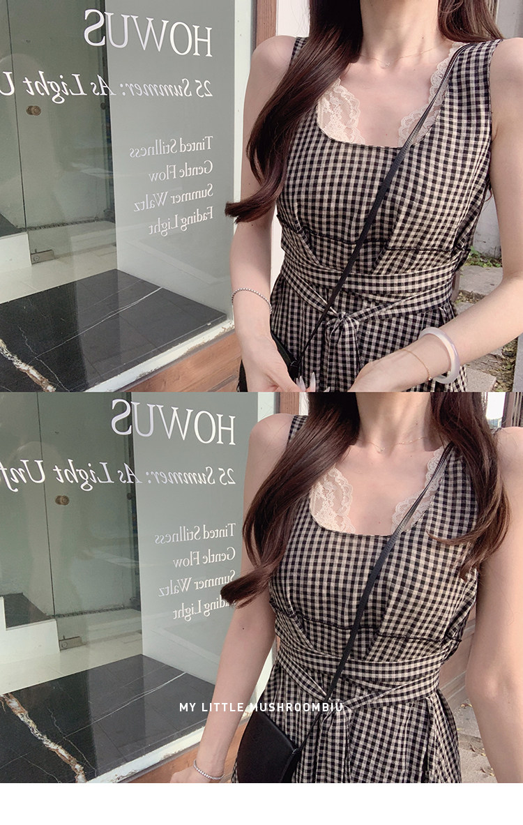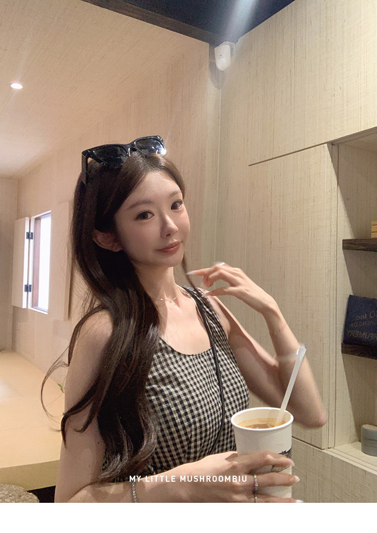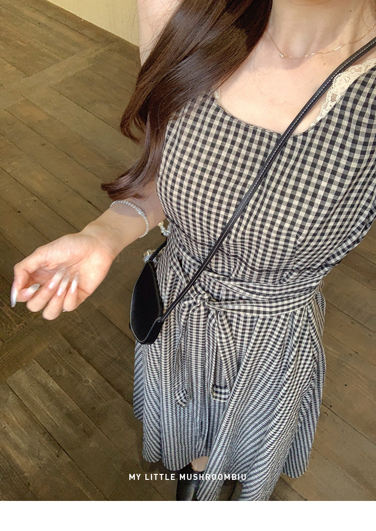 金蘑菇菇 vienne德鲁纳美术馆 / 复古气质甜 轻通勤格子连衣裙