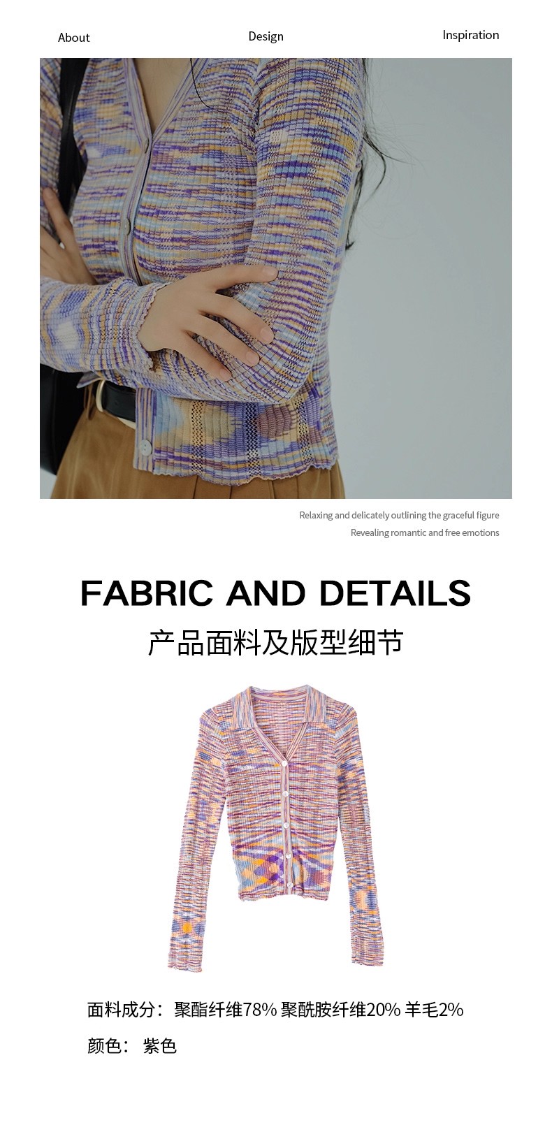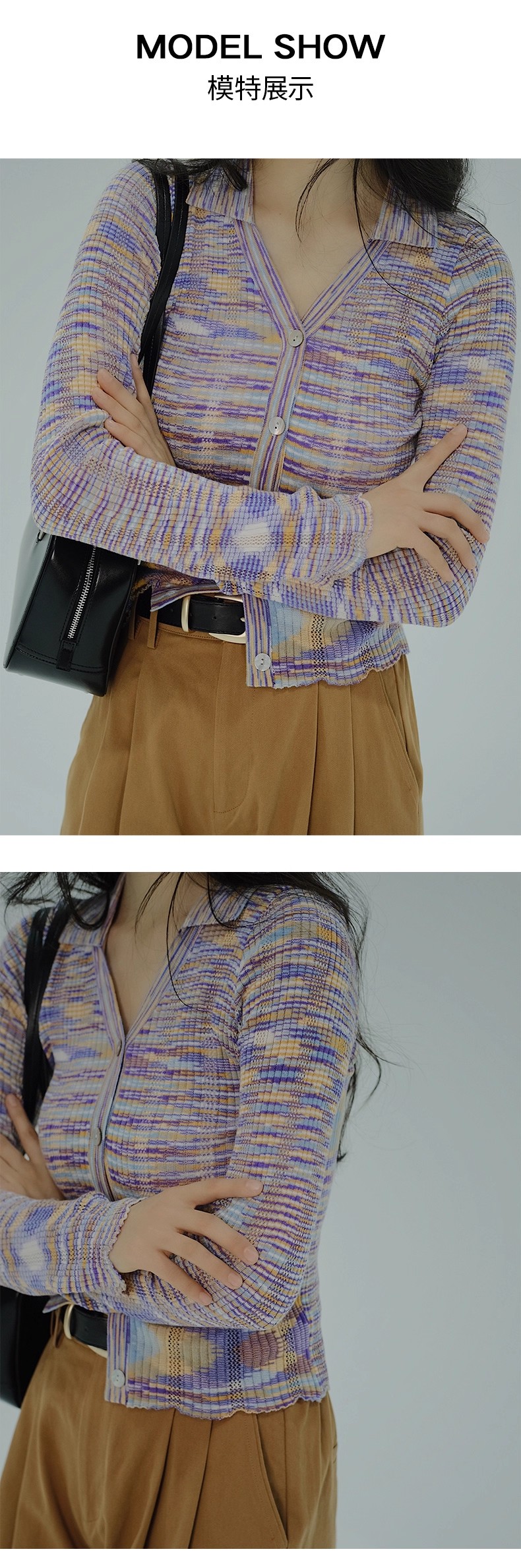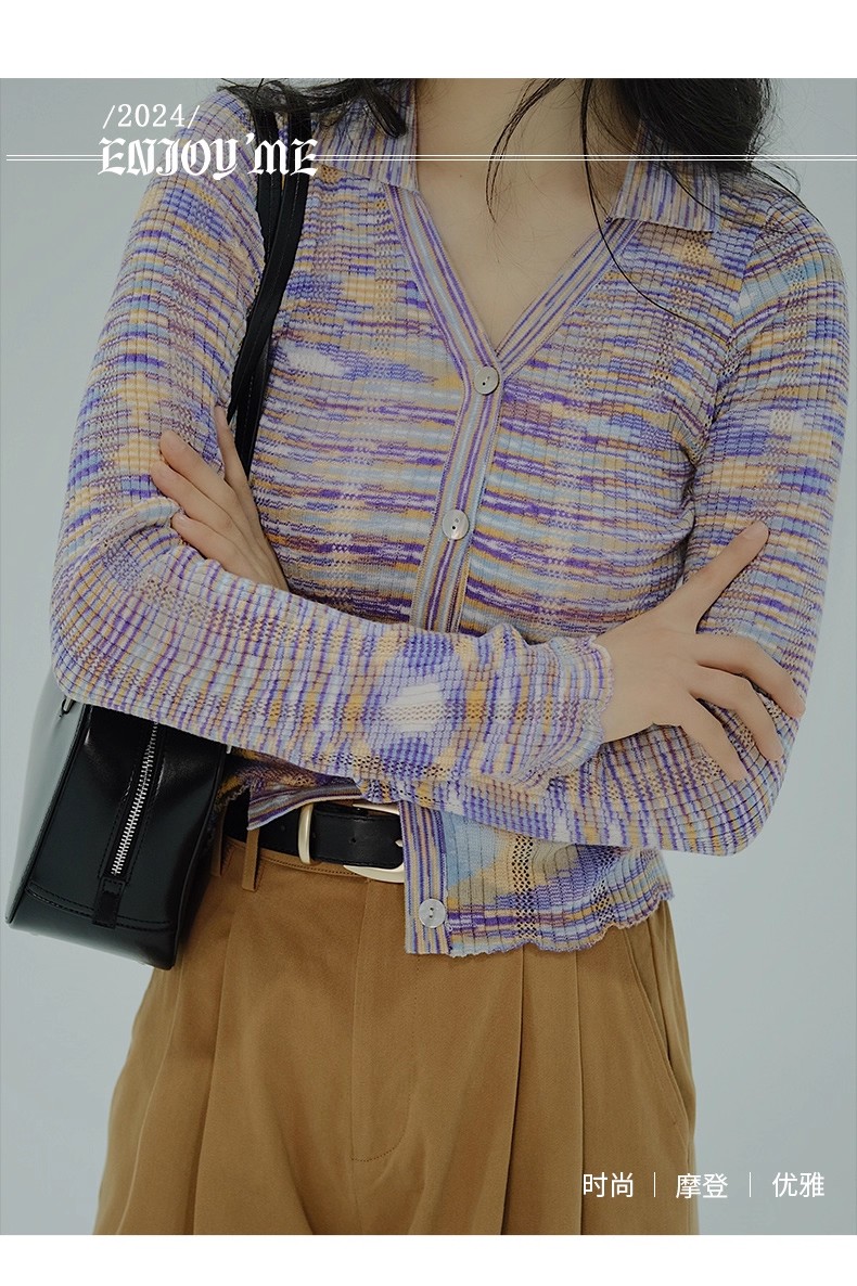 【门店同款】ENJOY春季翻领混色针织短上衣 155944938
