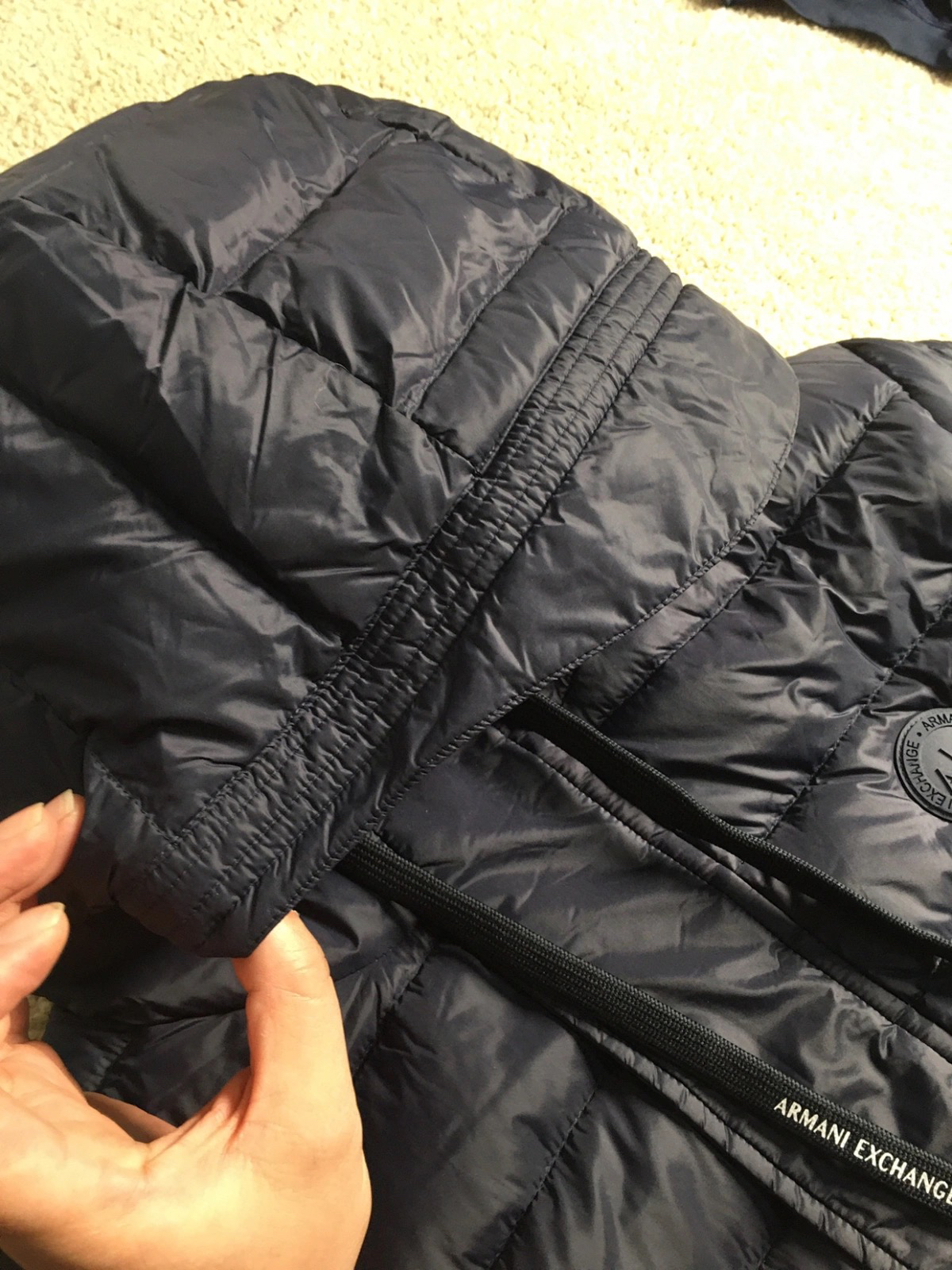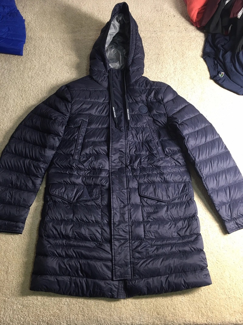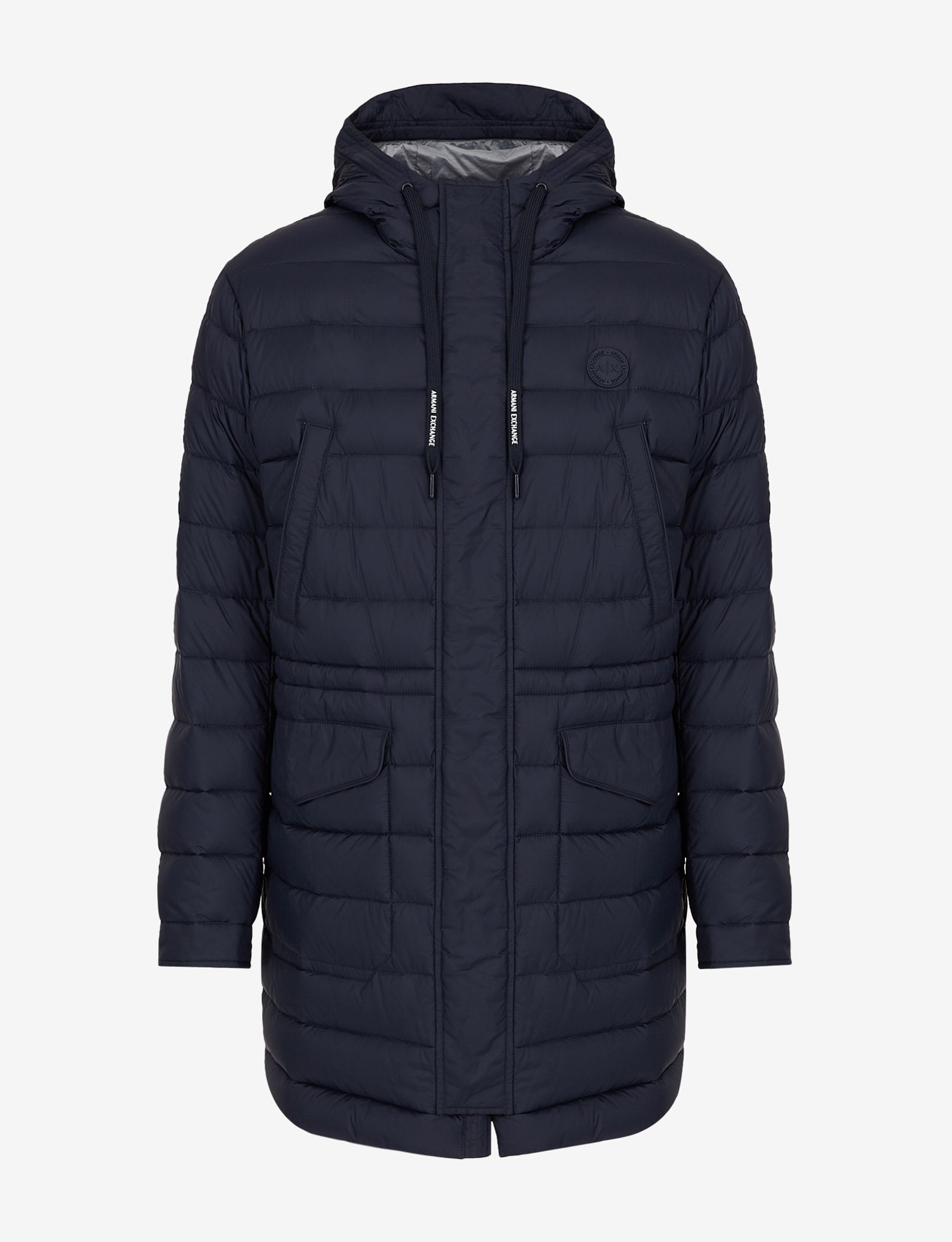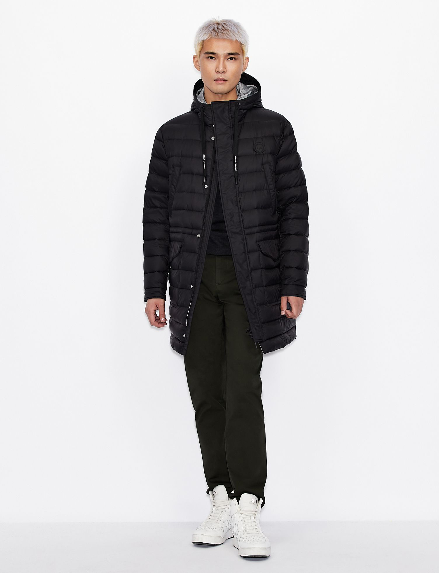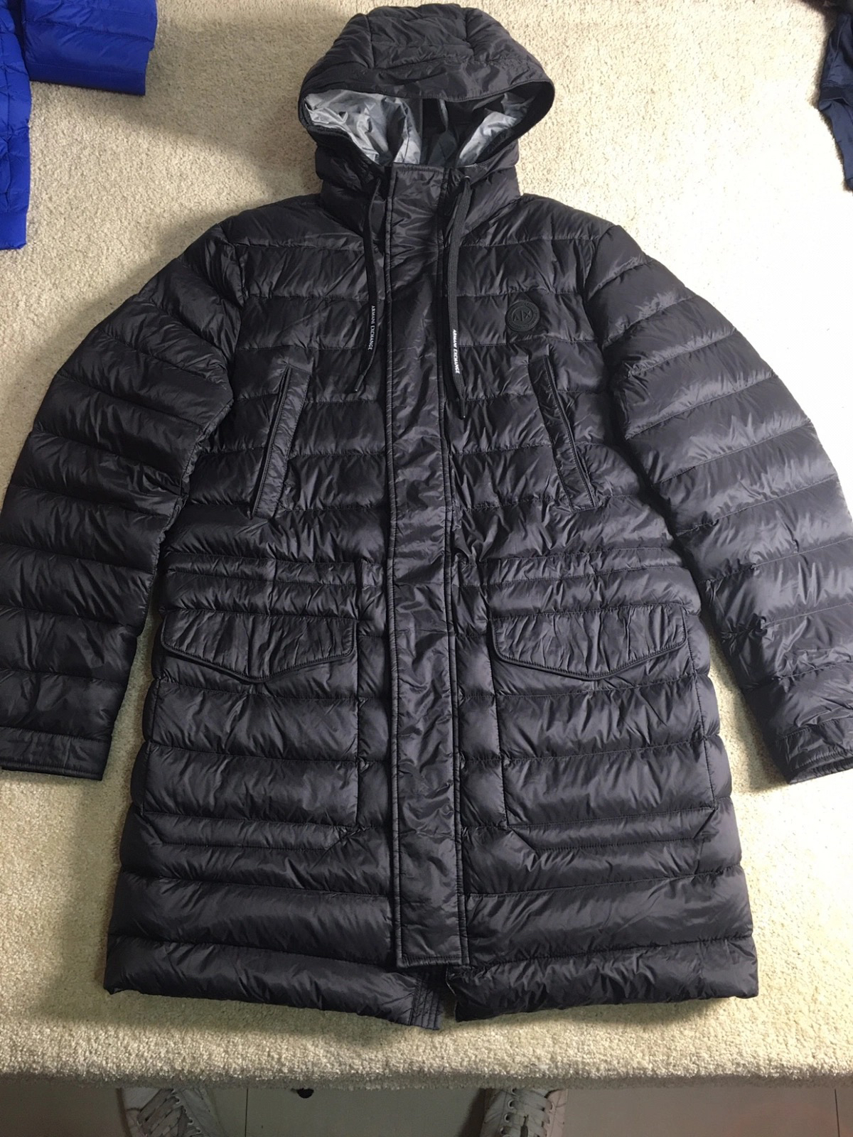 阿玛尼Armani Exchange A/X 中长款带帽羽绒服,帽子不可拆卸。