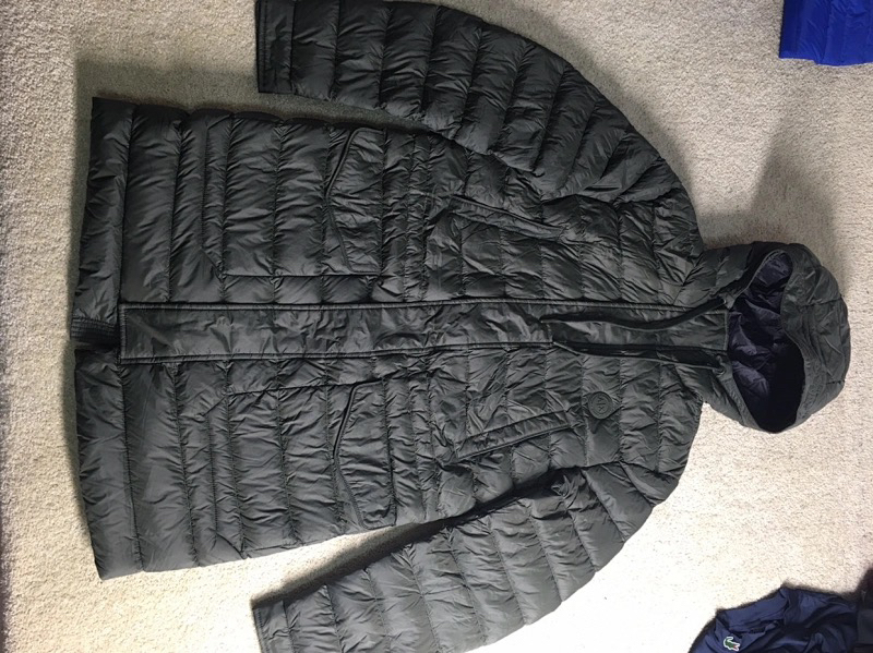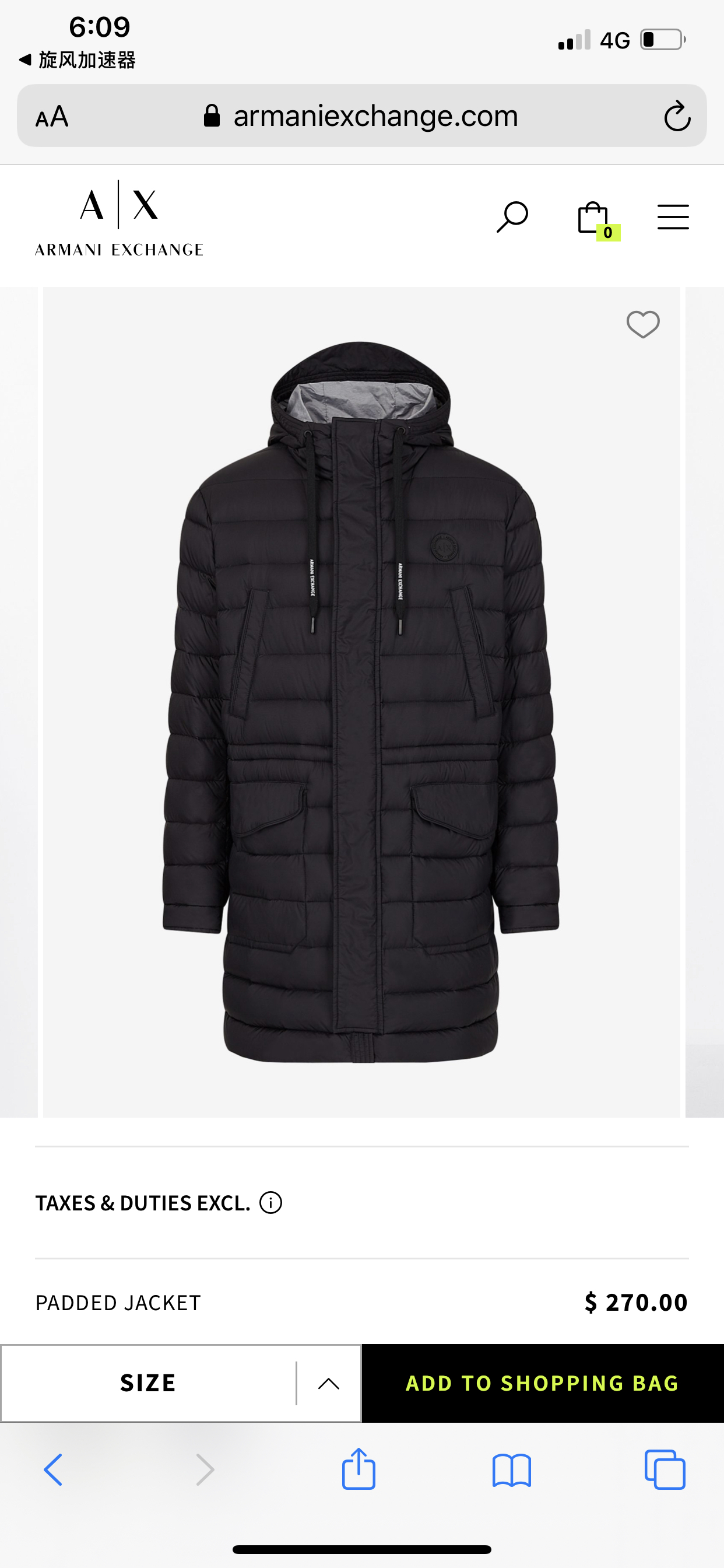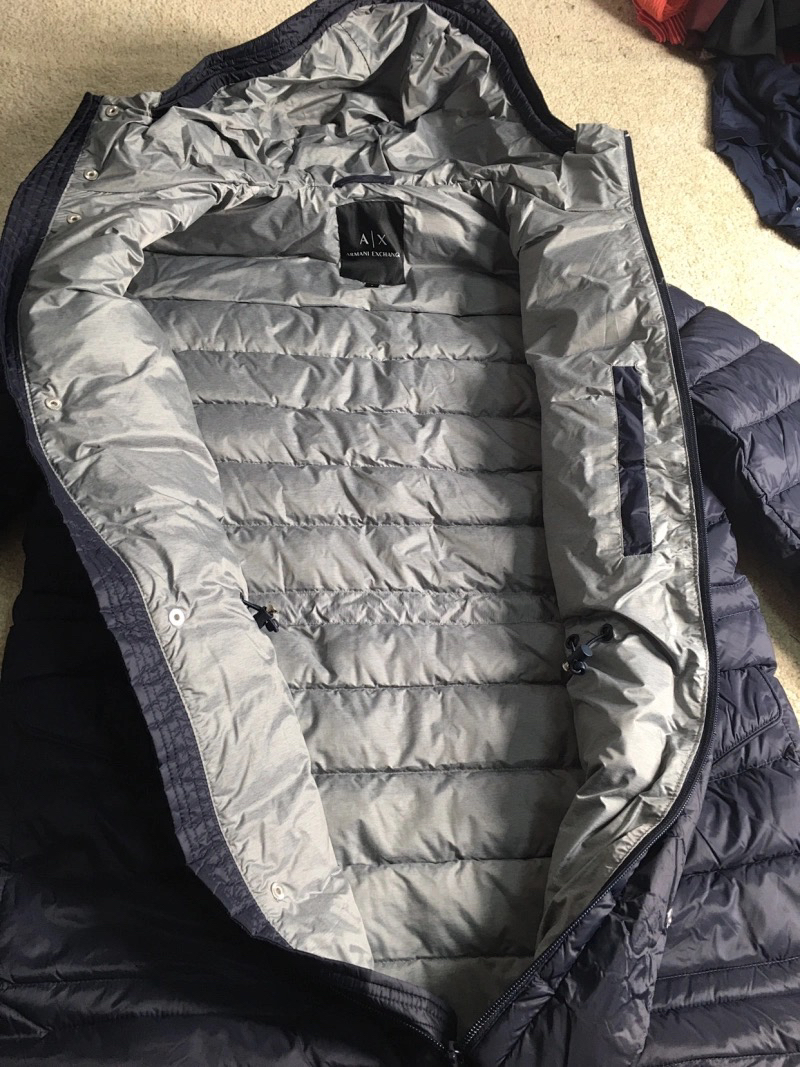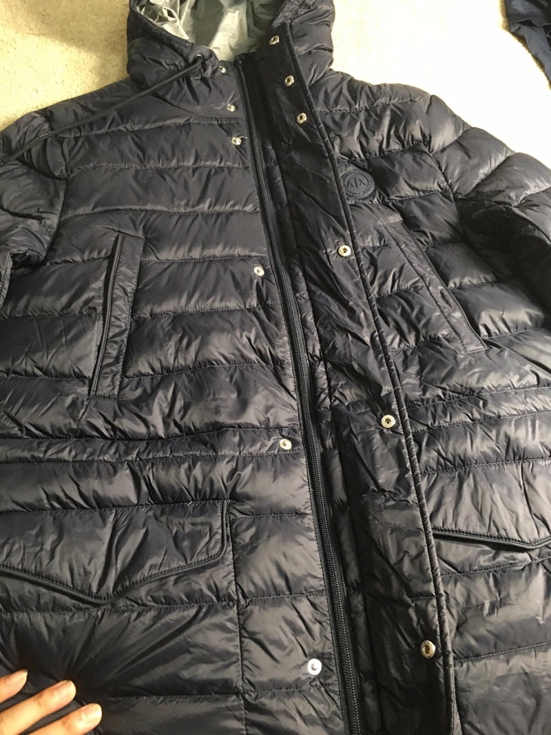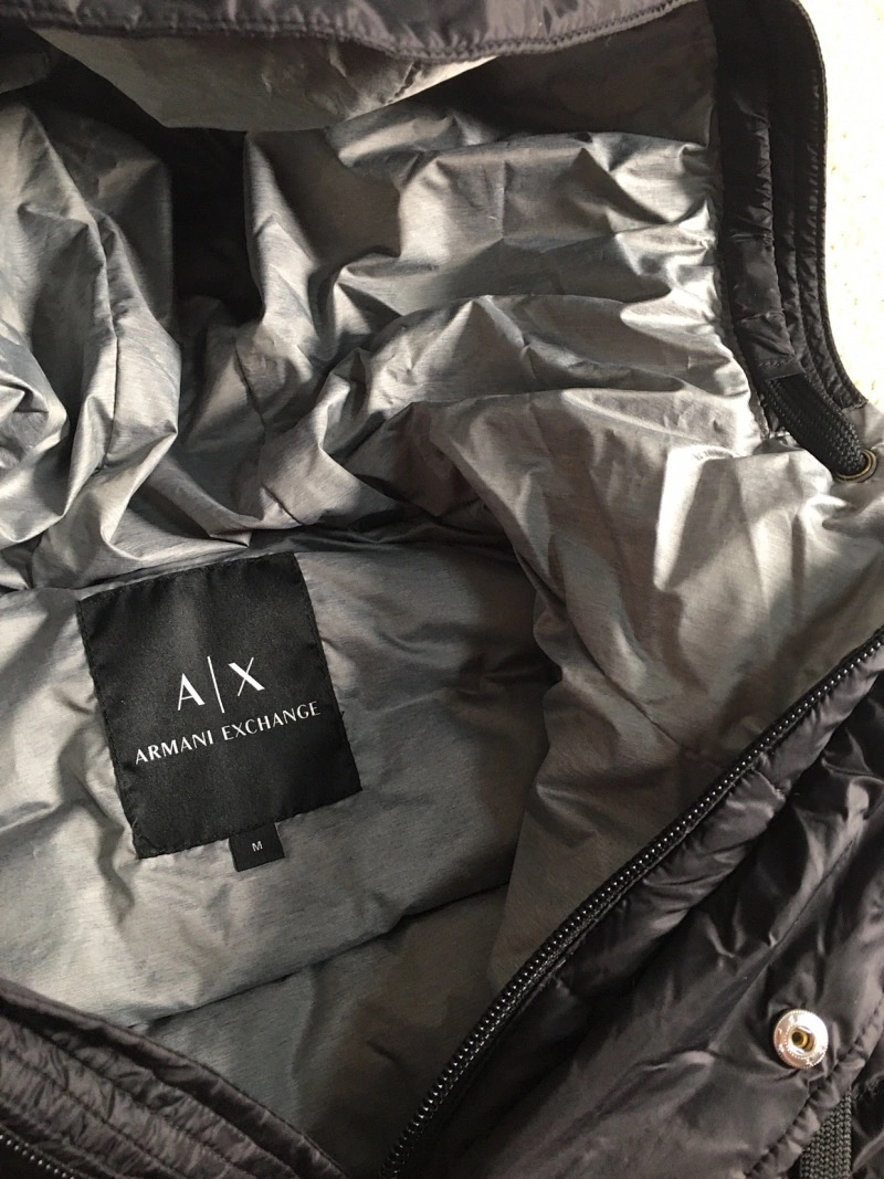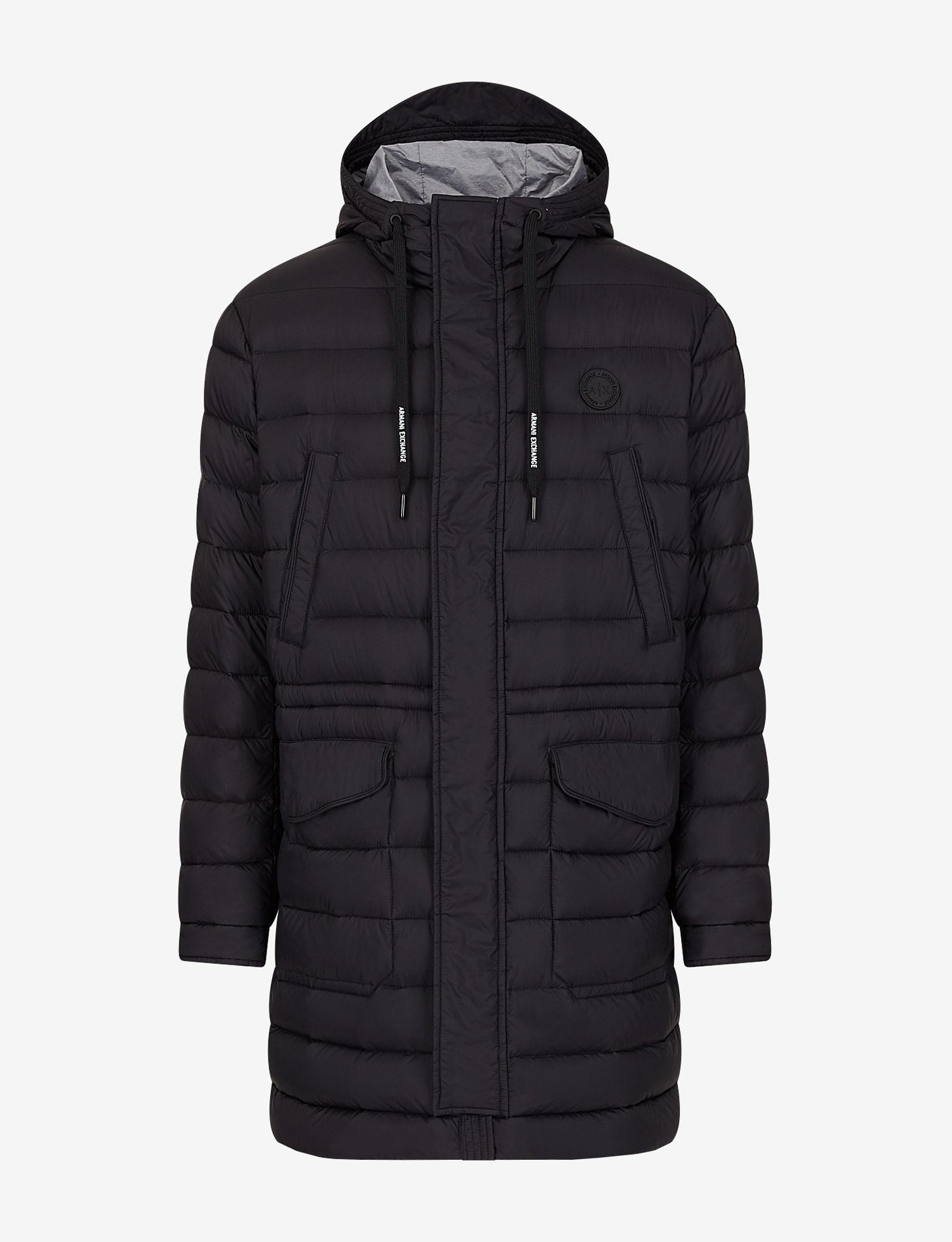 阿玛尼Armani Exchange A/X 中长款带帽羽绒服,帽子不可拆卸。