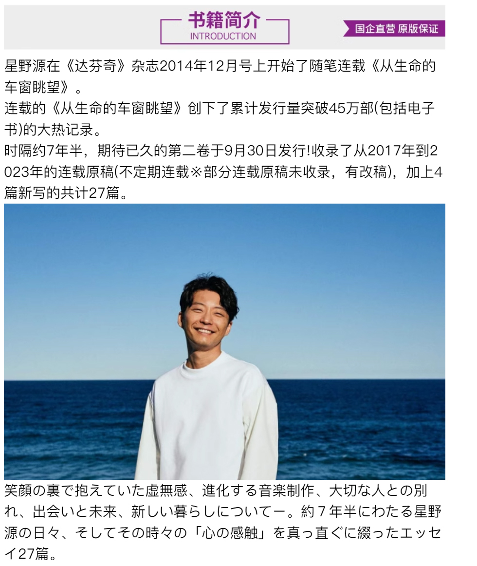 【中商原版】从生命的车窗眺望 2 星野源超人气散文集 日文原版 いのちの車窓から 2