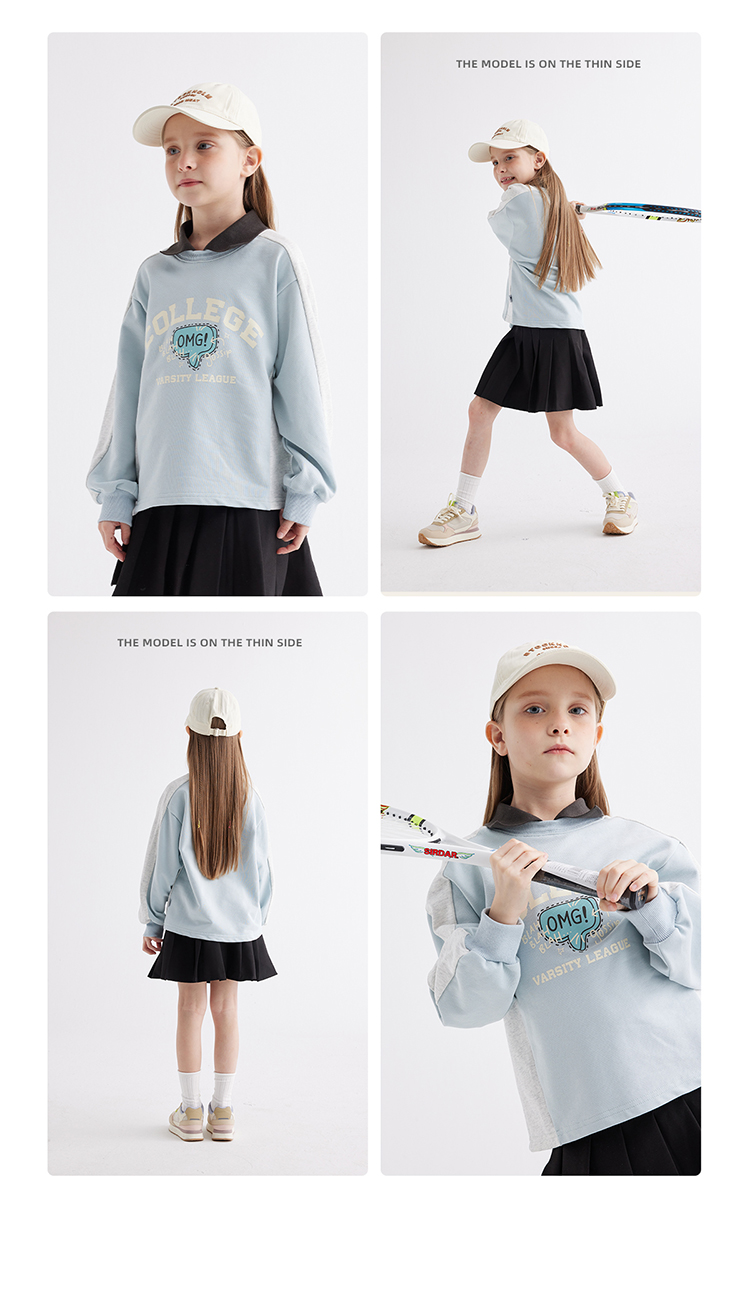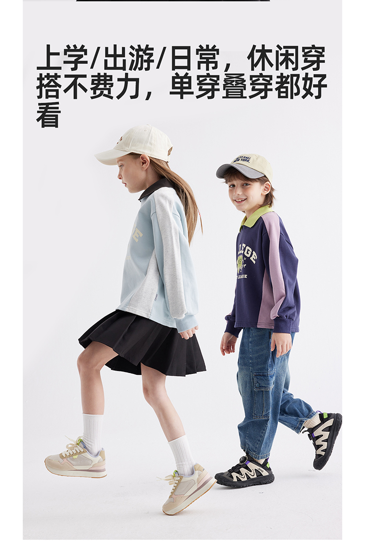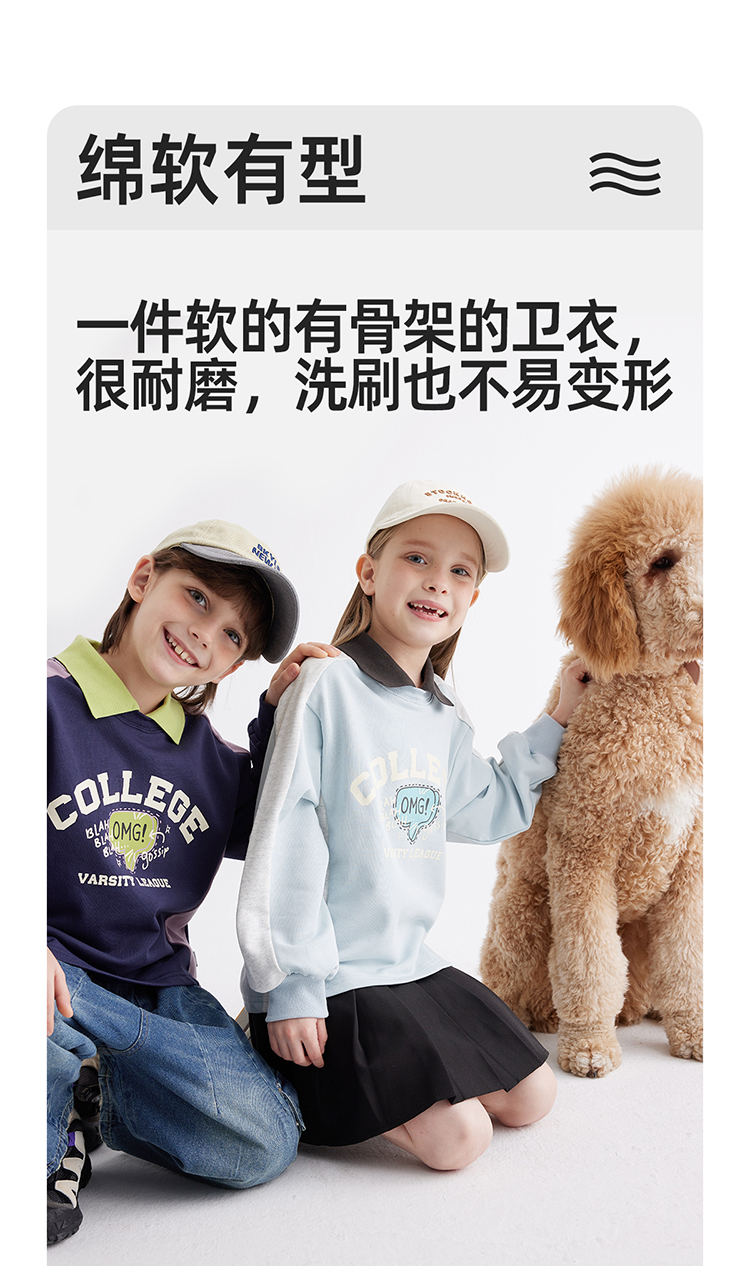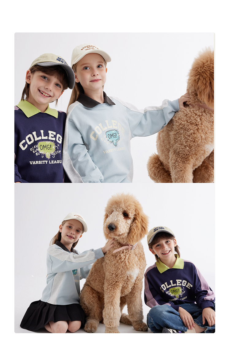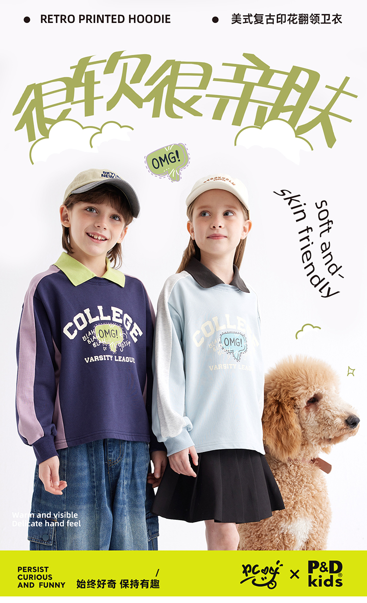 【绵软有型 休闲穿搭不费力】儿童美式复古印花翻领卫衣PCWY2401