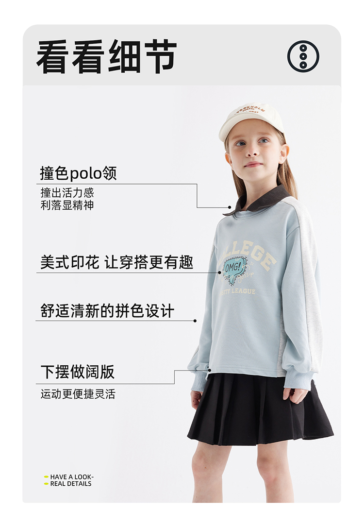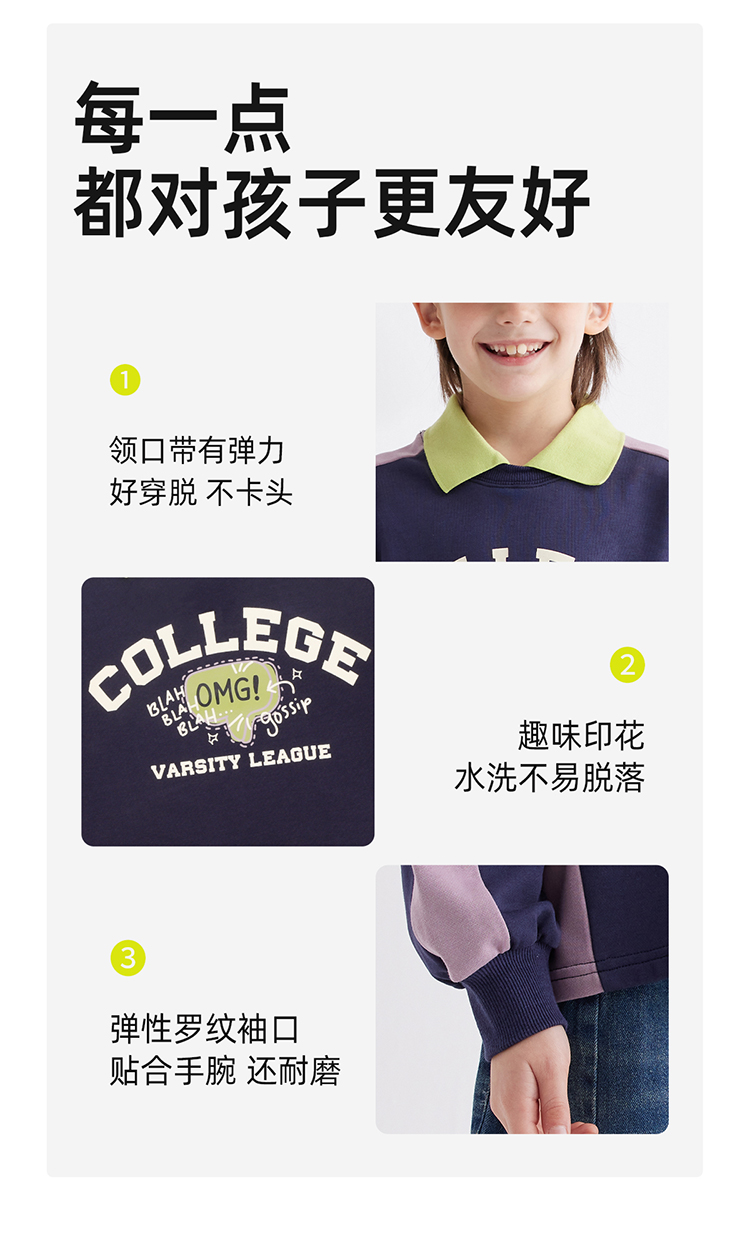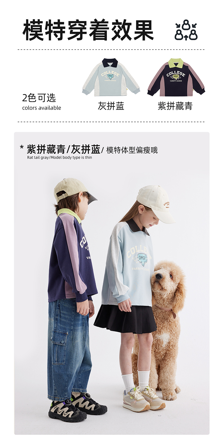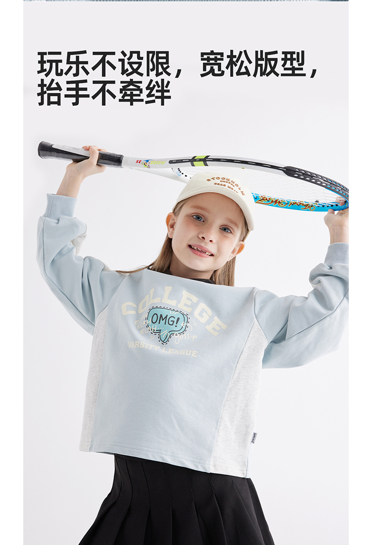 【绵软有型 休闲穿搭不费力】儿童美式复古印花翻领卫衣PCWY2401