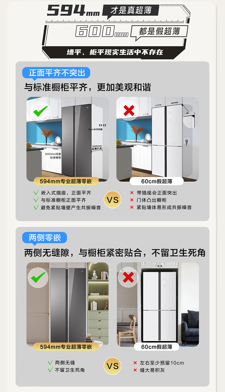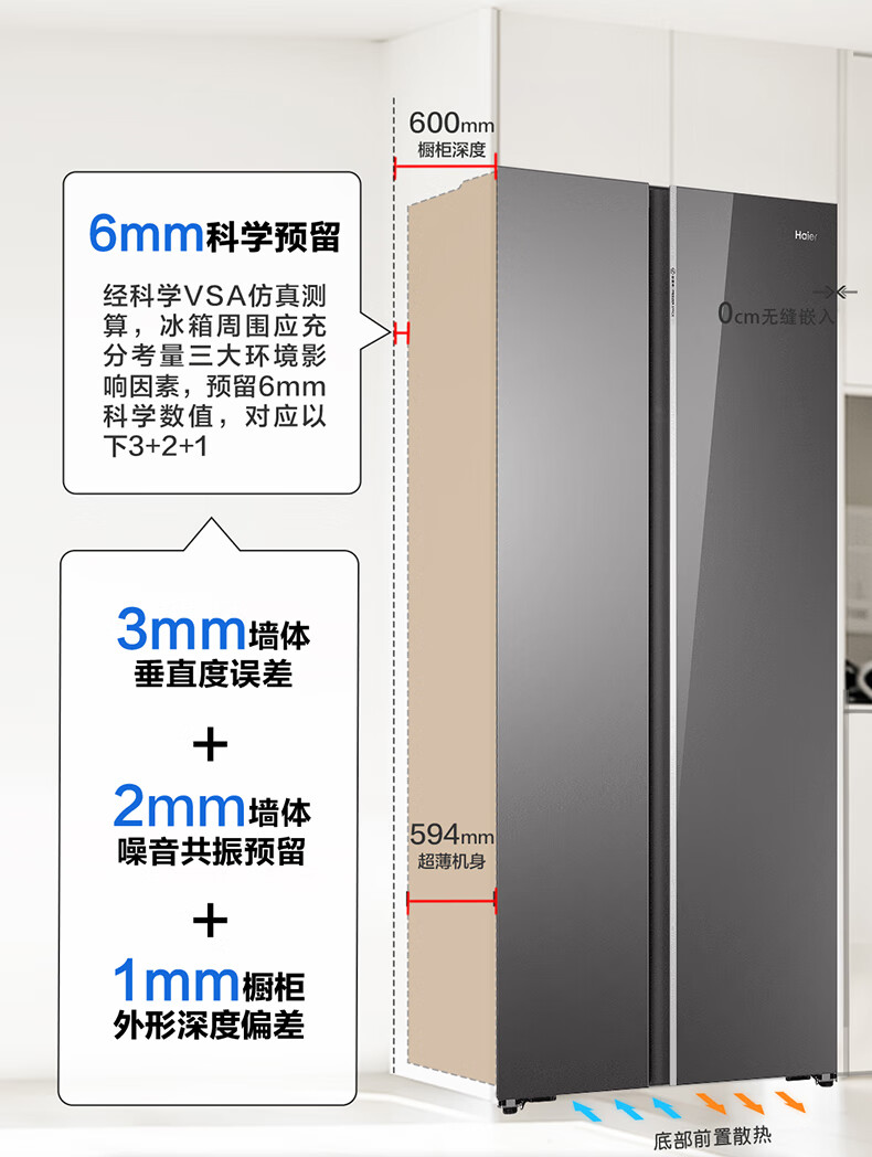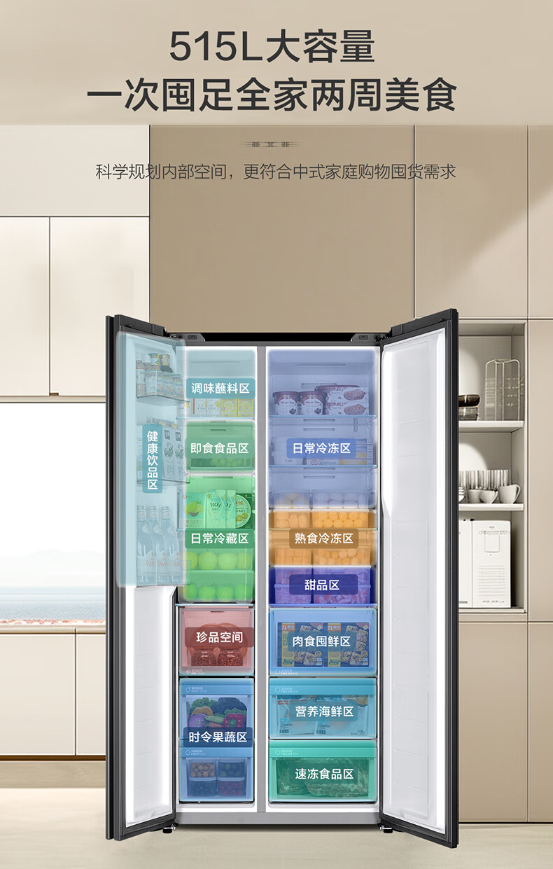 海尔冰箱一级能效 智能双变频 彩晶钢化玻璃面板 风冷无霜电冰箱四门 超薄嵌入家用大容量 515升超薄零嵌【干湿分储+EPP超净+WIFI】BCD-515WGHSSB5GSU1