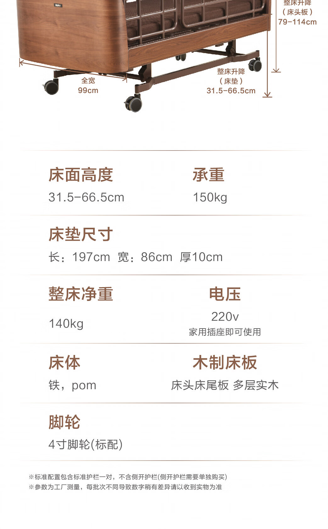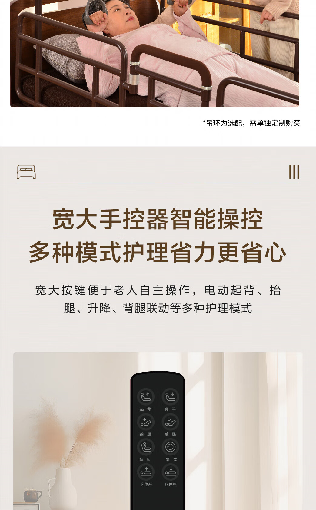 海尔(Haier)C602护理床老人家用多功能医疗医用病康复电动升降智能 HJU0-C602H00 挚爱E 2060*990*(315-665)mm)