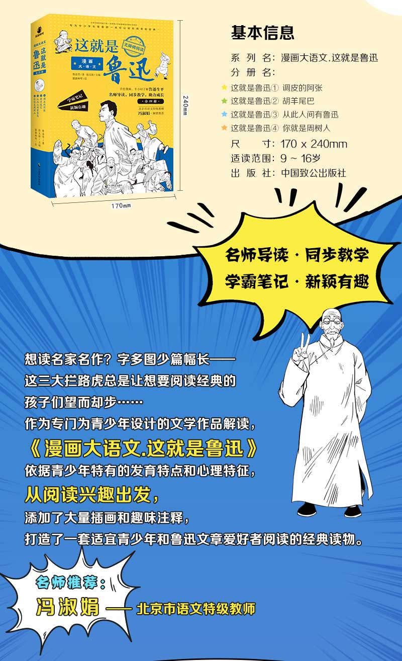 漫画大语文 这就是鲁迅全套4册 小学生课外阅读书籍三年级四五六年级课外书必读经典书目老师推荐漫画书儿童读物10岁8一12经典名著