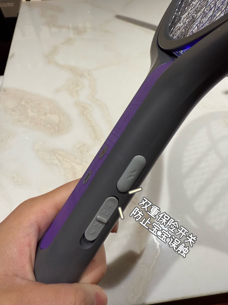 ✅ 双重保险开关,防止宝宝误触 避免家人或儿童错误操作带来危险 为安全保驾护航 两档开关: 一档:按住强电按钮,网拍通电 二档:打开诱蚊模式 双重保险开关真的戳中宝妈! 一档需按住强电按钮才通电 二档专属诱蚊模式 从源头防止宝宝误触 家人使用都放心,安全感拉满✅