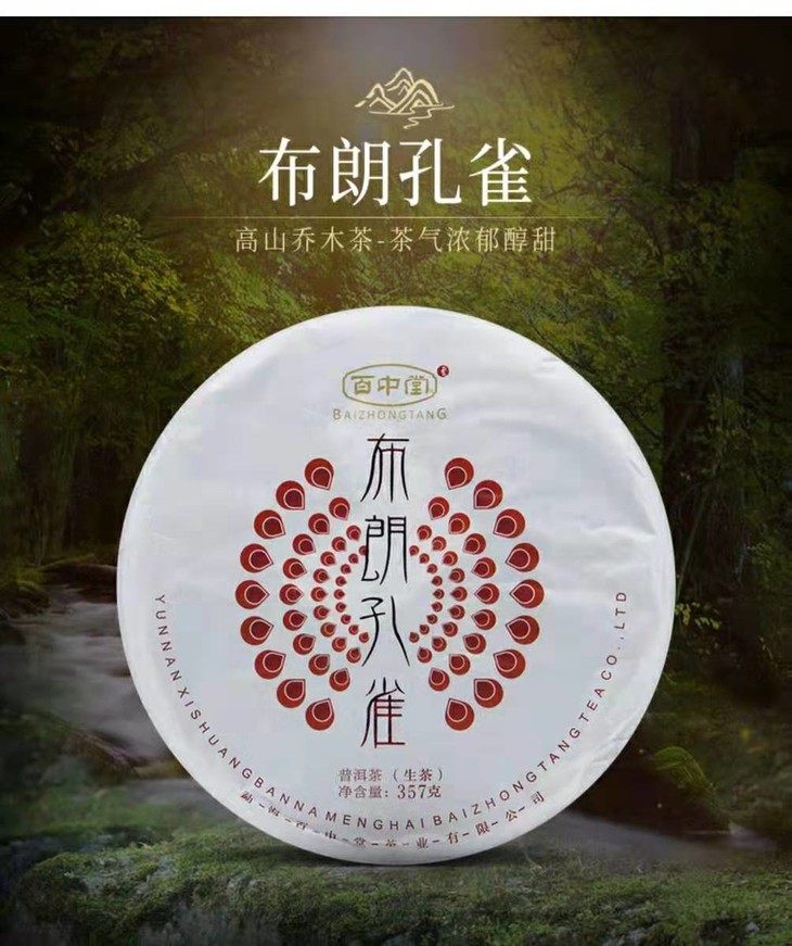 百中堂 2015年 布朗孔雀普洱茶 生茶357g