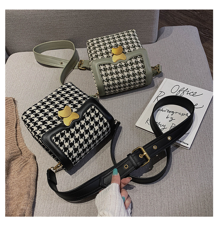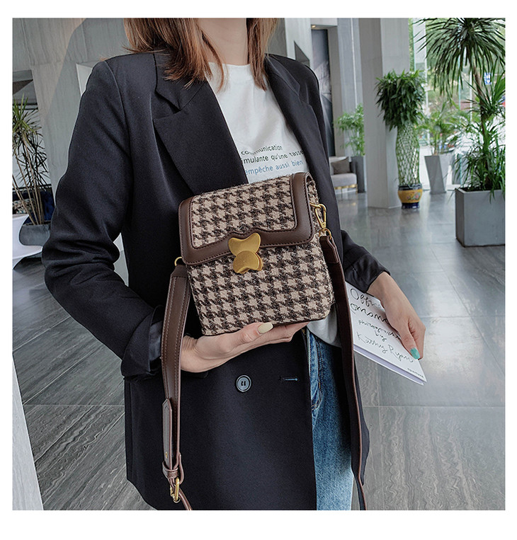 阿么2020新款格子布方形包潮流单肩包百搭斜跨女包包