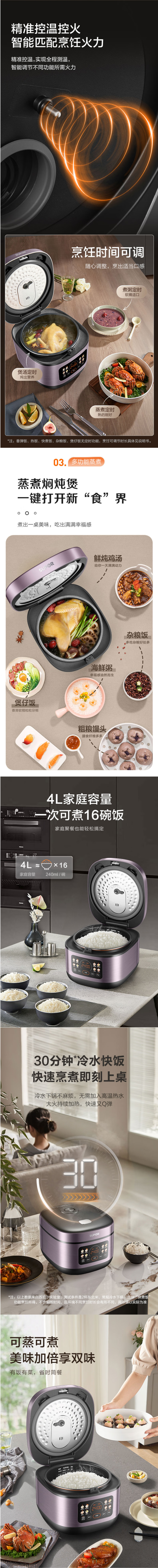 苏泊尔(SUPOR)ZMD(510697)安心系列 可拆内盖 蓝钻不粘厚釜内胆 24长时预约 4L大容量微压智能电饭煲SF40FC2024