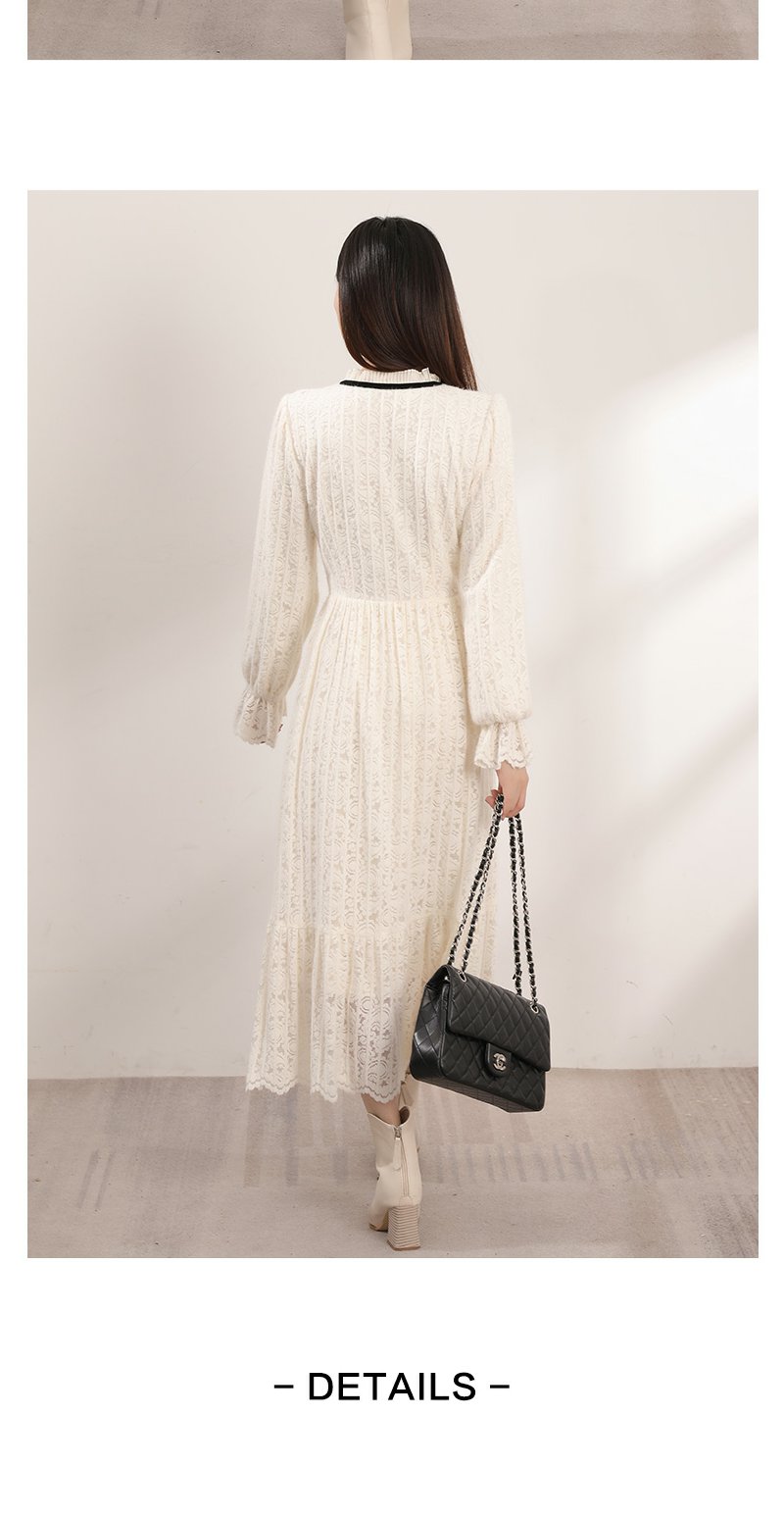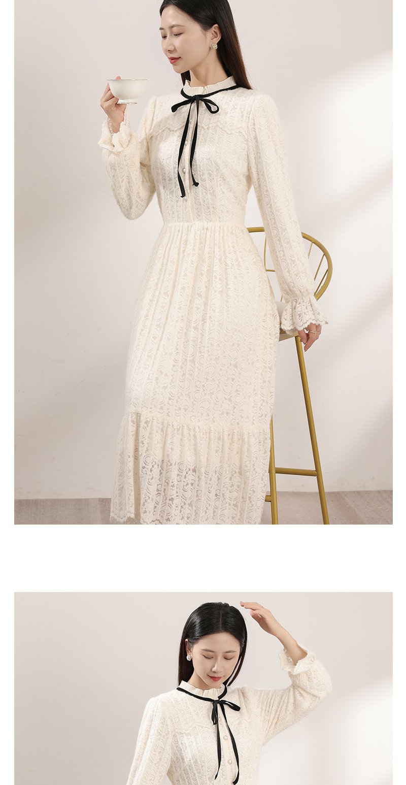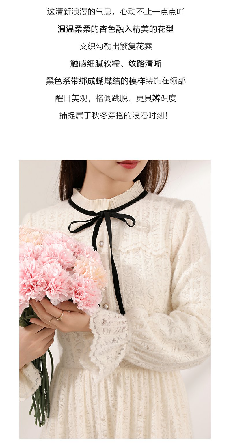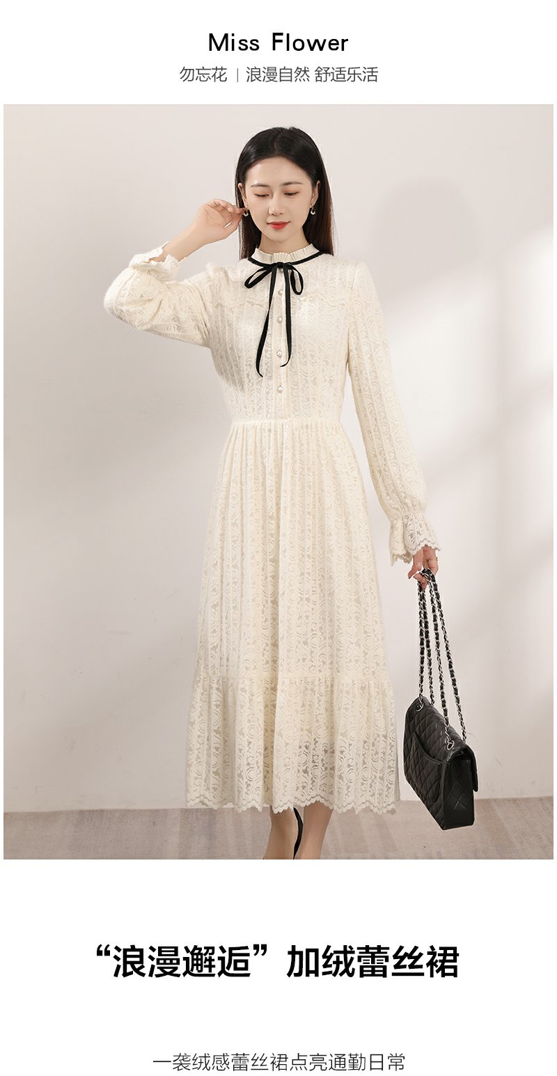 杏色蕾丝连衣裙高级感穿搭连身裙秋冬裙子新款