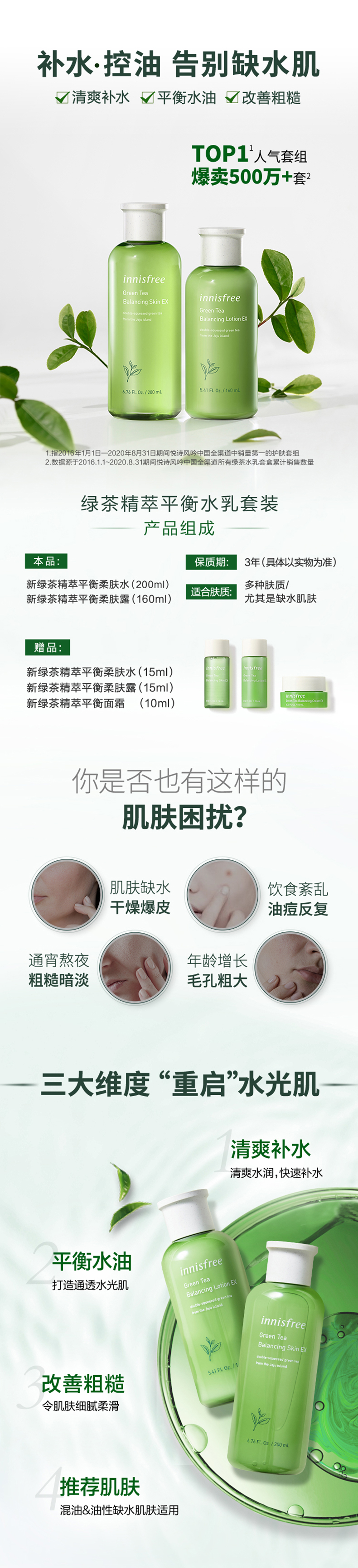 【中欧班列精选】悦诗风吟新绿茶精萃平衡水乳套装 两件套 新版 ylpy