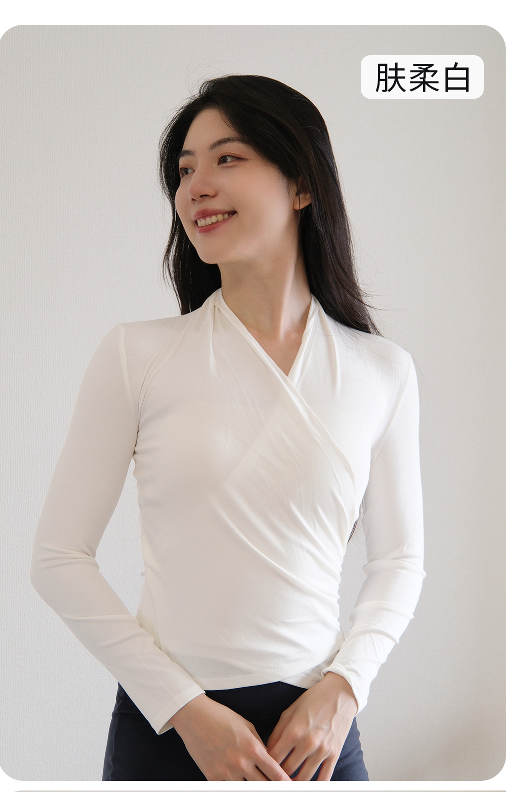 FC15208 V领交叉抽褶背心