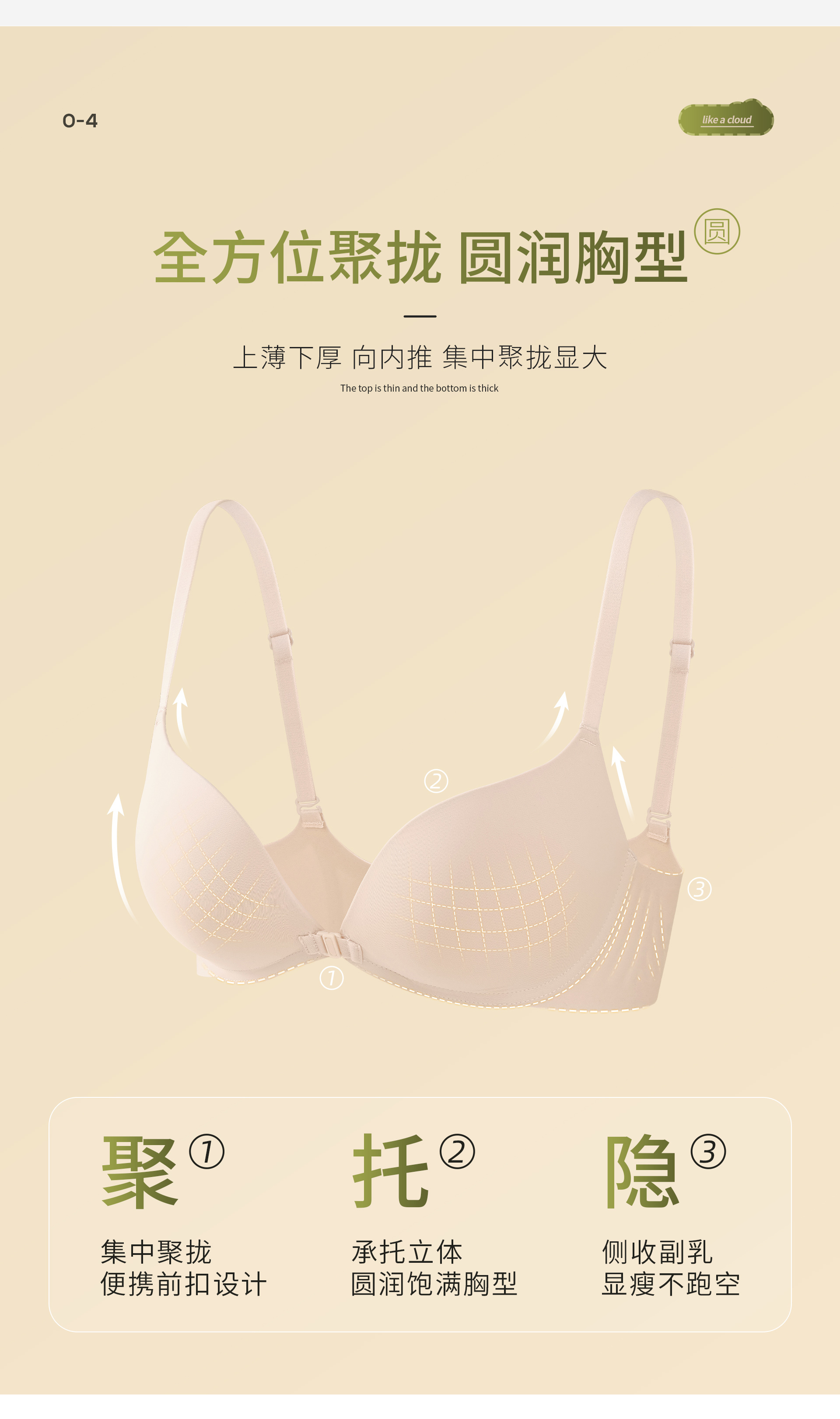 素帛光面文胸软钢圈大胸显小光面无痕收副乳