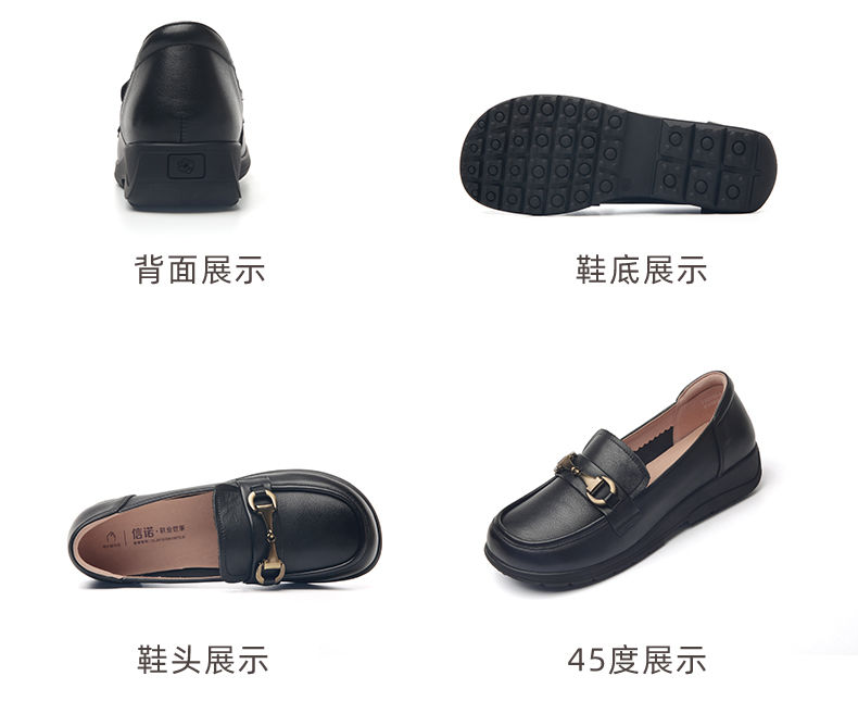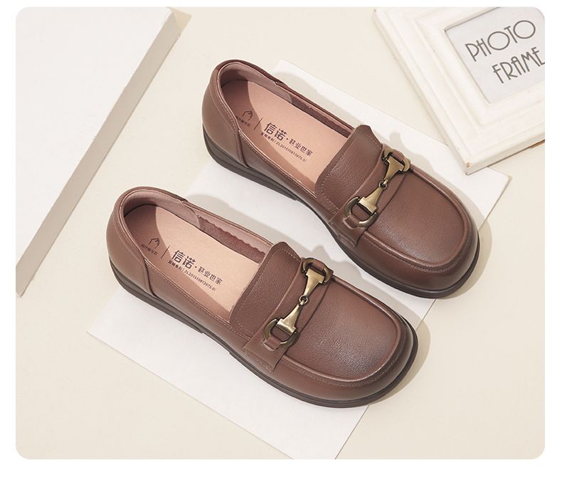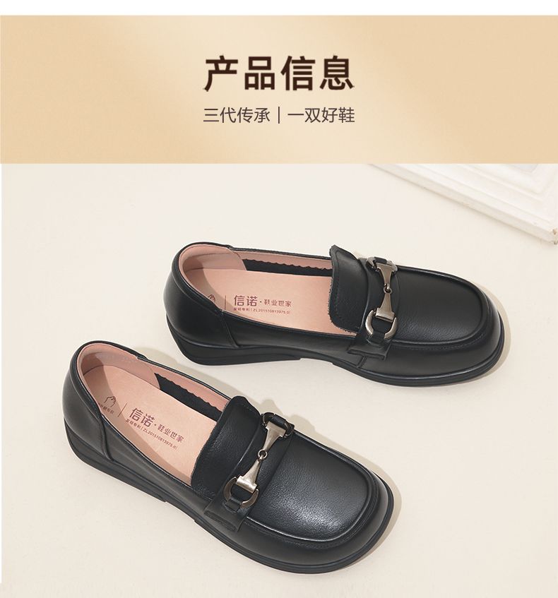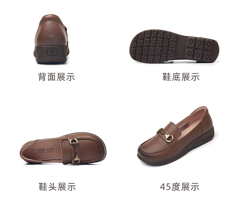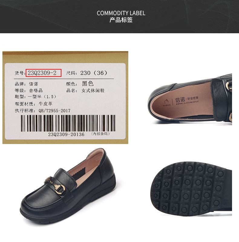 信诺女鞋春秋款女士单鞋舒适休闲皮鞋百搭真皮一脚蹬工作鞋妈妈鞋23Q2309-2