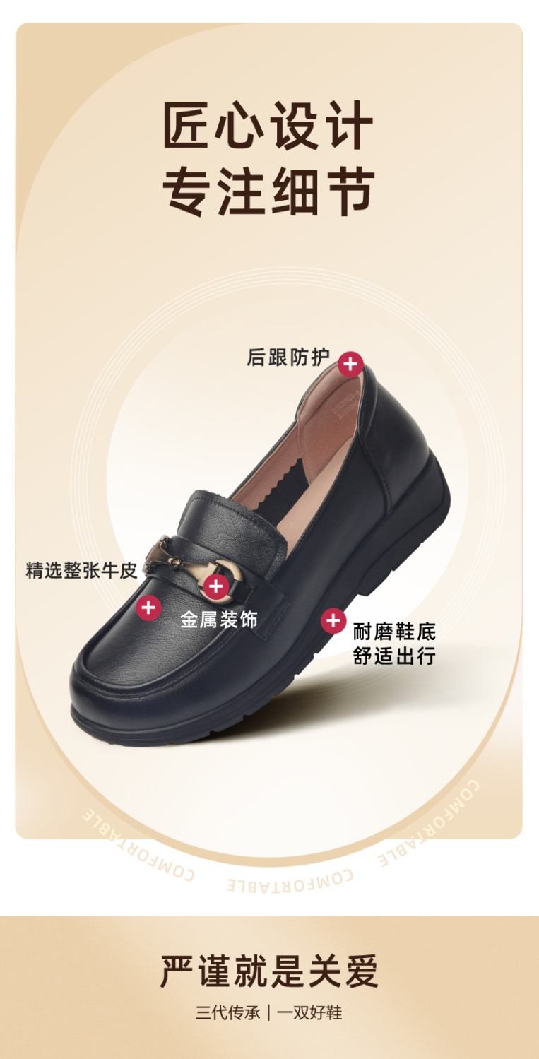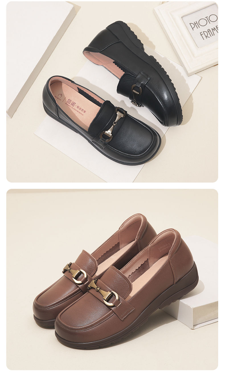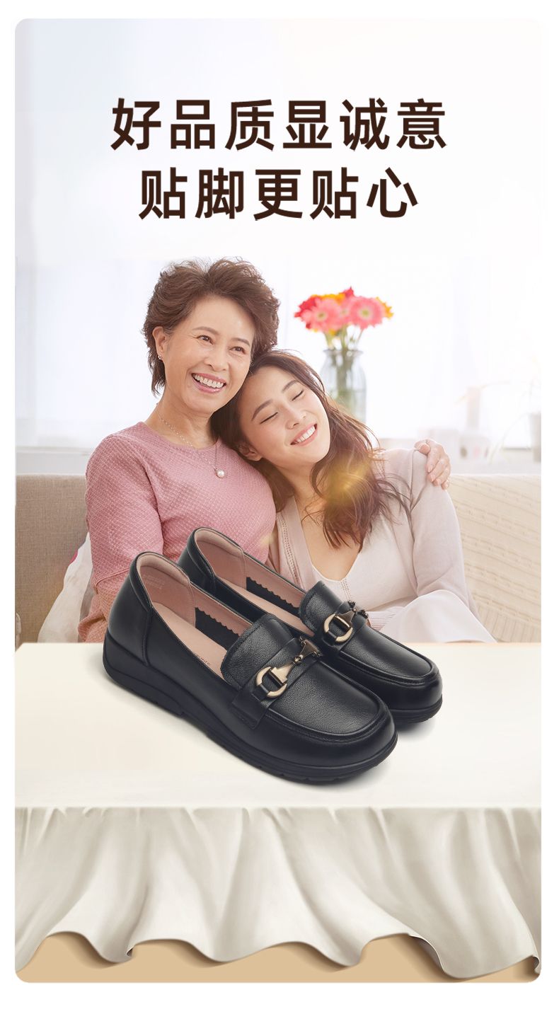 信诺女鞋春秋款女士单鞋舒适休闲皮鞋百搭真皮一脚蹬工作鞋妈妈鞋23Q2309-2