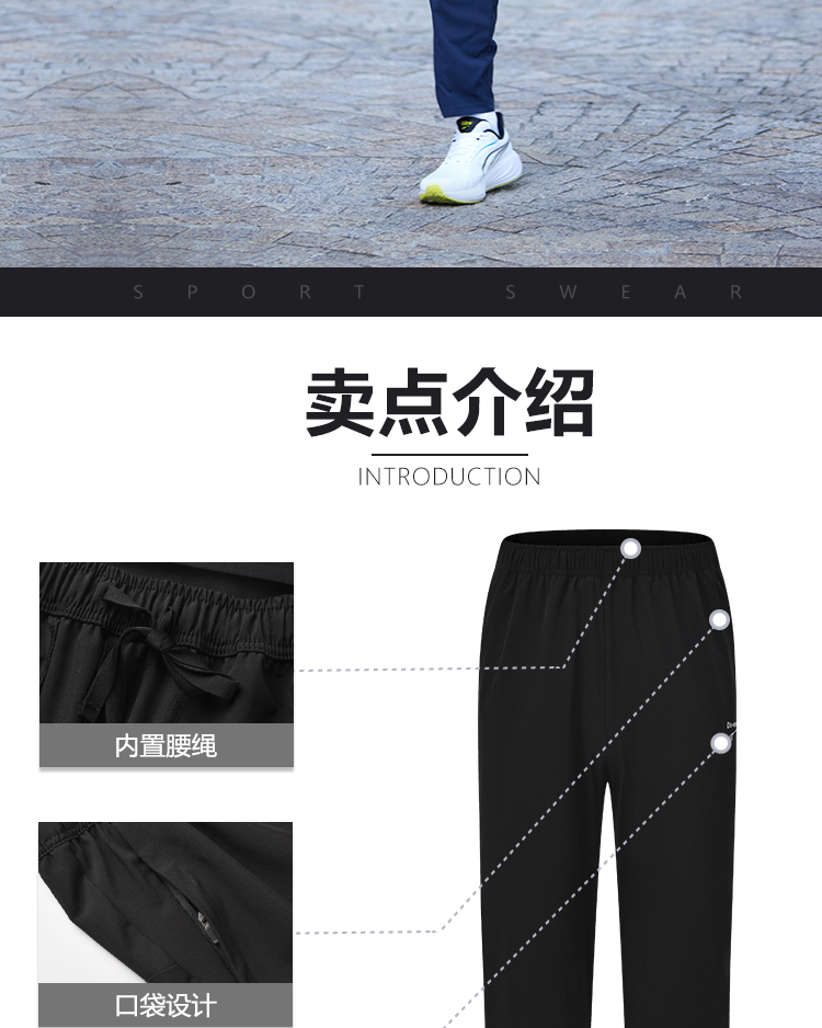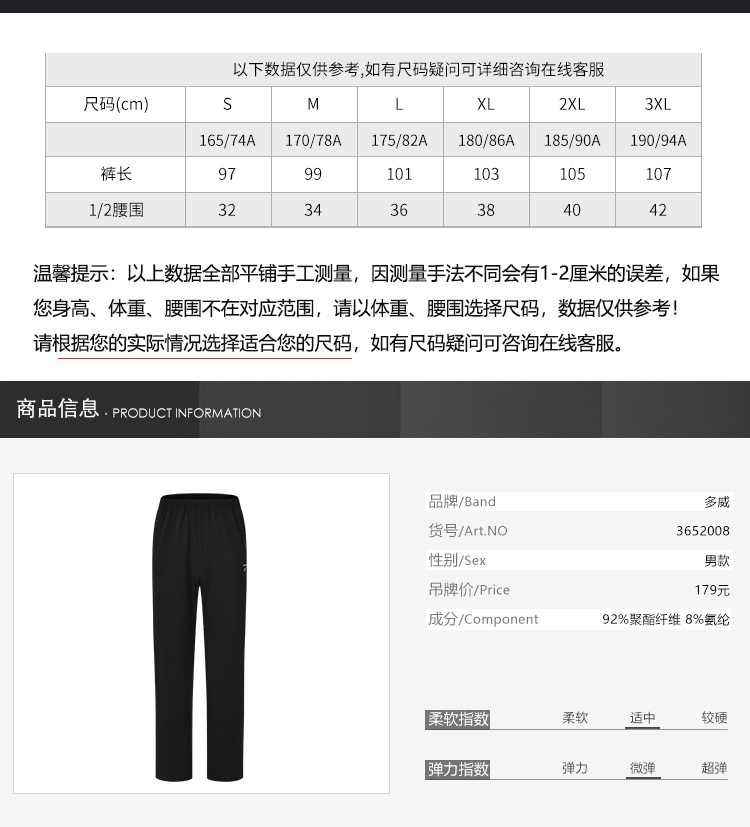 多威运动长裤新款男士直筒宽松休闲跑步运动裤3652008