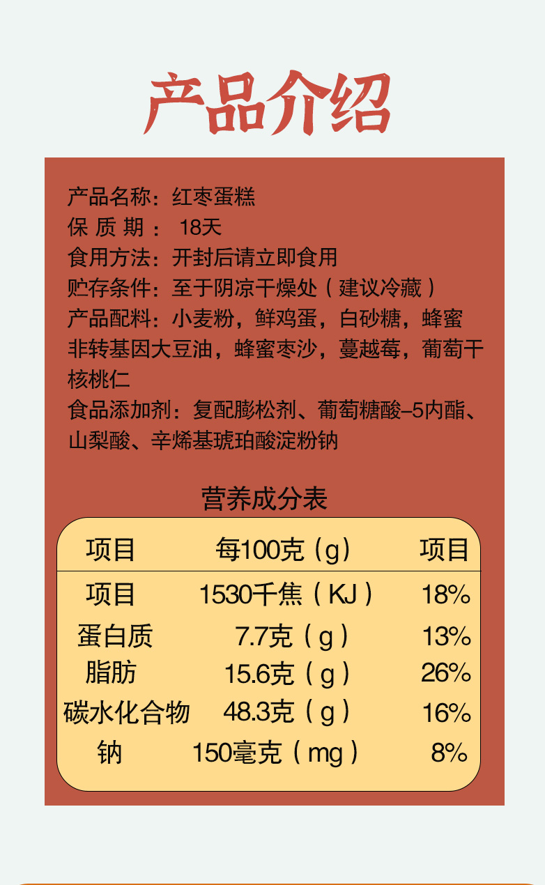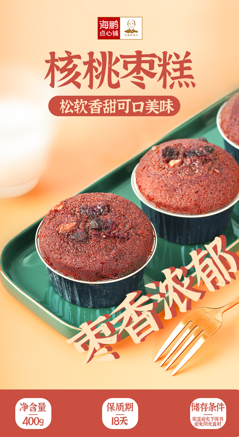 海鹏核桃枣糕传统糕点营养早餐80g*8枚