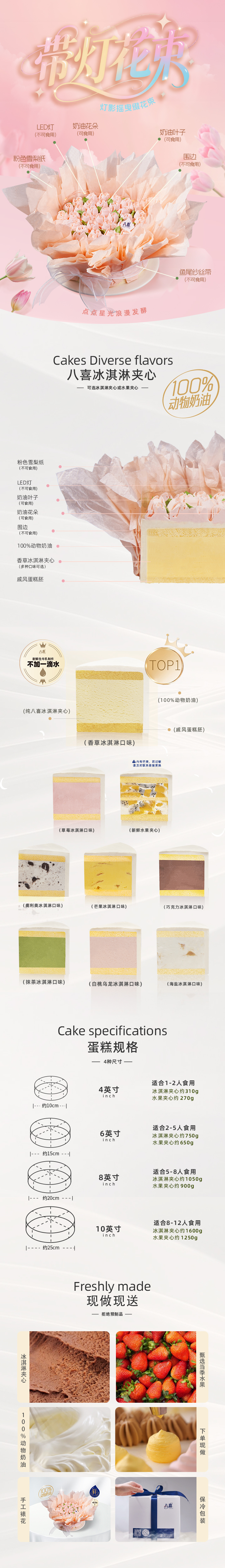 ⭐【带灯花束】冰淇淋/水果生日蛋糕
