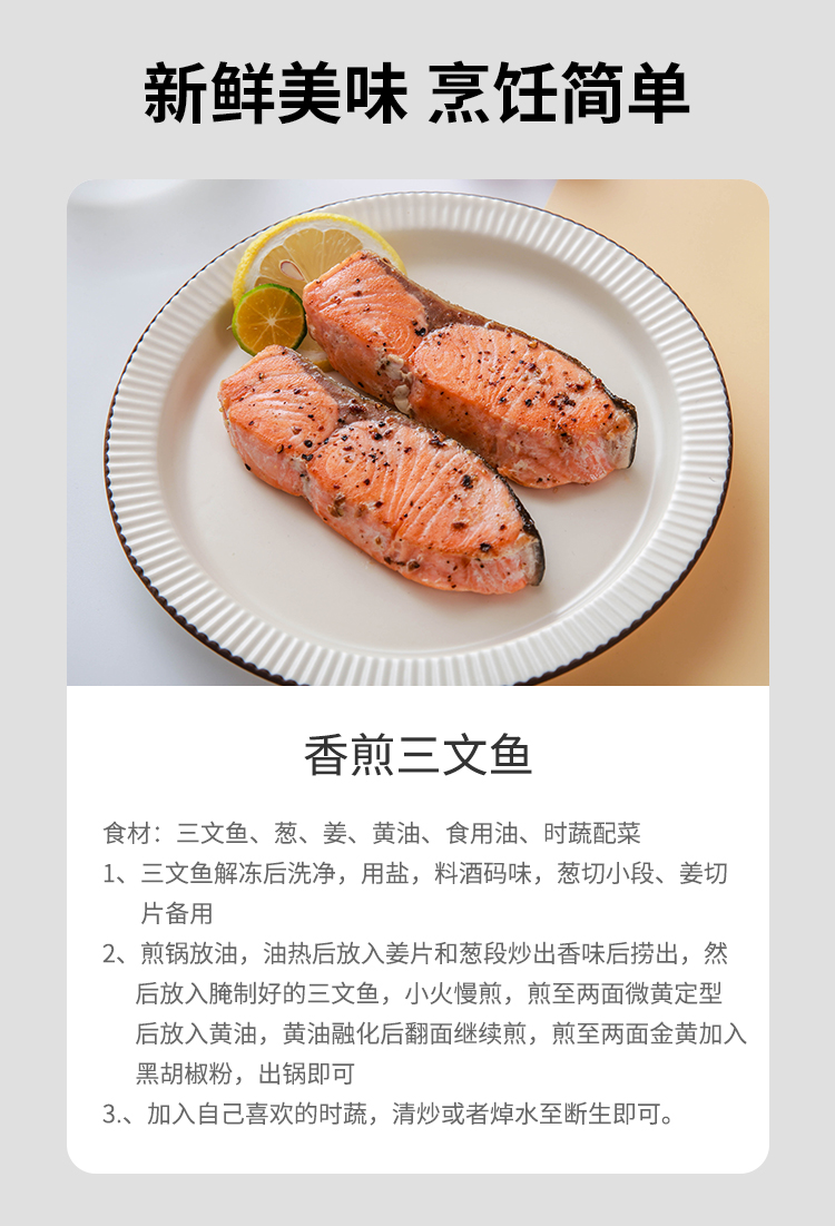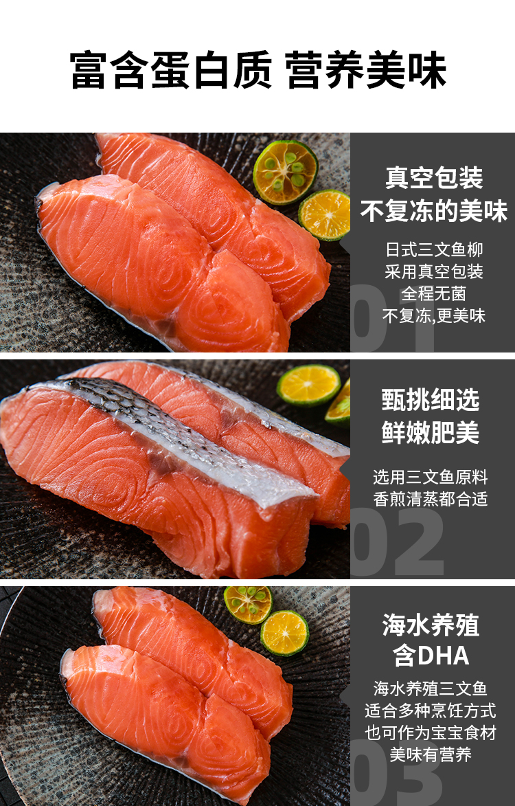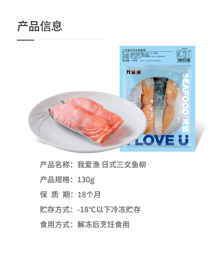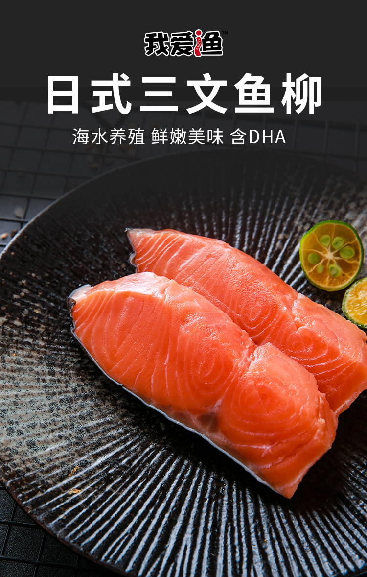*【我爱渔】 新鲜冷冻智利三文鱼去刺斜切鱼柳130g/袋×3袋