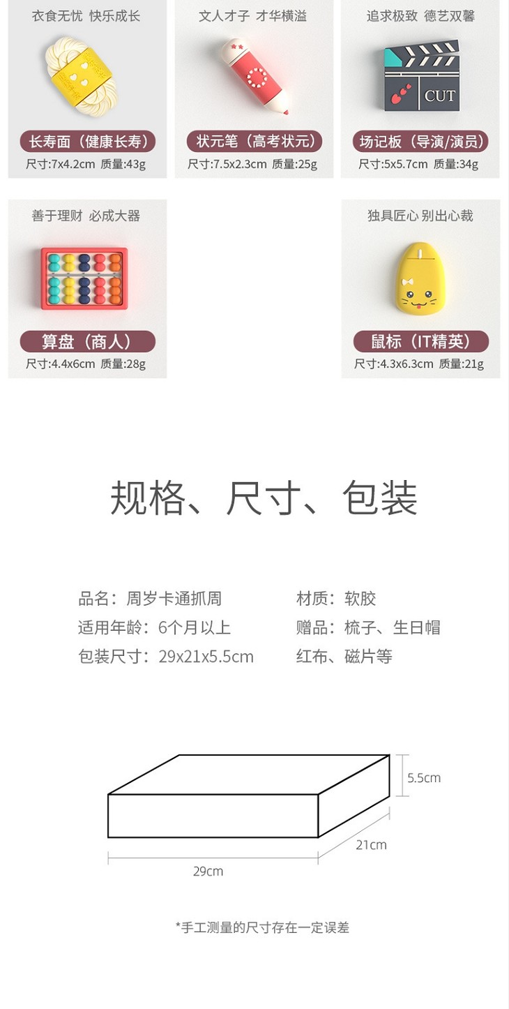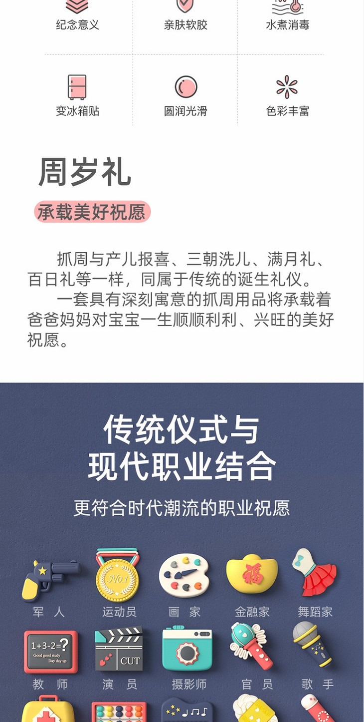 宝宝抓周用品道具套装周岁男女宝宝小孩现代公主生日抓阄用品软胶玩具