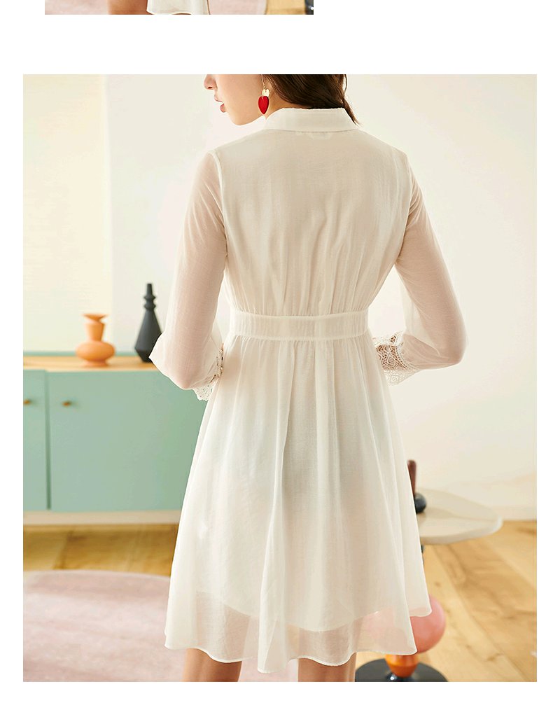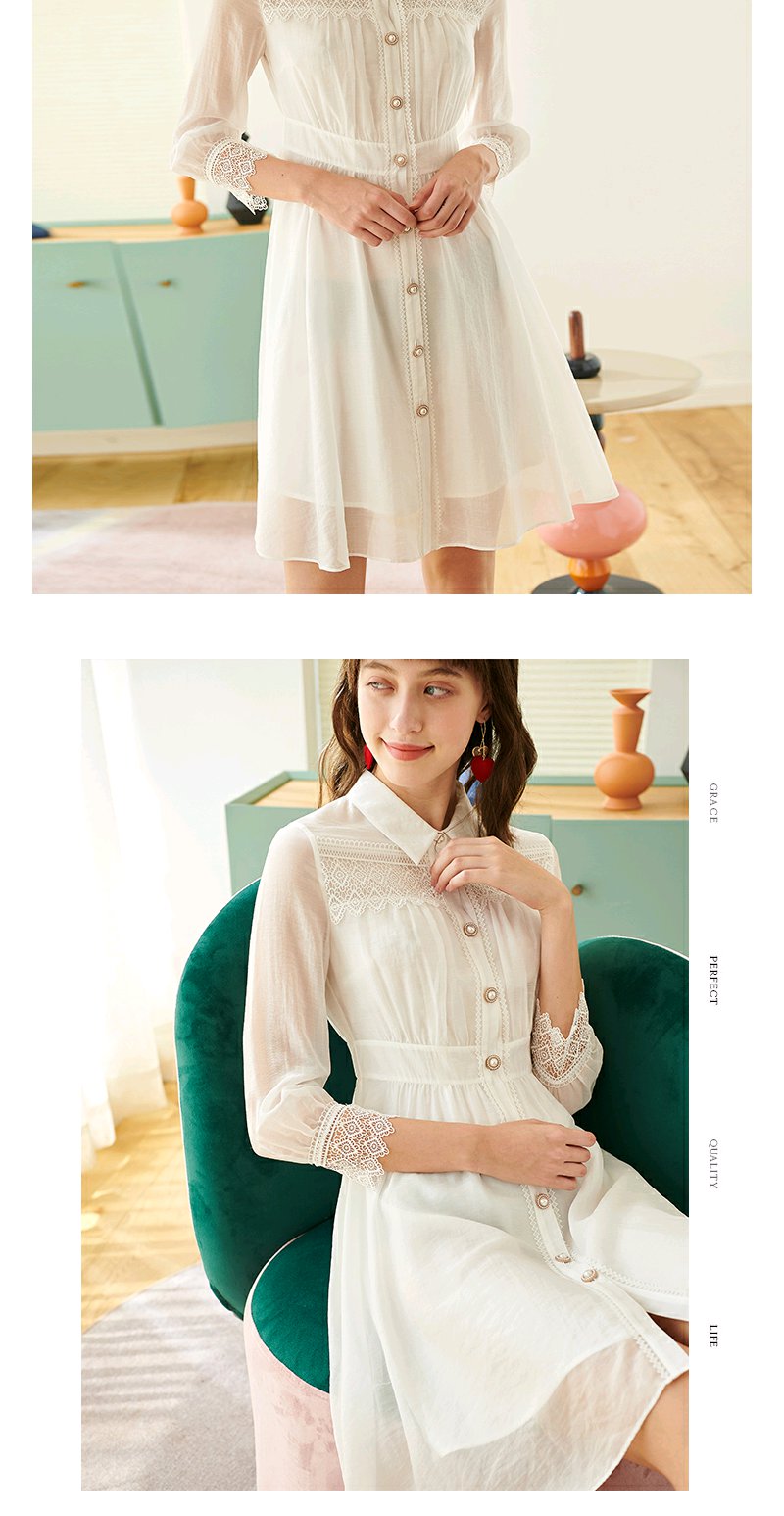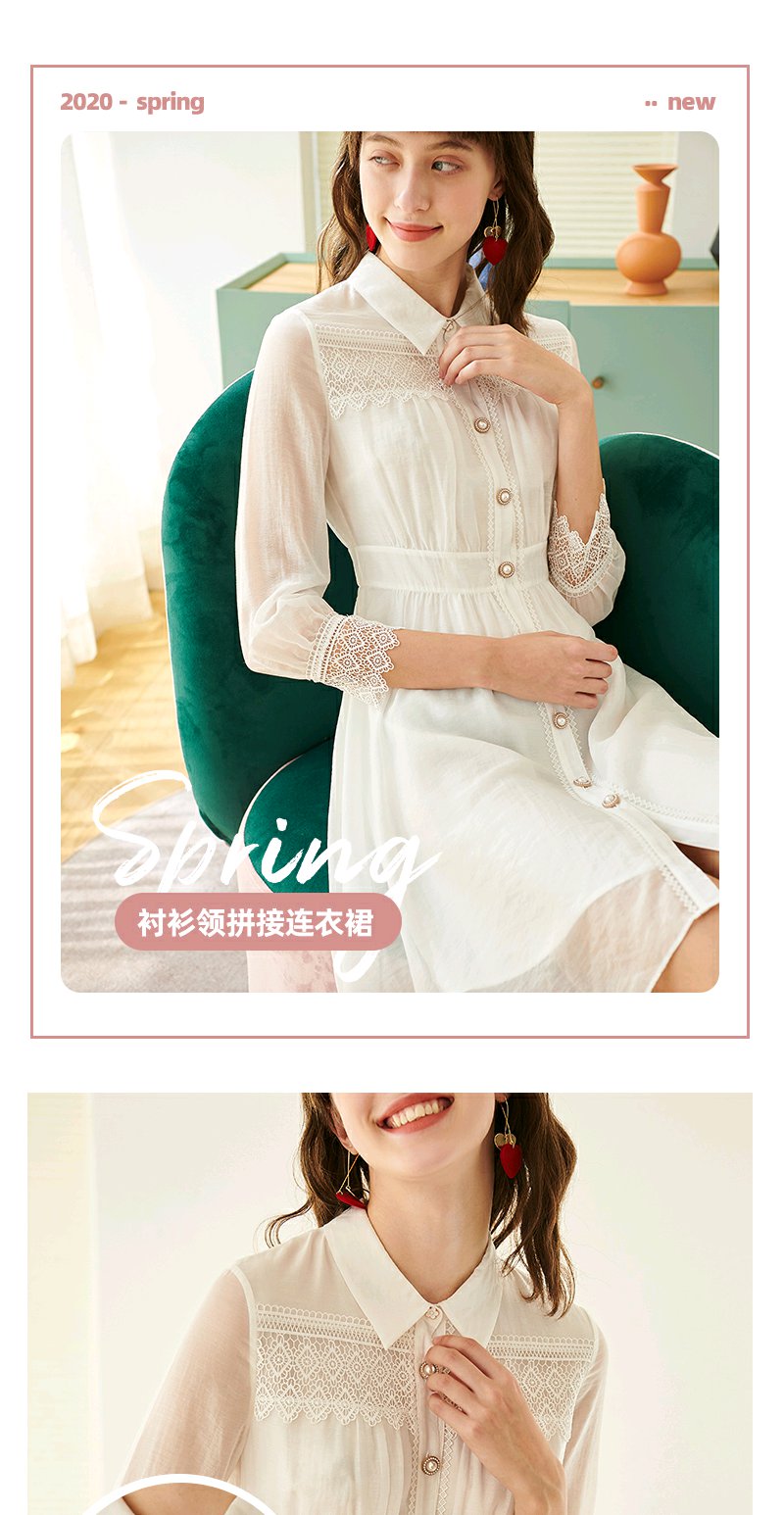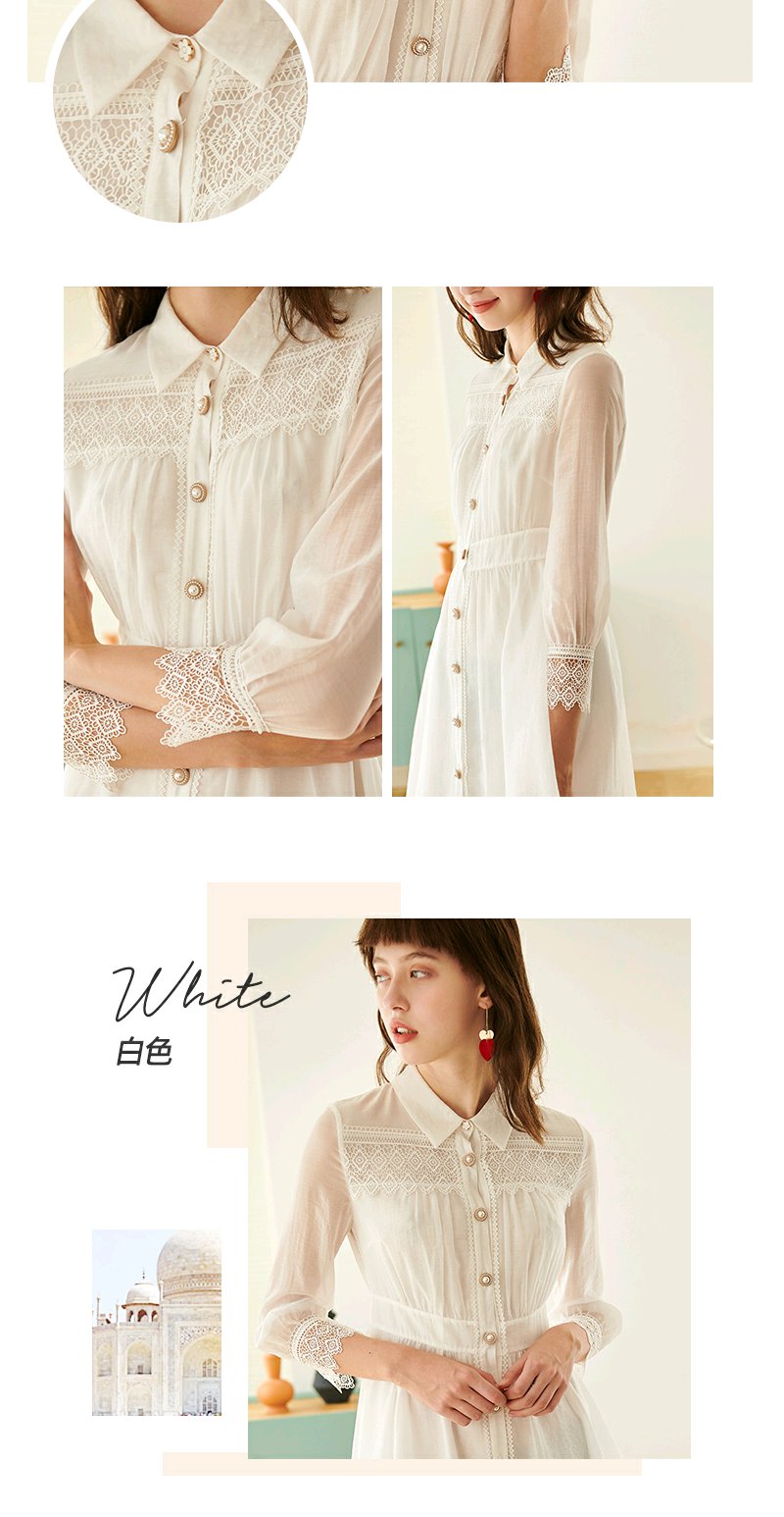 欧芮儿款新款七分袖刺绣蕾丝连衣裙女中长款衬衫白色A字裙