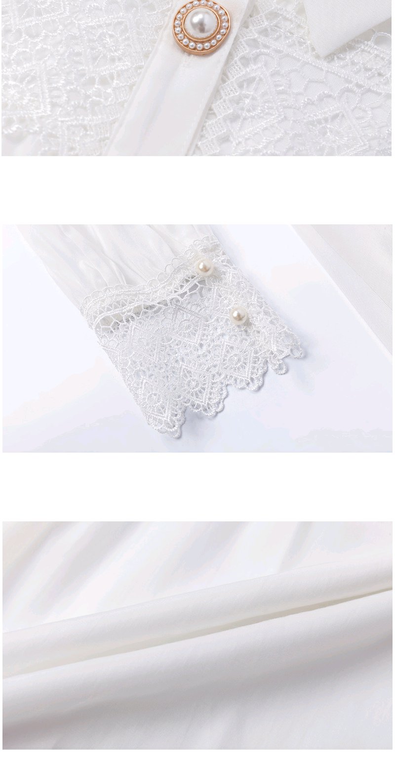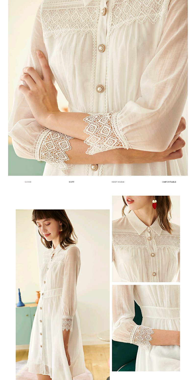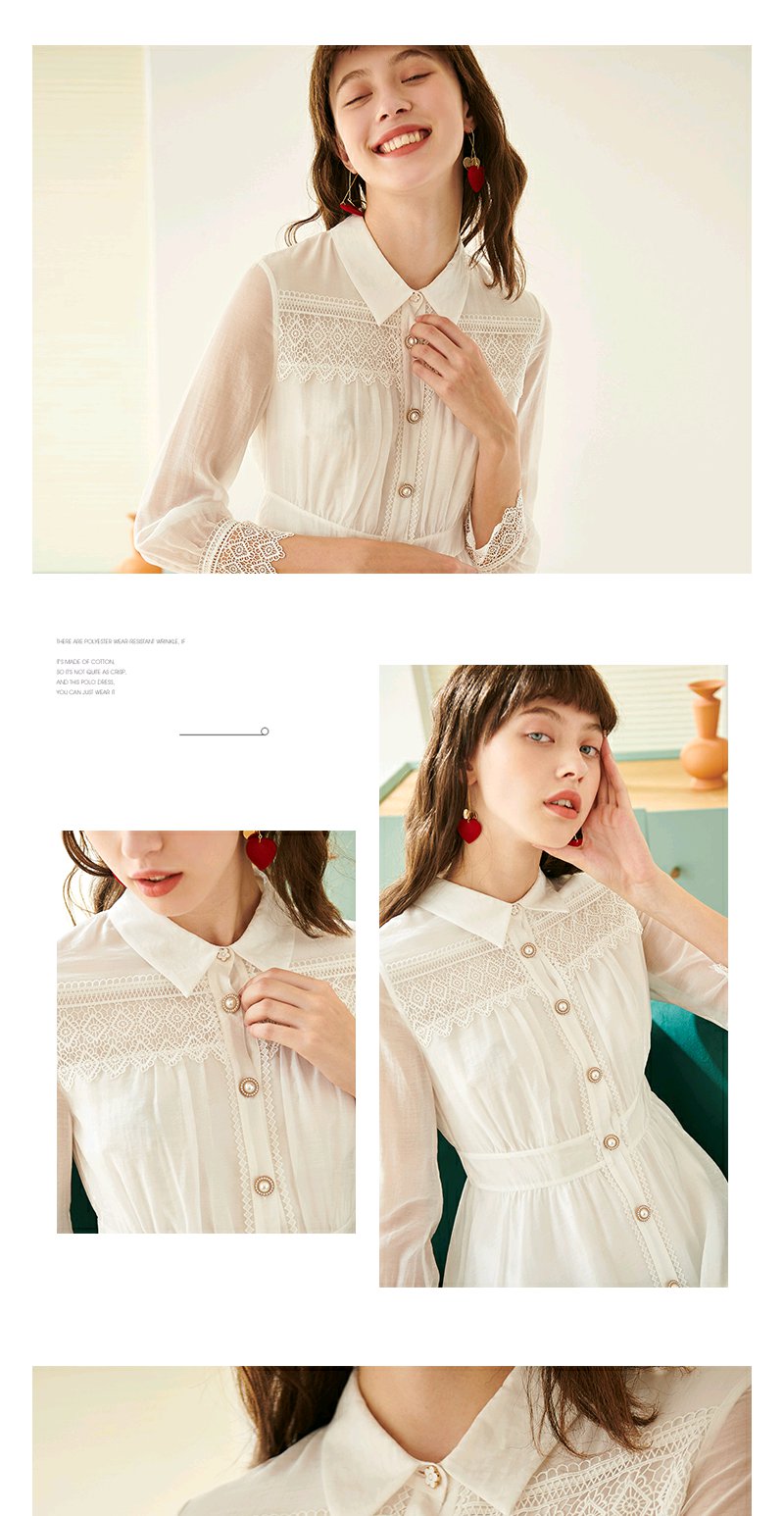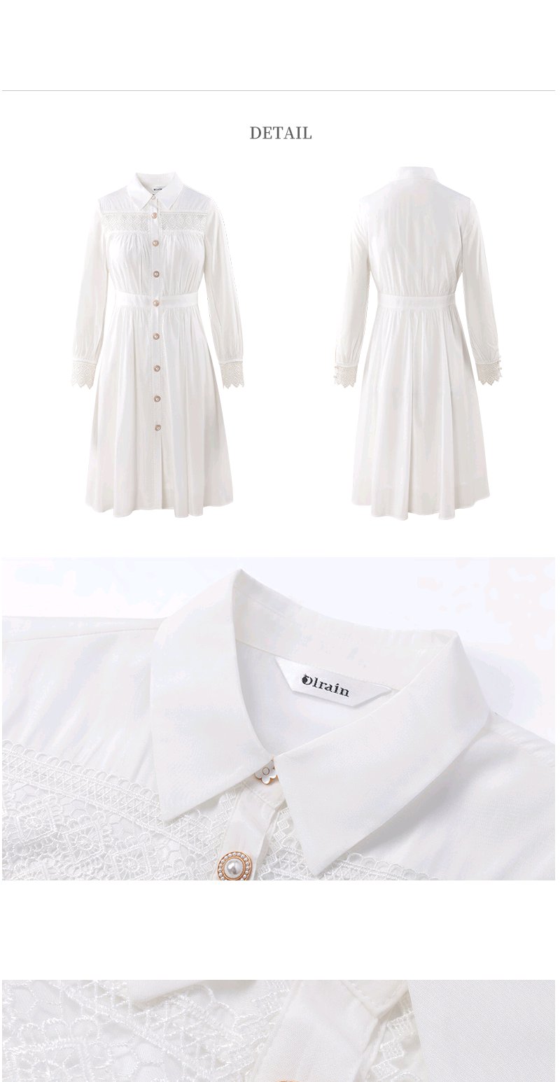 欧芮儿款新款七分袖刺绣蕾丝连衣裙女中长款衬衫白色A字裙