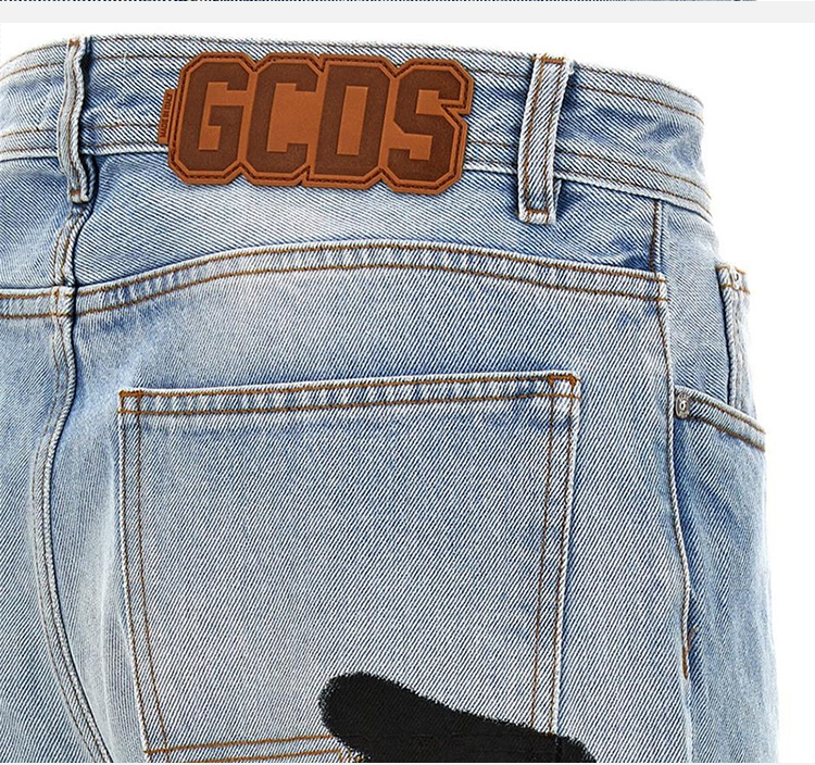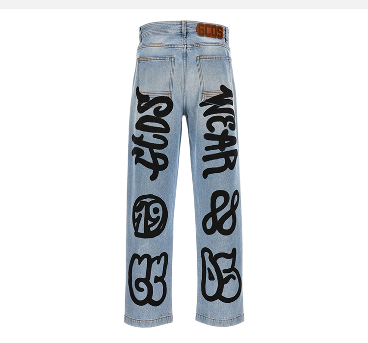 GCDS 男士涂鸦徽标印花米棉质休闲牛仔裤 蓝色 FW23M35000155