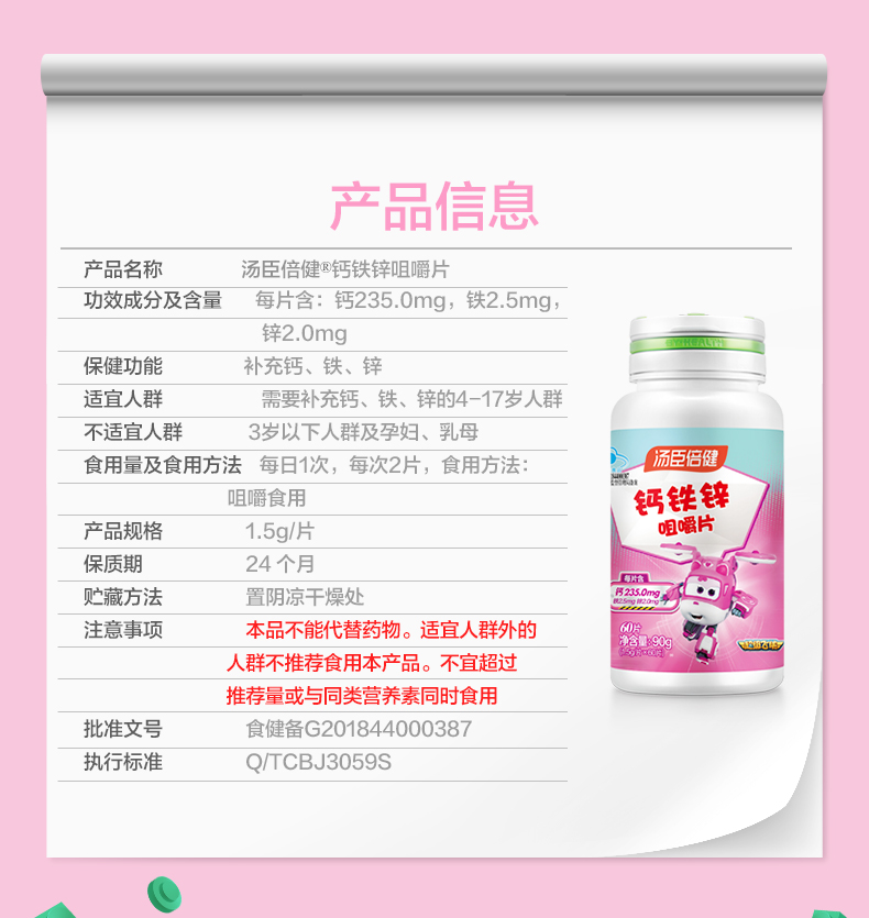 汤臣倍健 钙铁锌咀嚼片-超级飞侠装(60片)